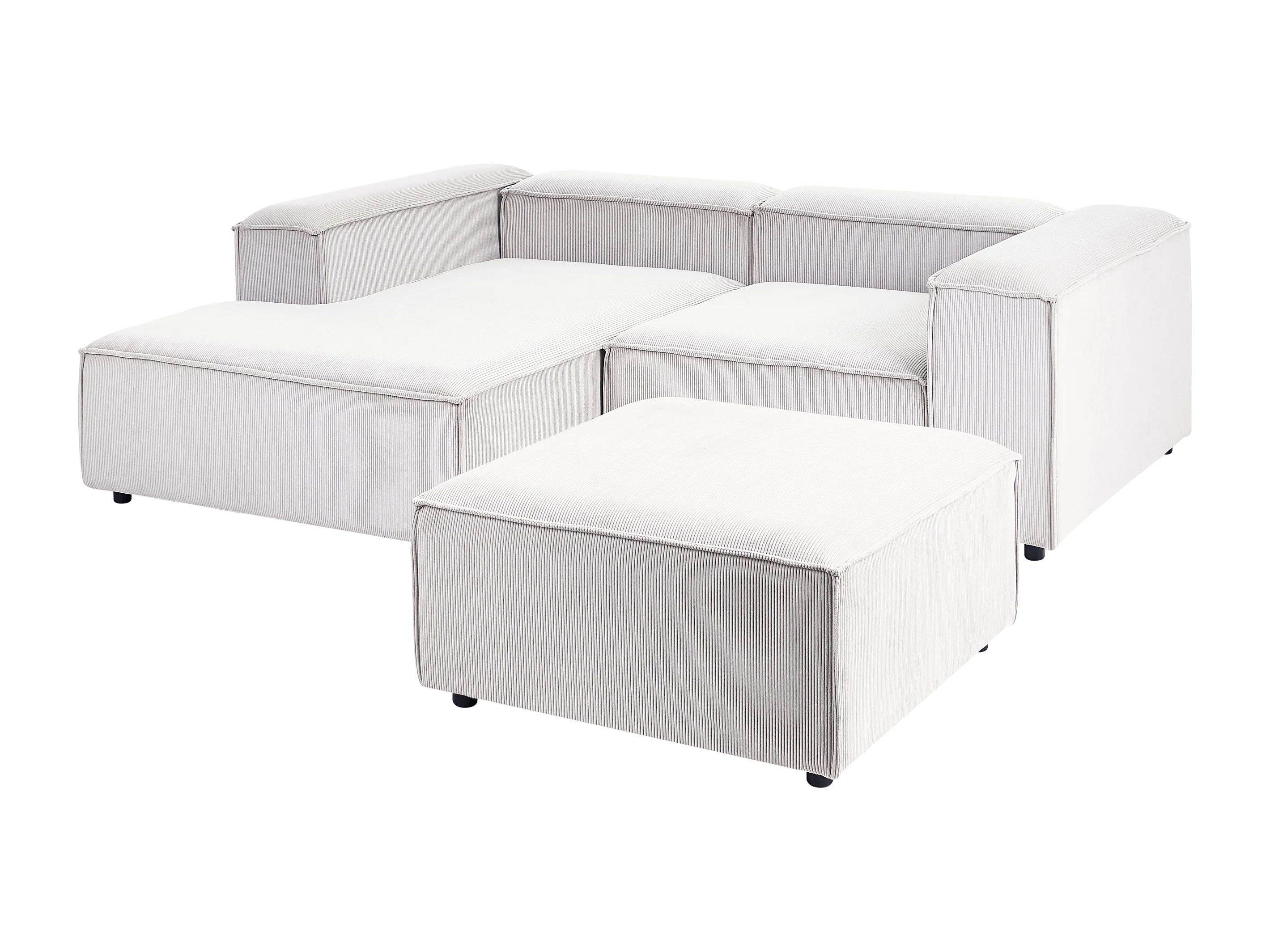 Canapé d'angle modulable 3 places ARDAL Velours côtelé Blanc cassé avec ottoman Côté droit