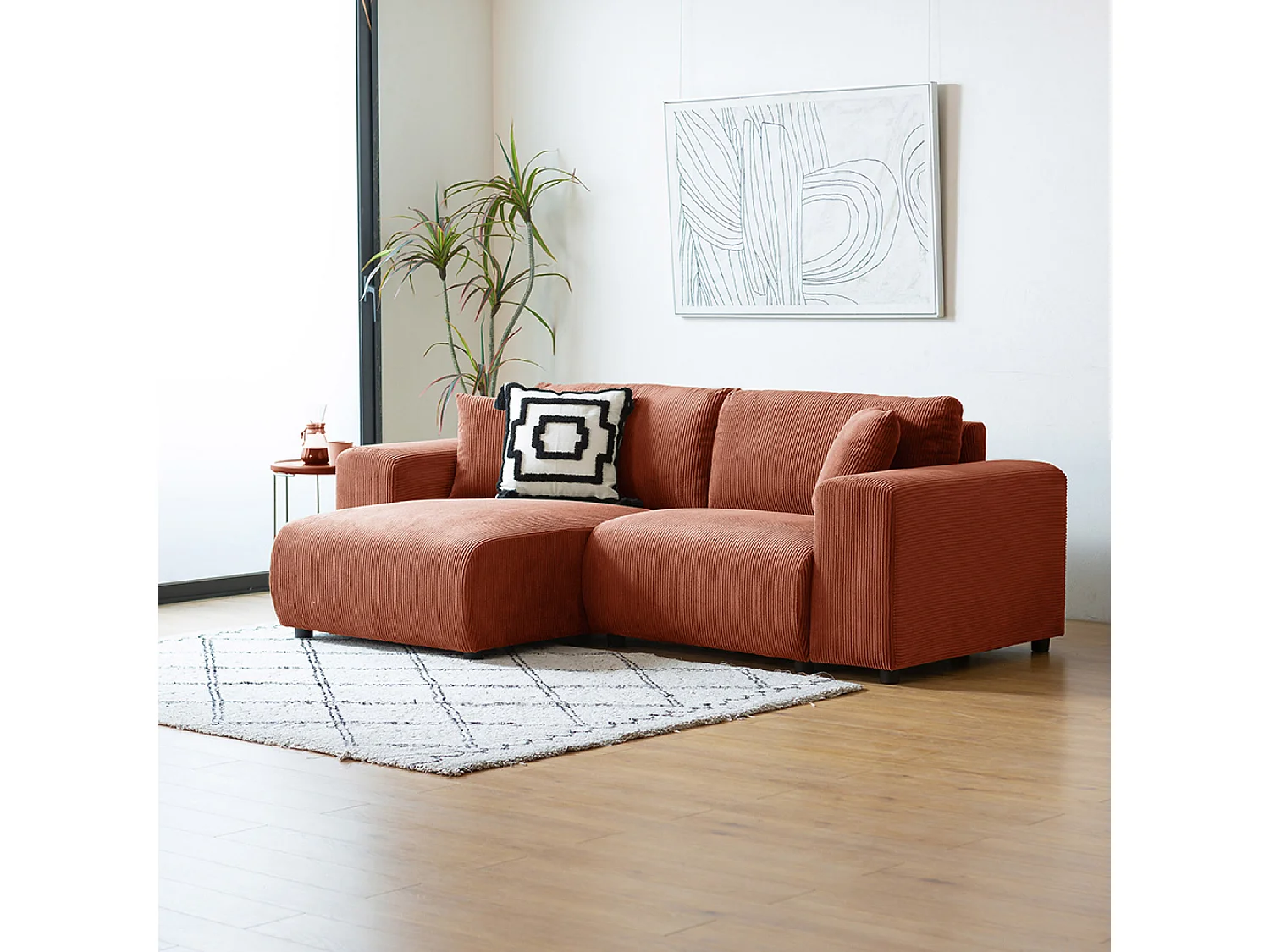 Canapé d'angle modulable 3 places en velours côtelé terracotta ABERDEEN
