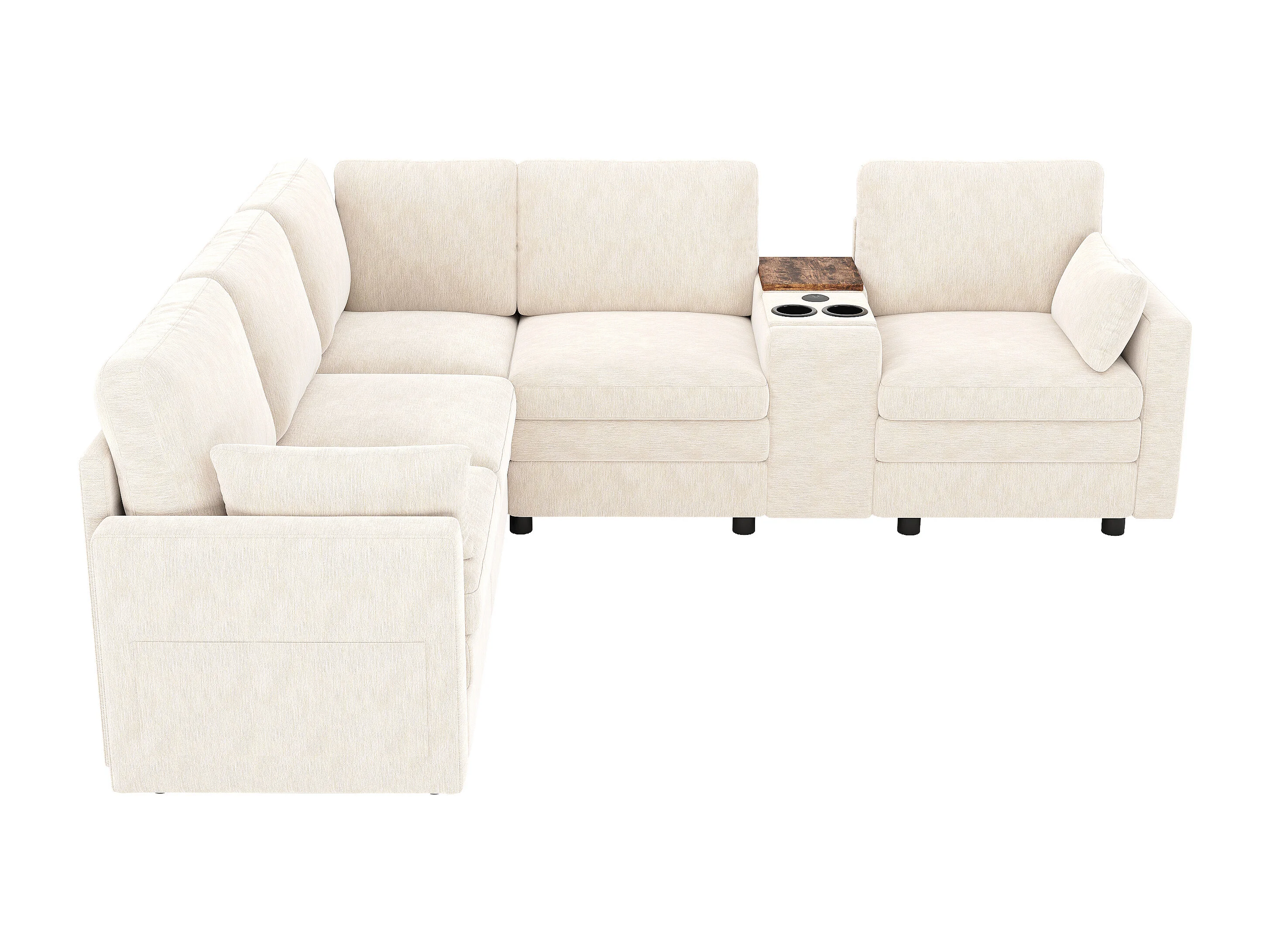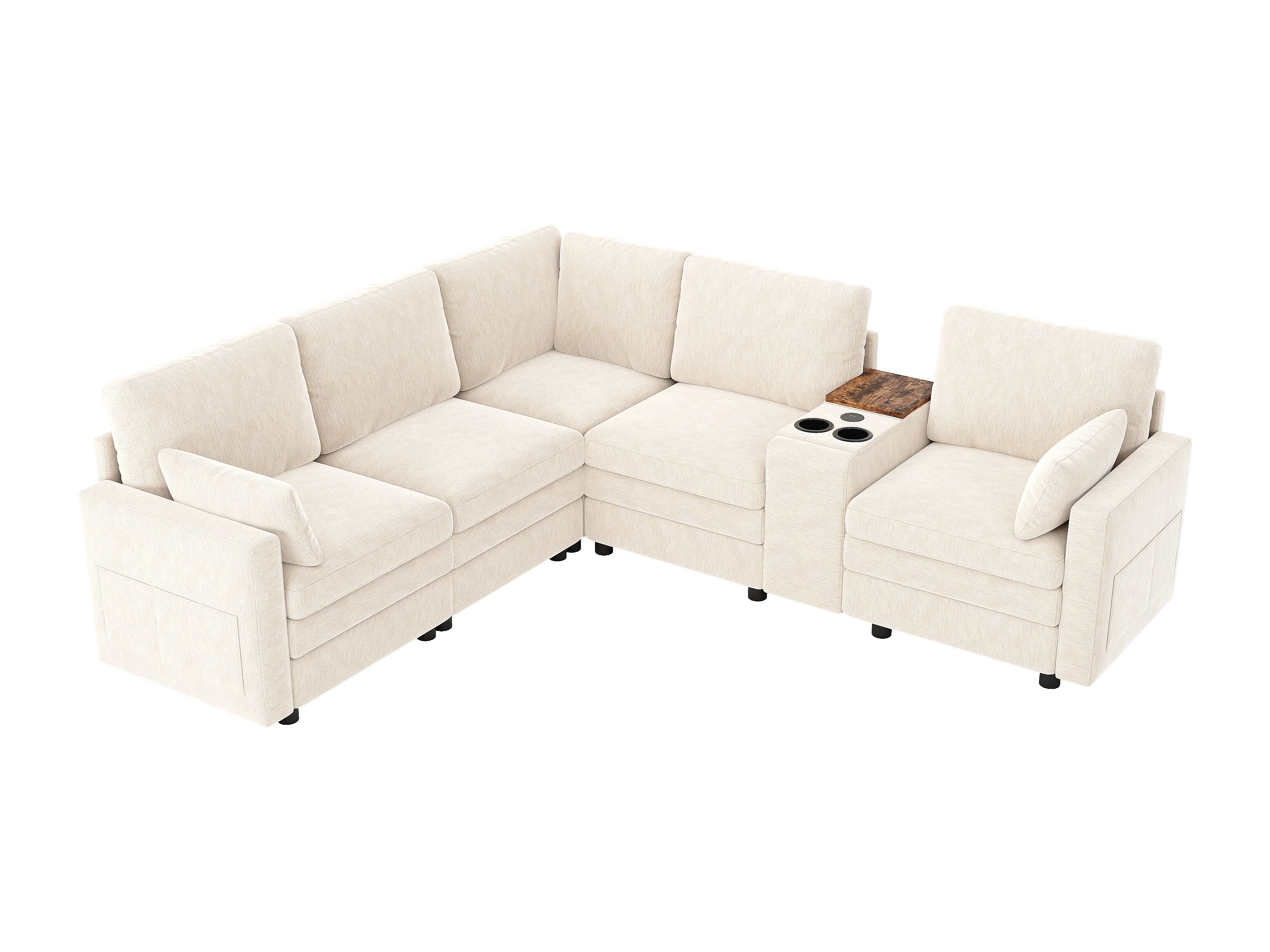 Canapé d'angle modulable 5 places - 227 x 202 x 83 cm - avec USB + rangement - pour salon et chambre - Chenille - beige
