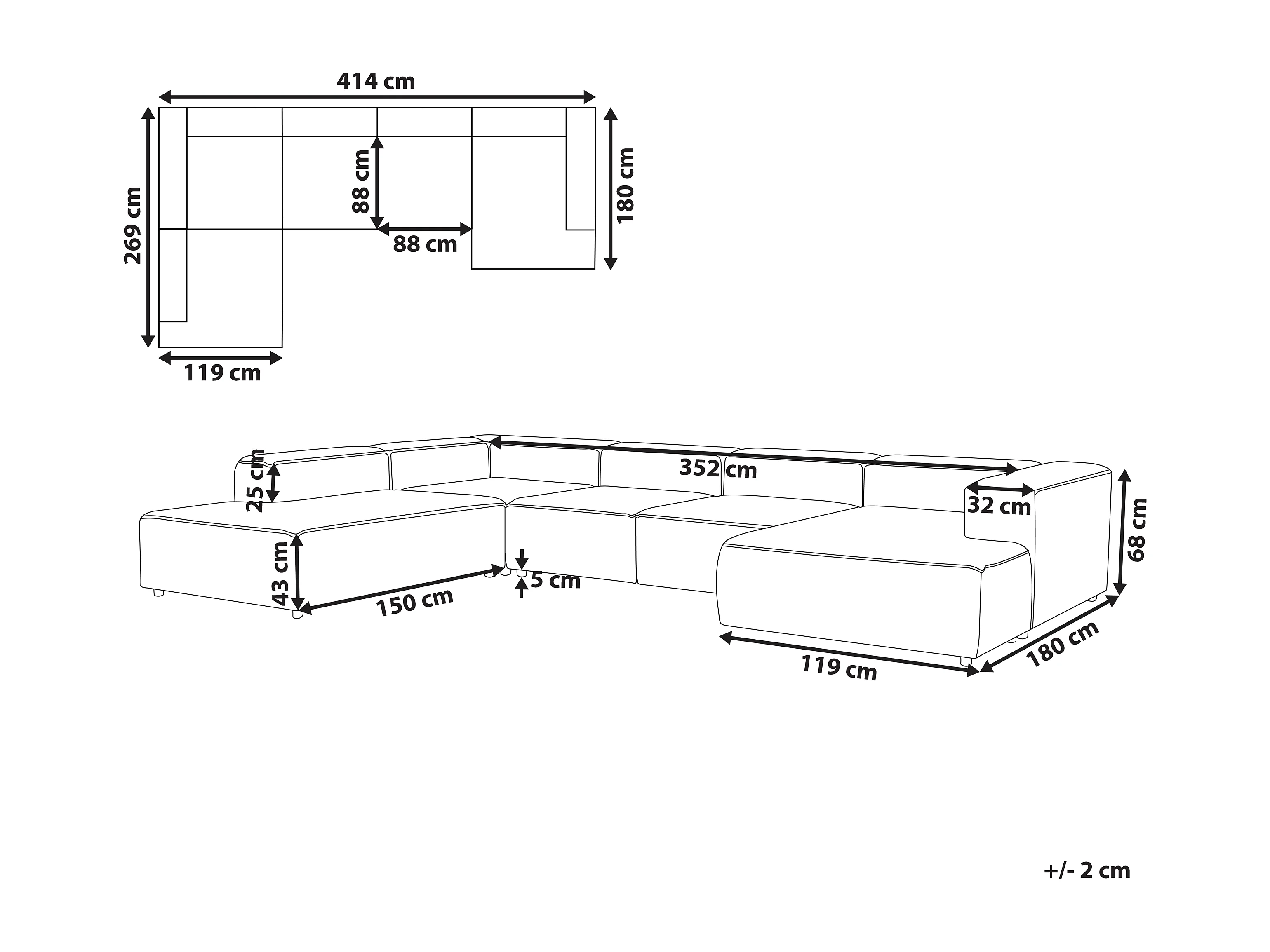 Canapé d'angle modulable 5 places ARDAL Velours côtelé Blanc cassé Côté droit