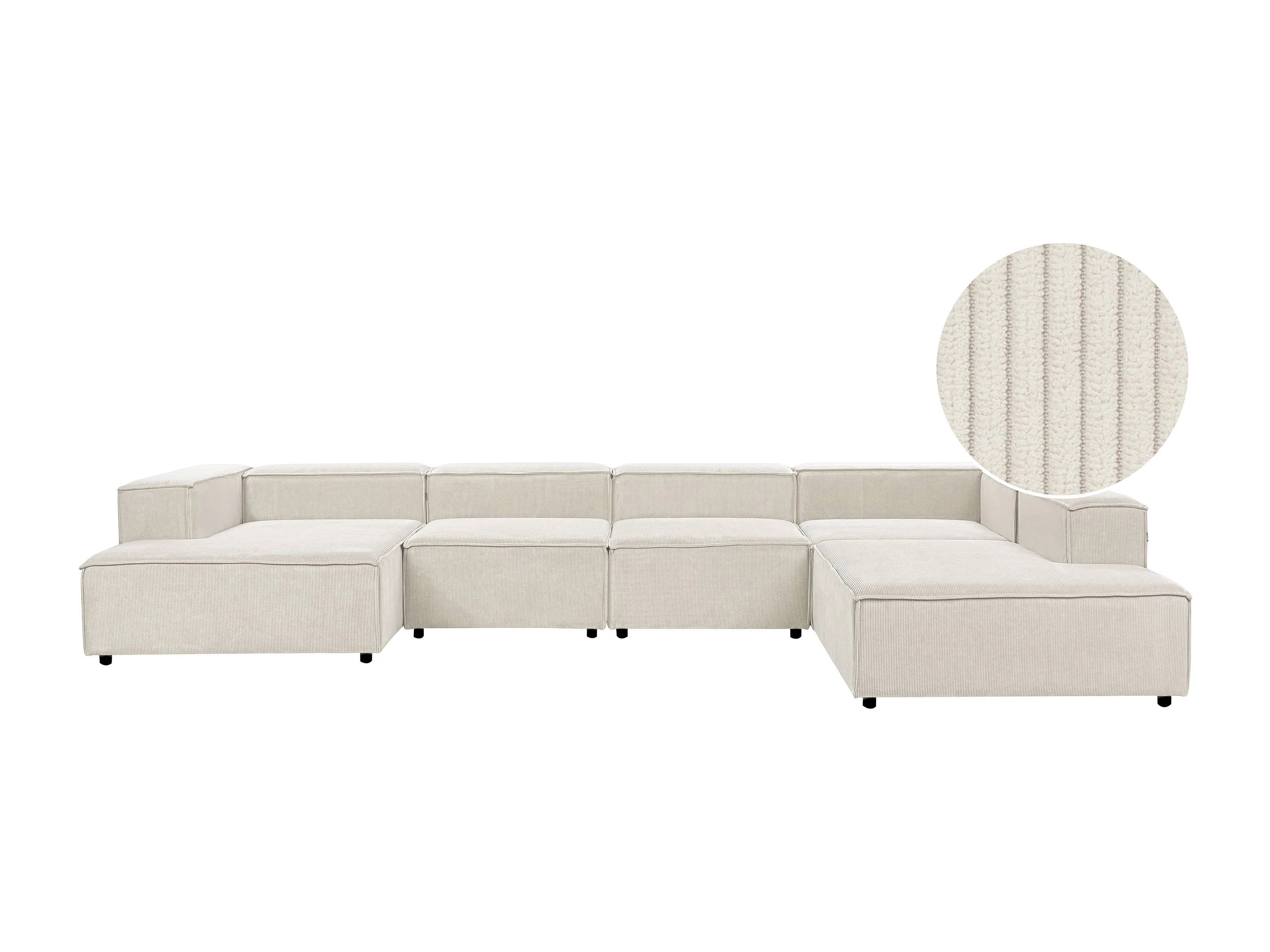 Canapé d'angle modulable 5 places ARDAL Velours côtelé Blanc cassé Côté gauche