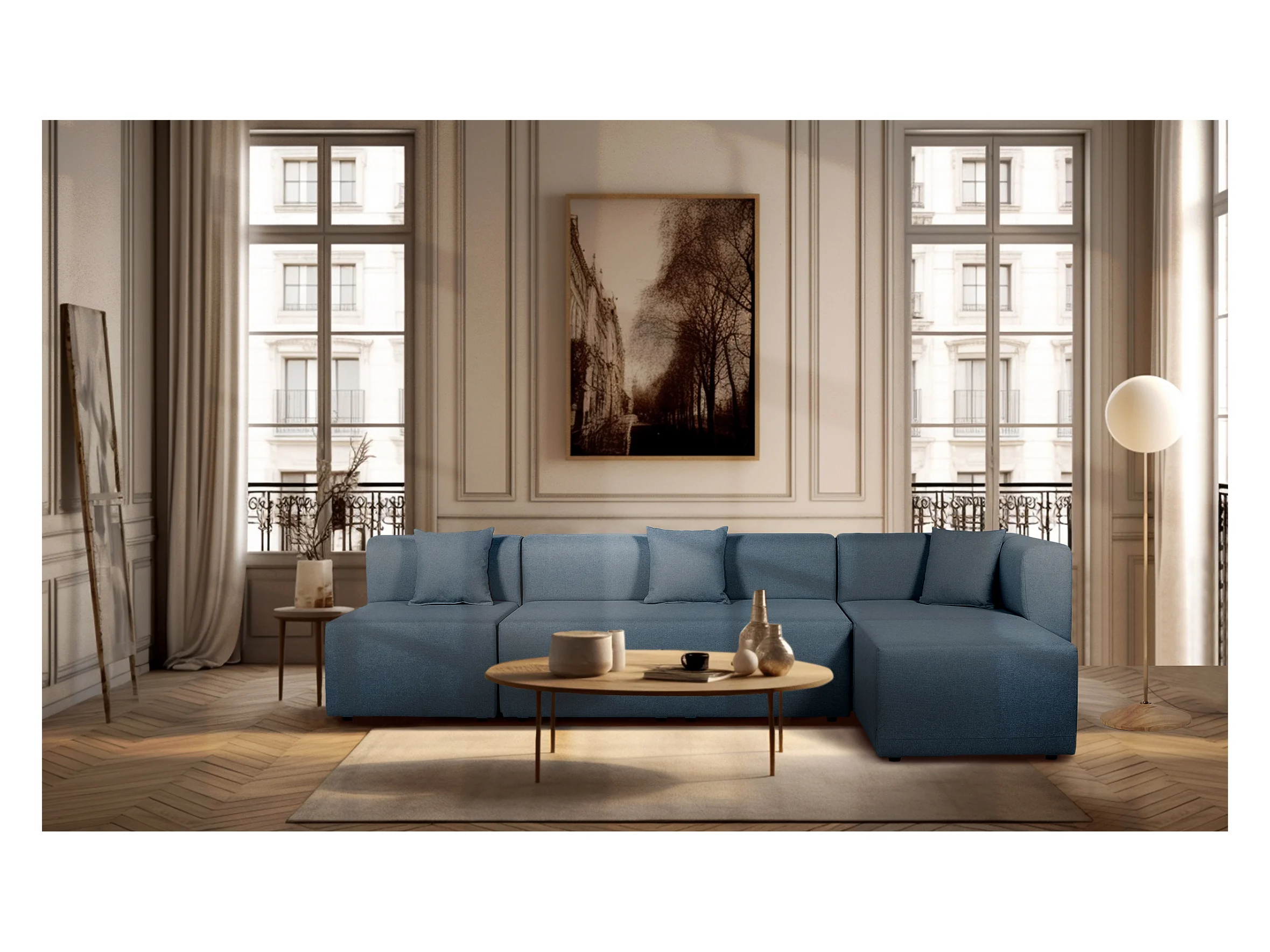 Canapé d'angle modulable 5 places en tissu bleu PINOT - MADE IN FRANCE