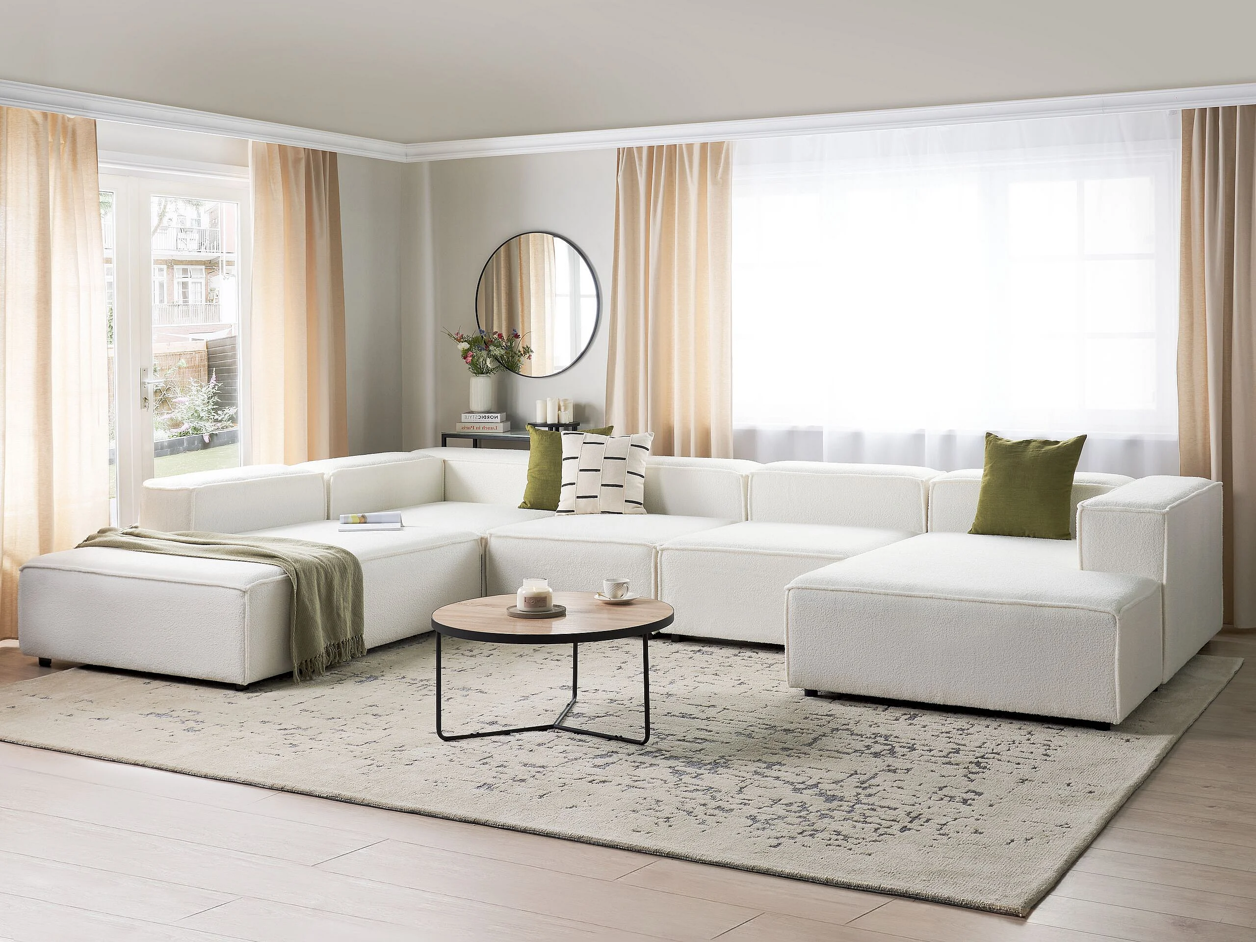 Canapé d\'angle modulable 5 places ARDAL Bouclé Blanc cassé Côté droit