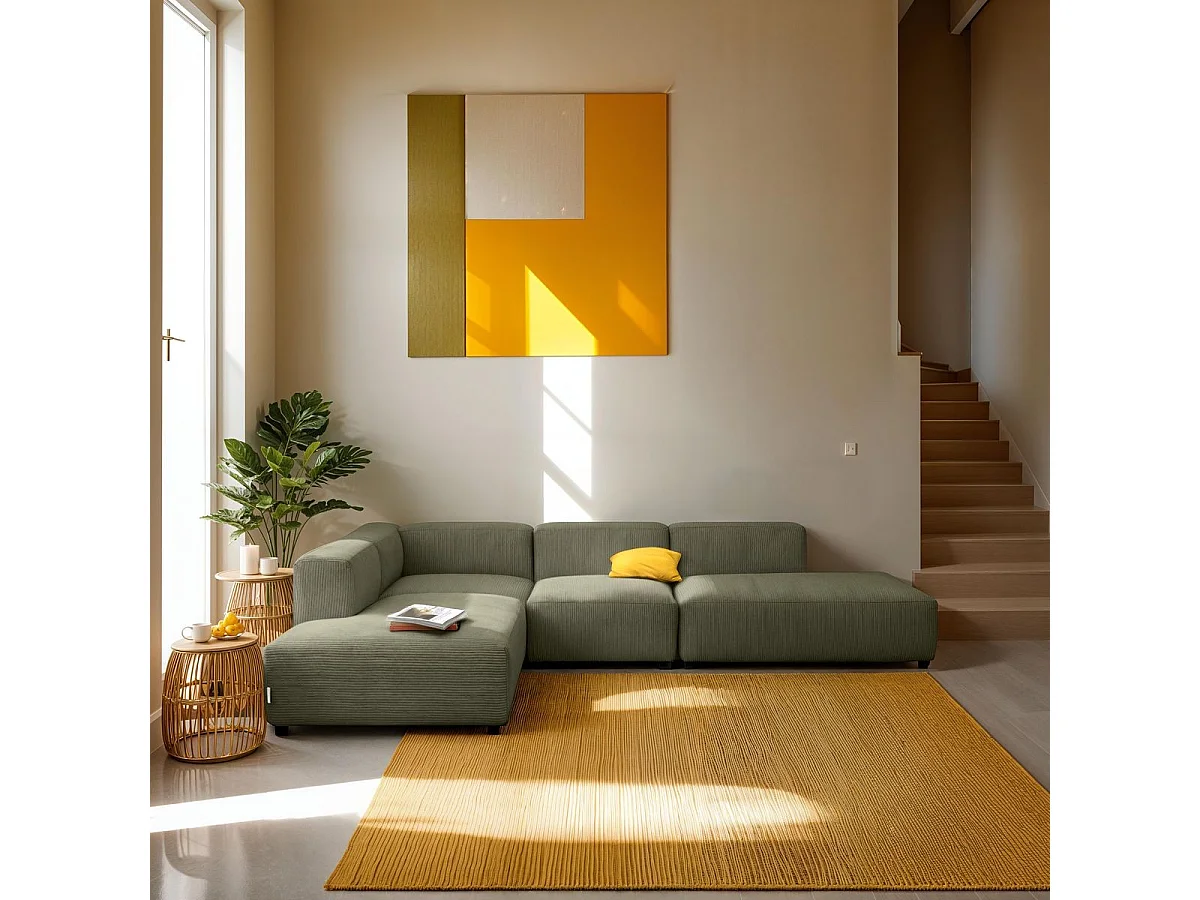 Canapé d'angle modulable réversible 7 places en velours côtelé vert kaki - Modulo