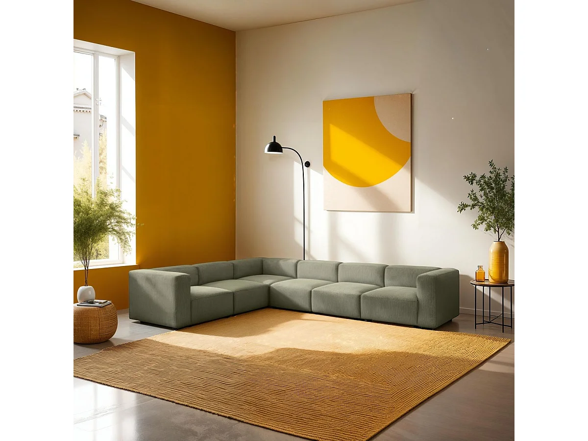 Canapé d'angle modulable réversible 8 places en velours côtelé vert kaki - Modulo