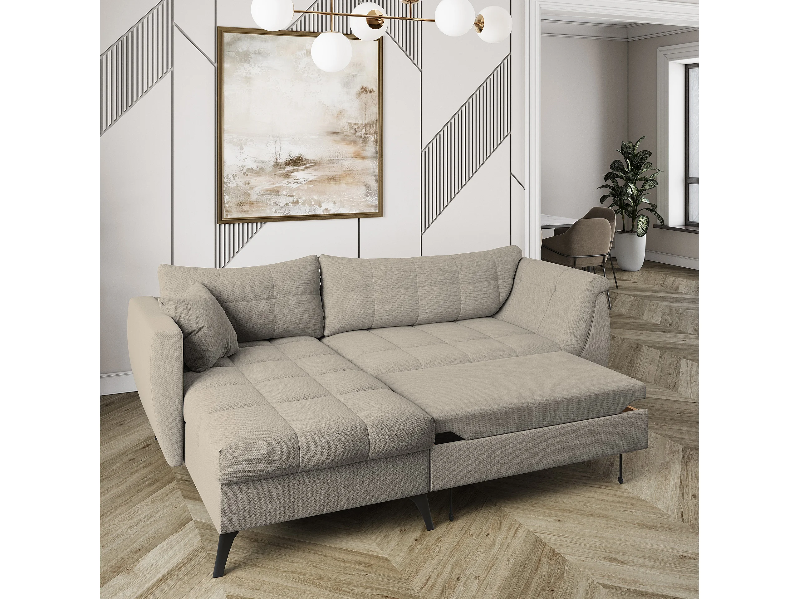 Canapé d'angle MOLLIS Beige en tissu texturé avec fonction de couchage