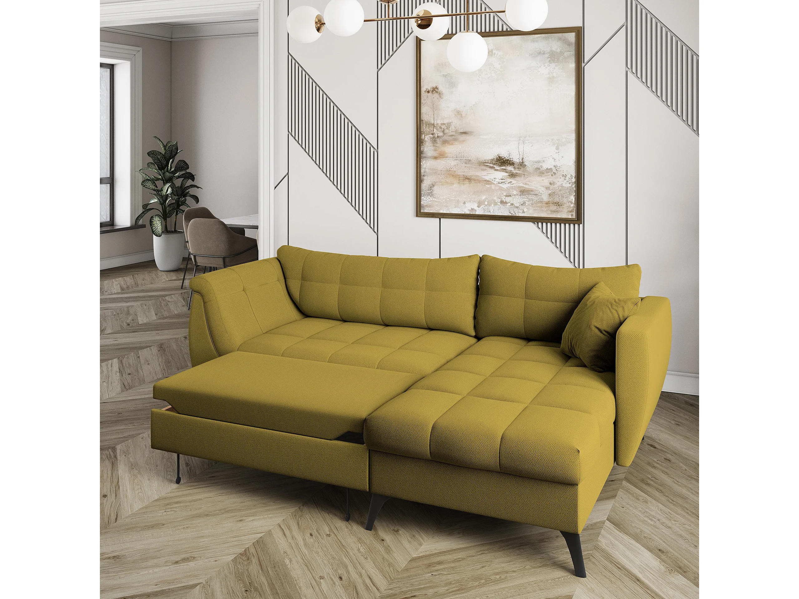 Canapé d'angle MOLLIS Jaune en tissu texturé avec fonction de couchage