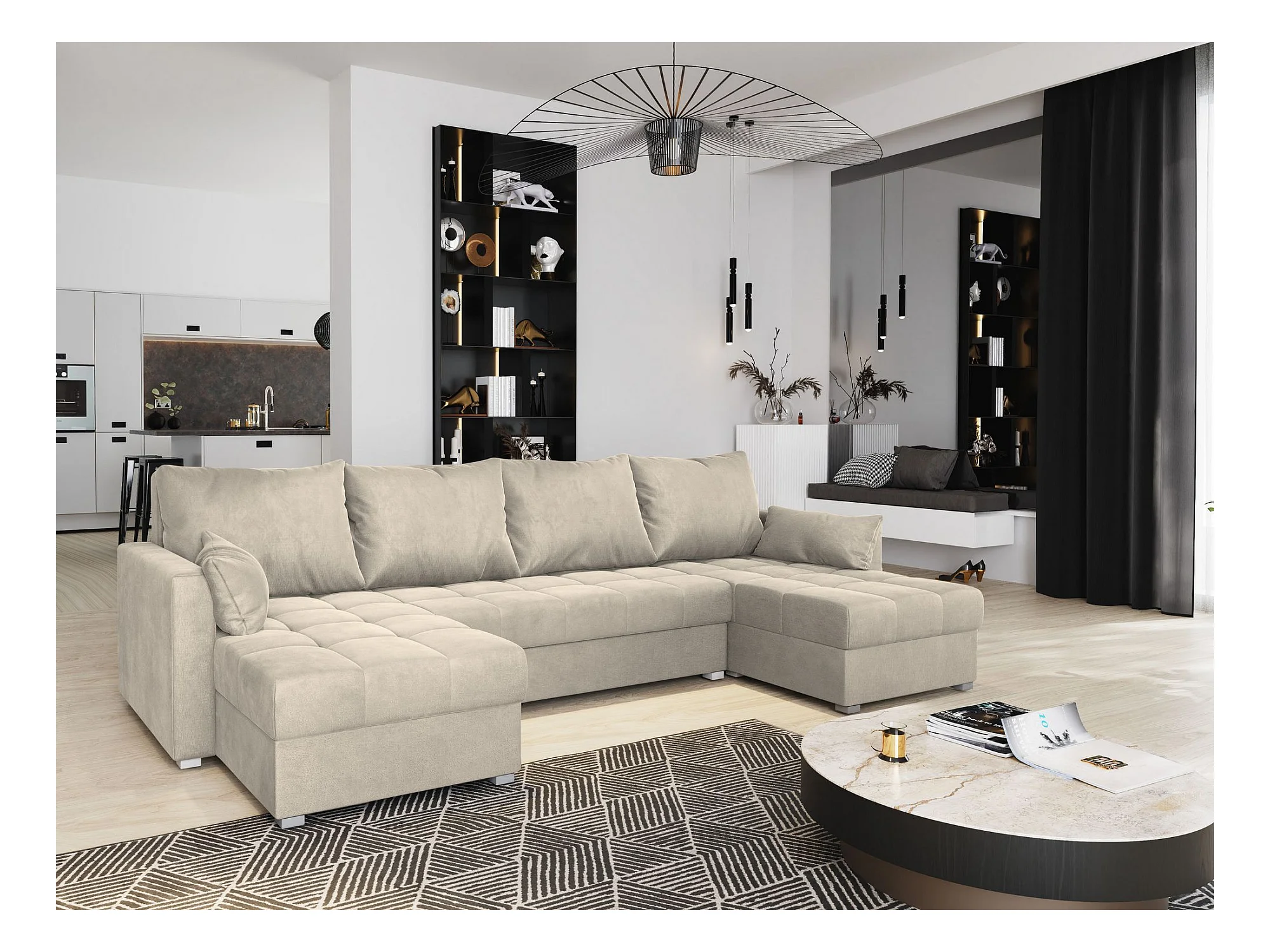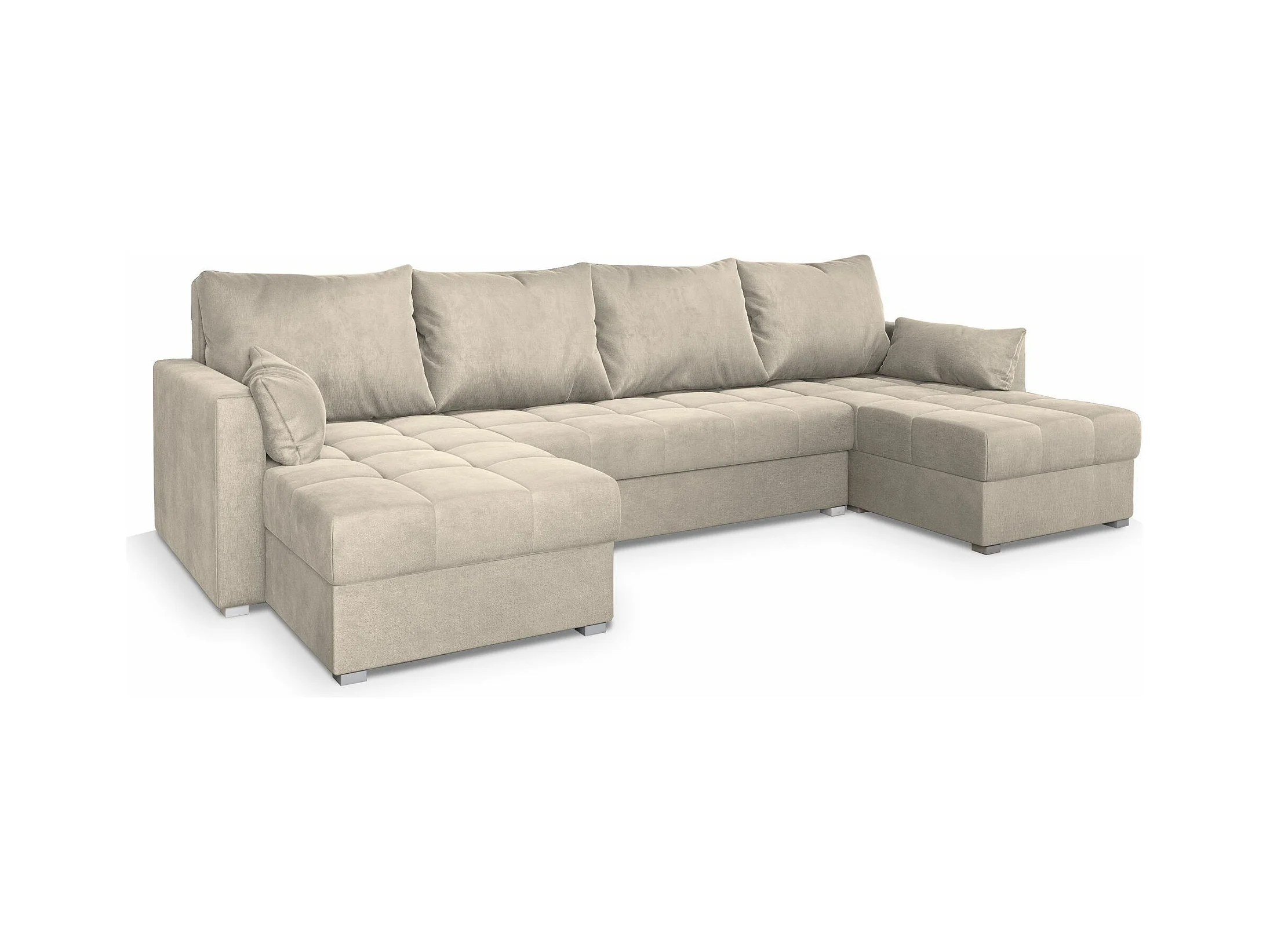 Canapé d'angle NAKO Crème en velours avec fonction de couchage