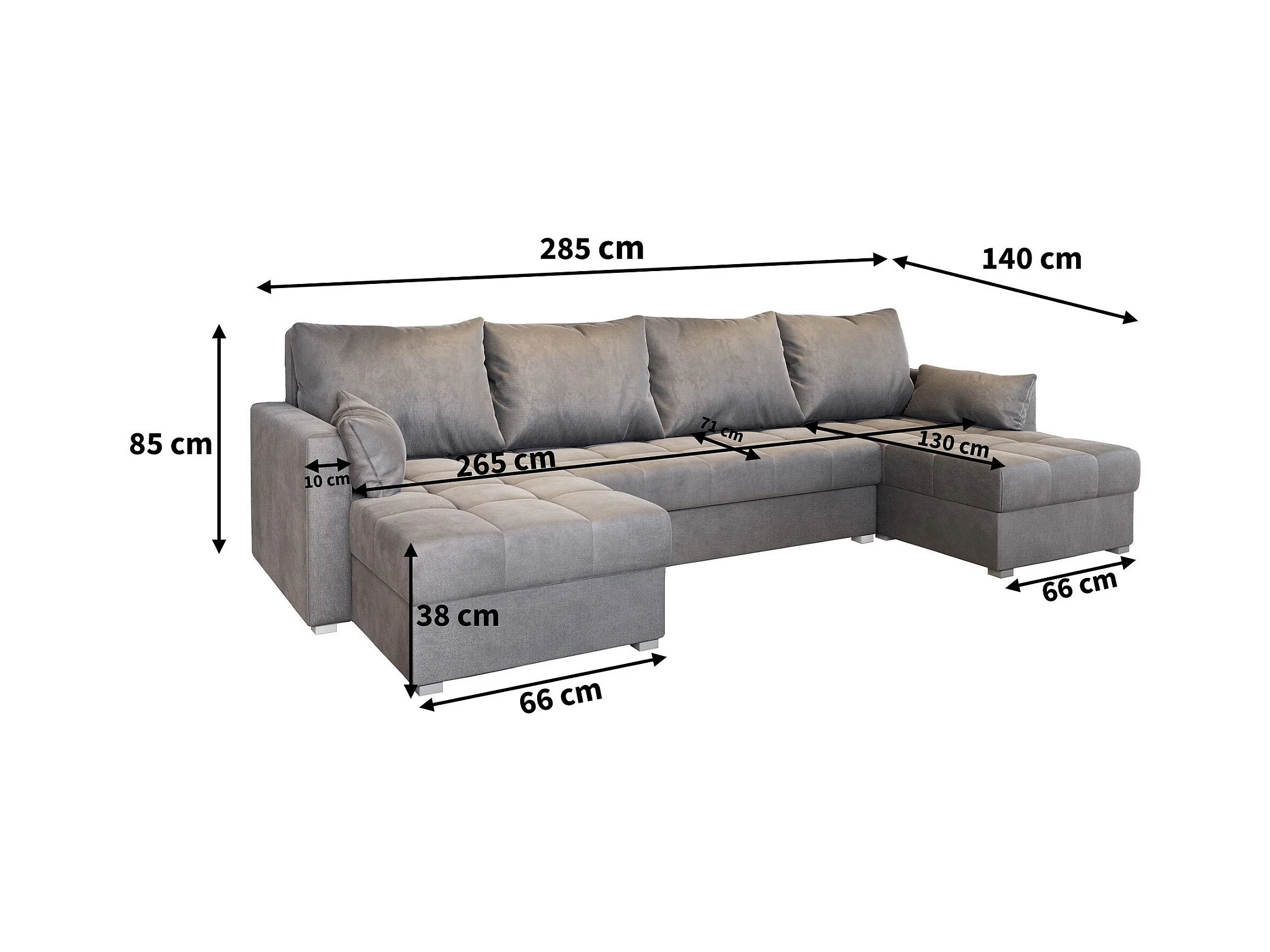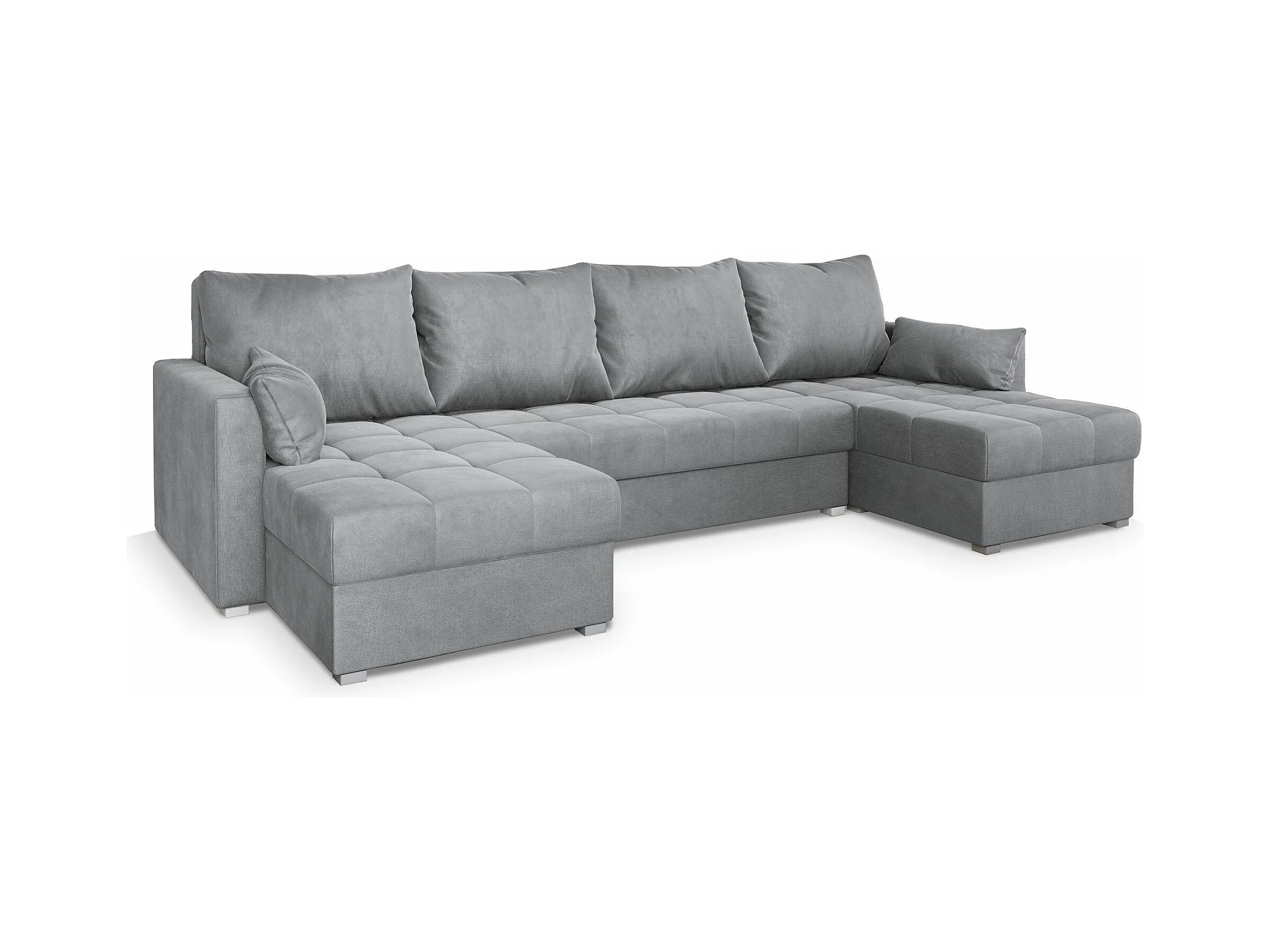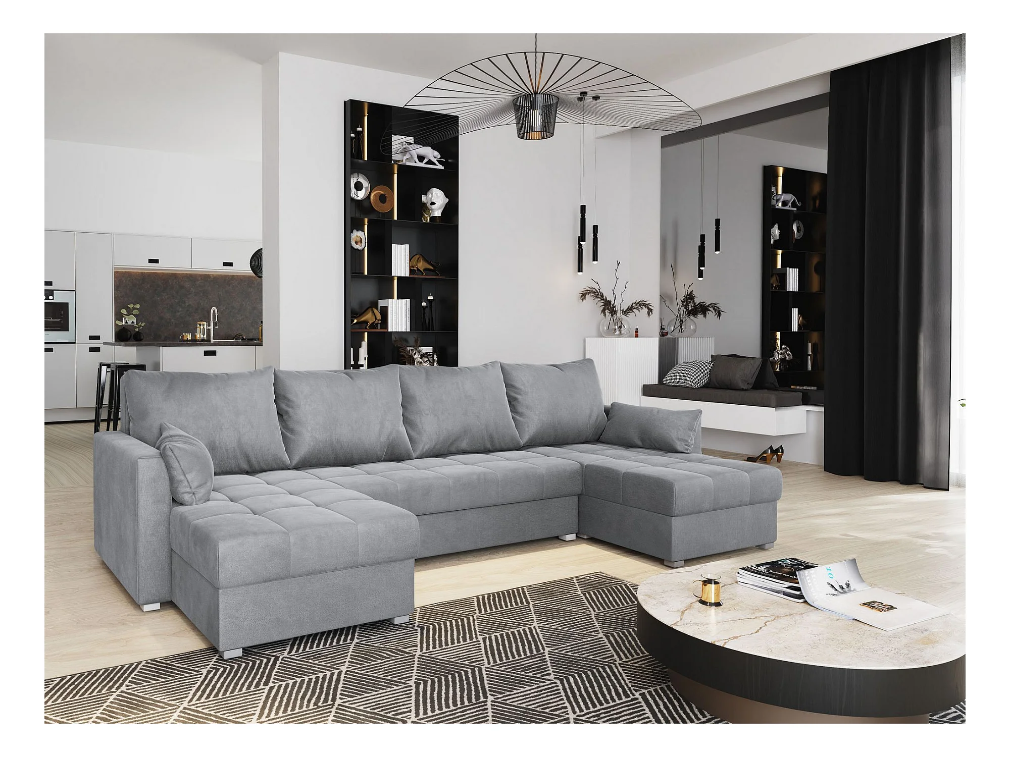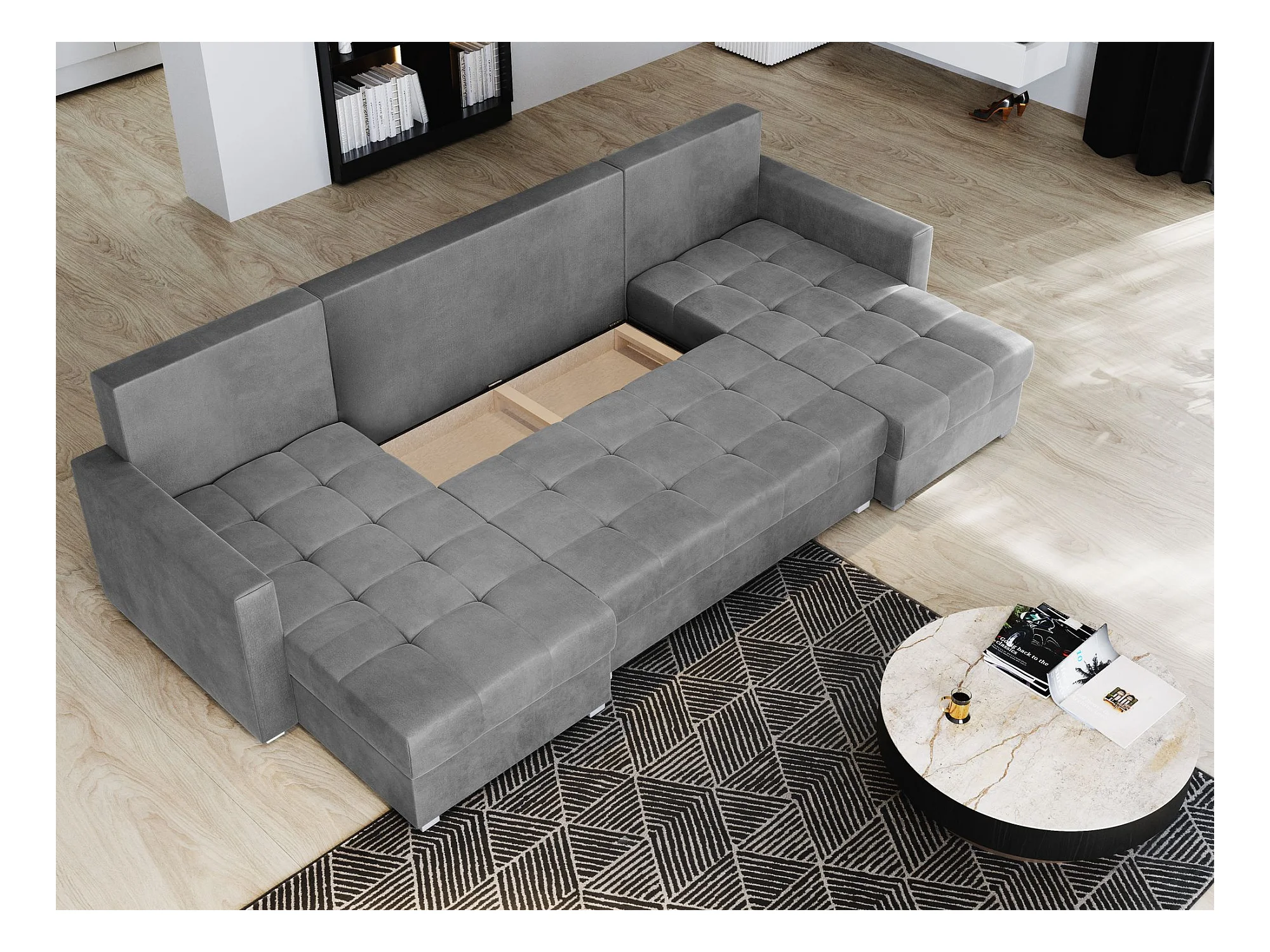 Canapé d'angle NAKO Gris clair en velours avec fonction de couchage