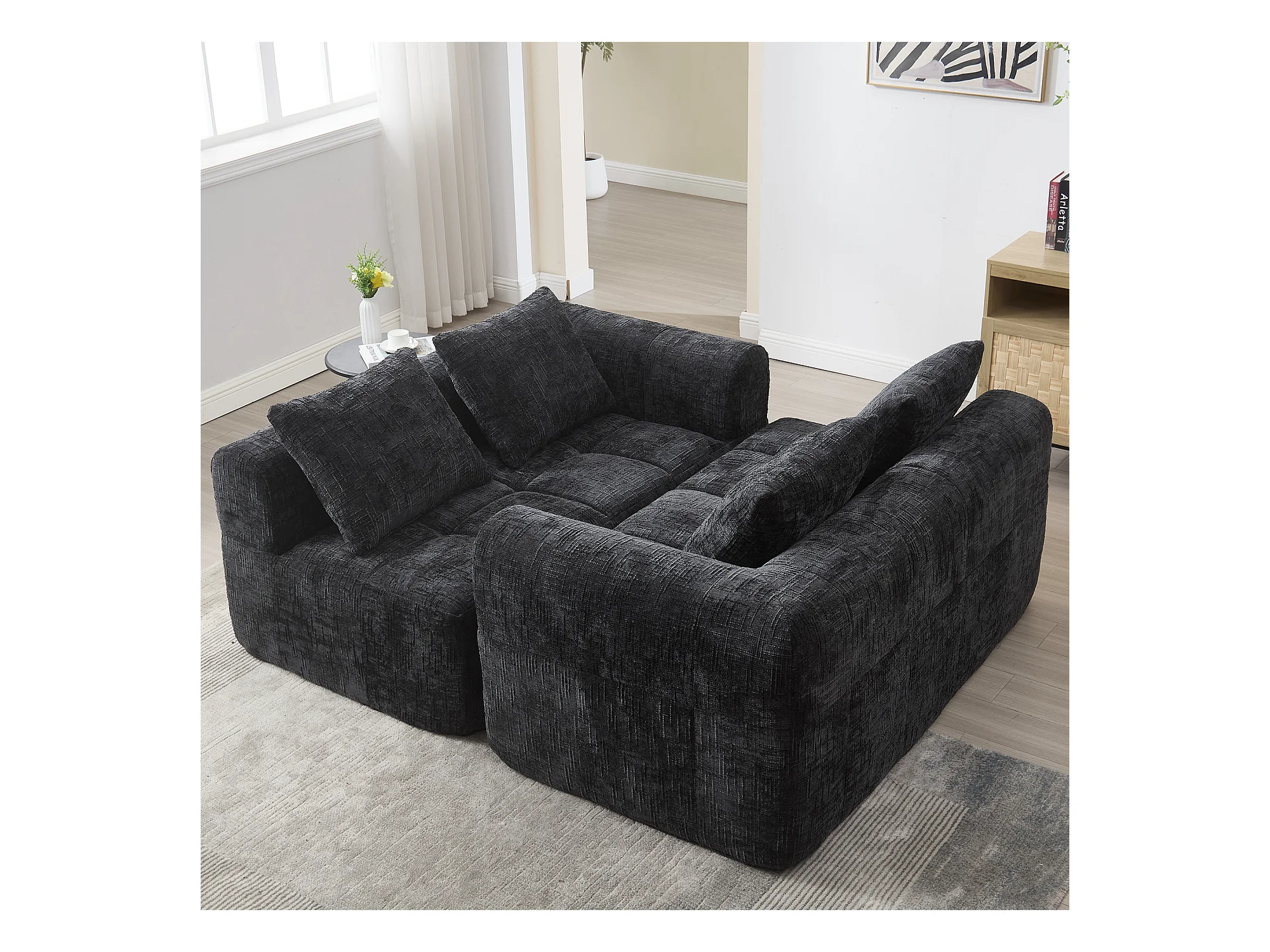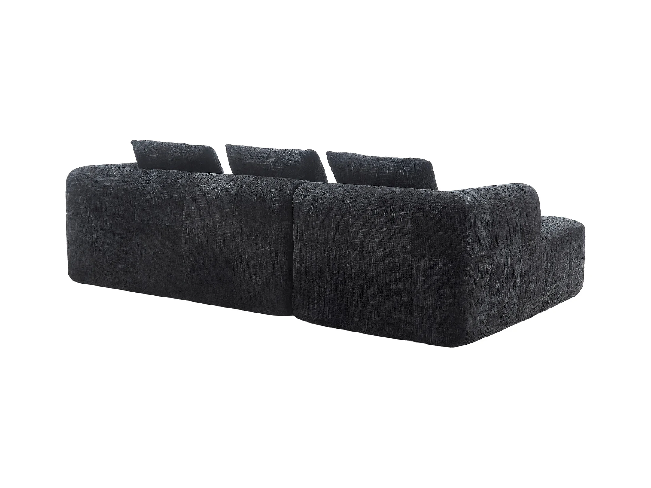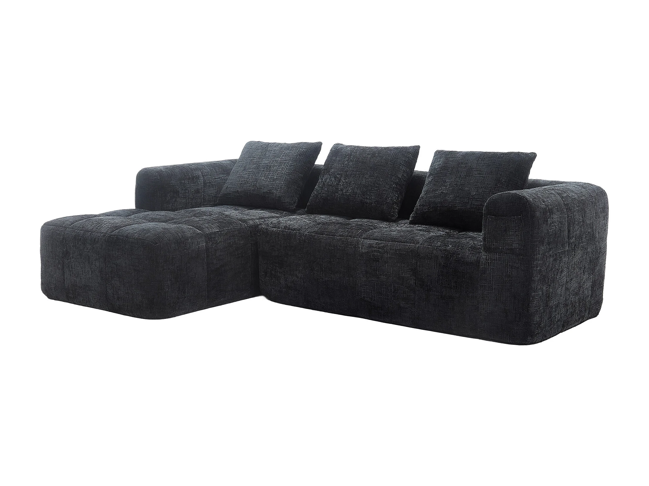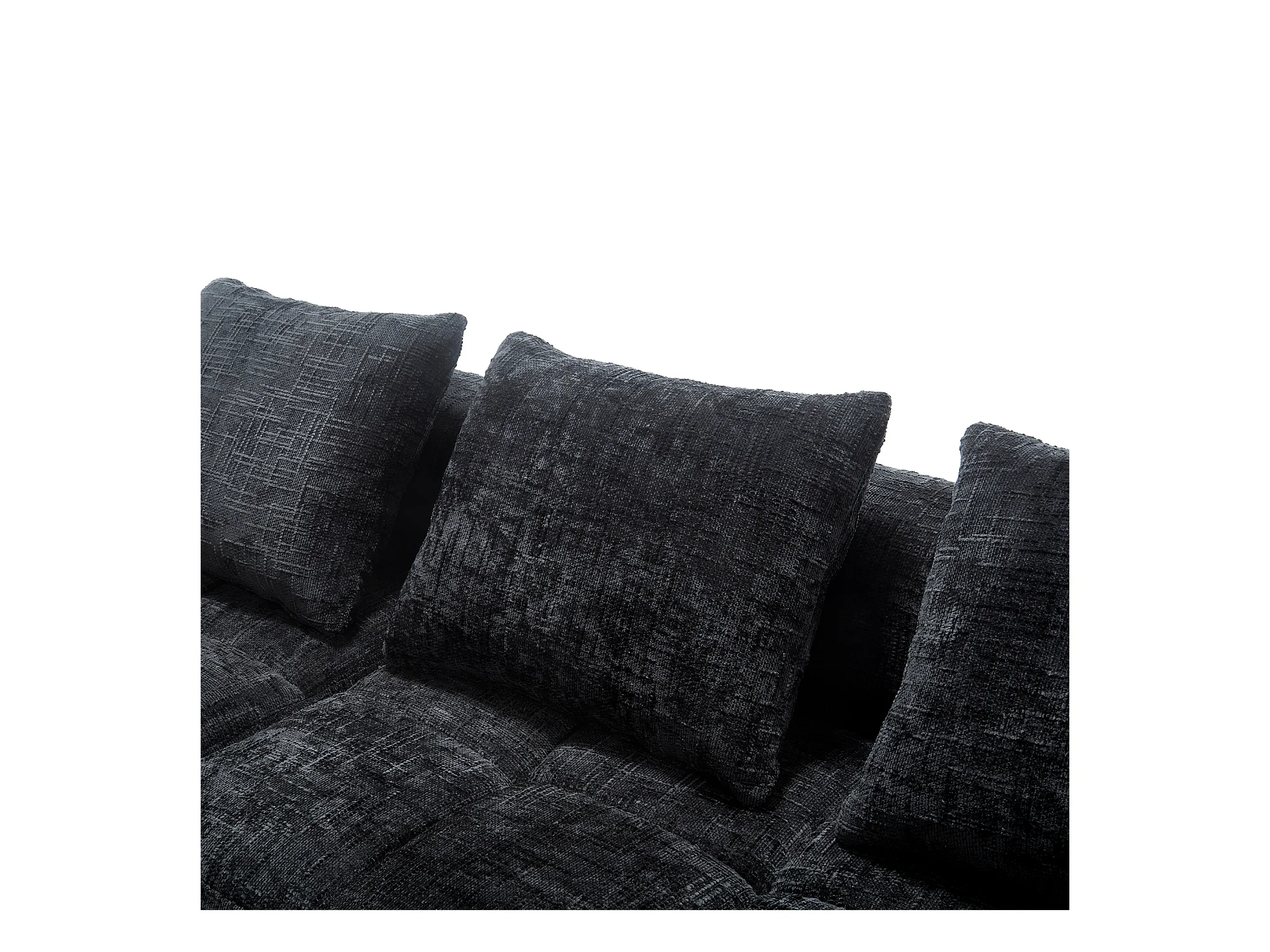 Canapé d'angle noir - Canapé droit avec poches de rangement et 3 coussins - avec méridienne et accoudoirs