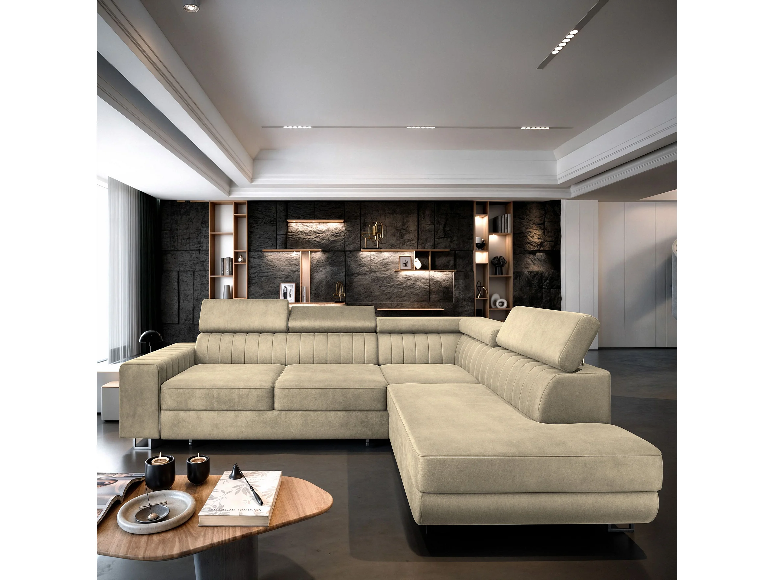Canapé d'angle NOLA Crème en velours avec fonction de couchage