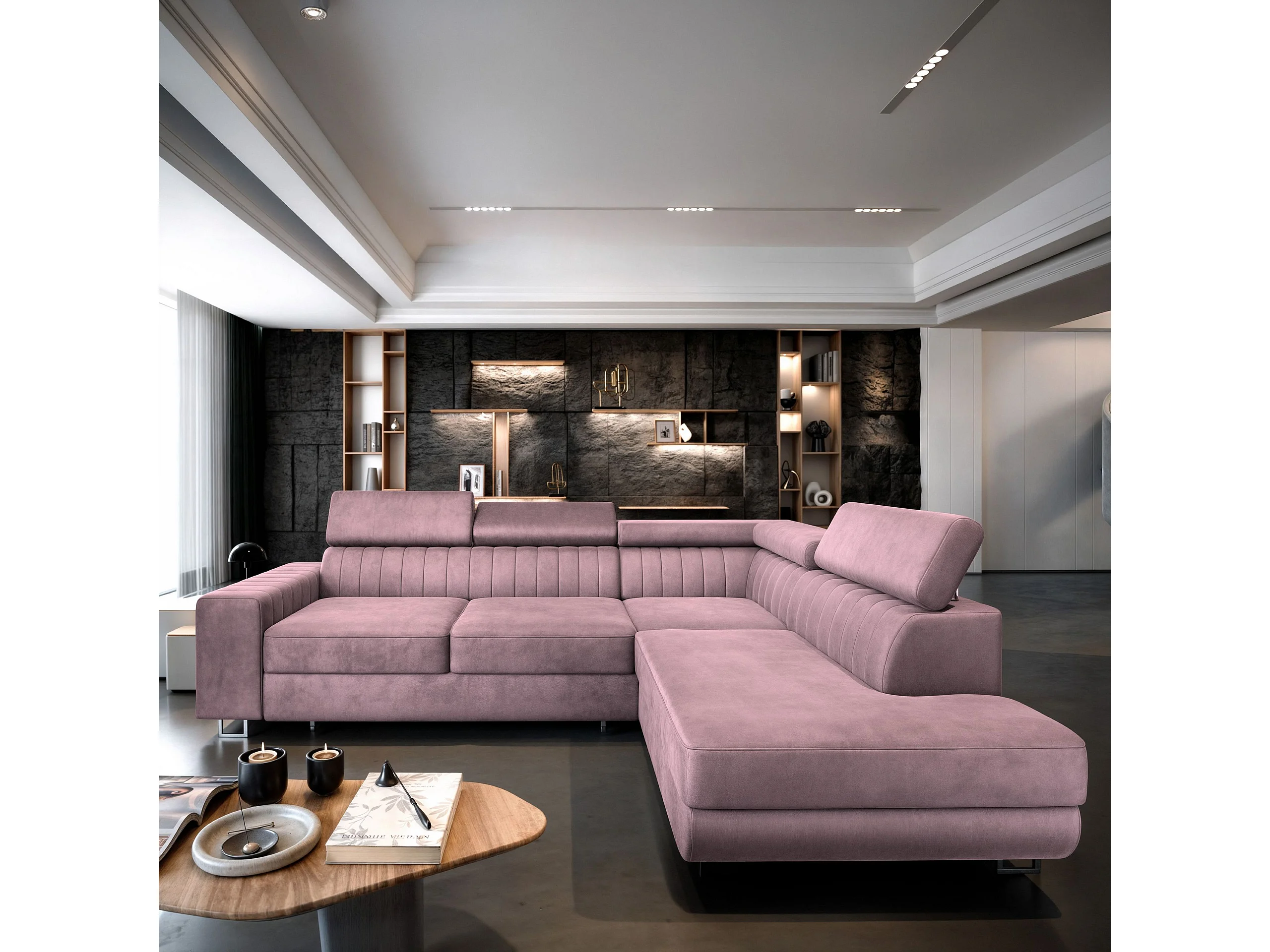 Canapé d'angle NOLA Parme en velours avec fonction de couchage