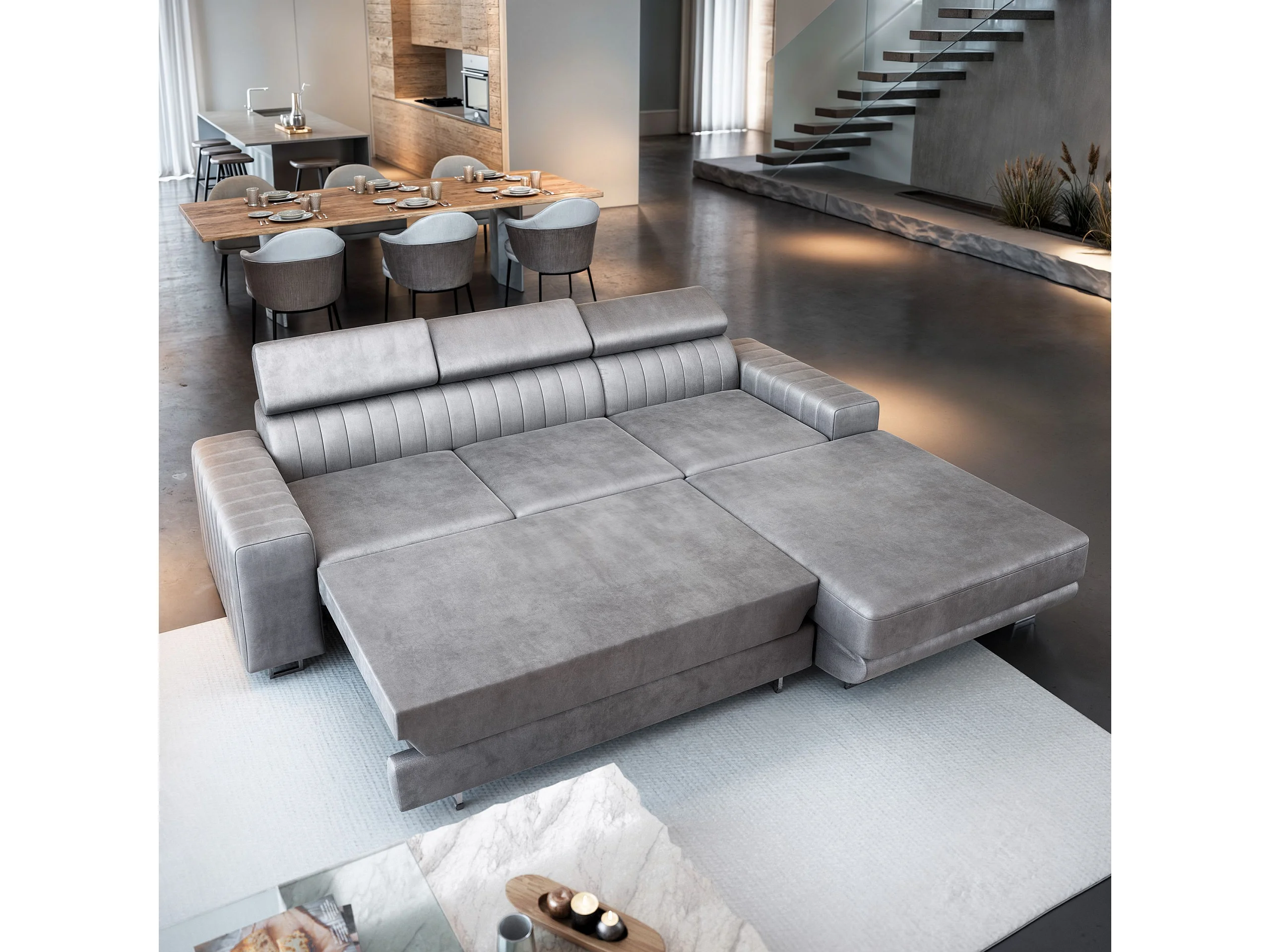 Canapé d'angle NOTO Beige en velours avec fonction de couchage