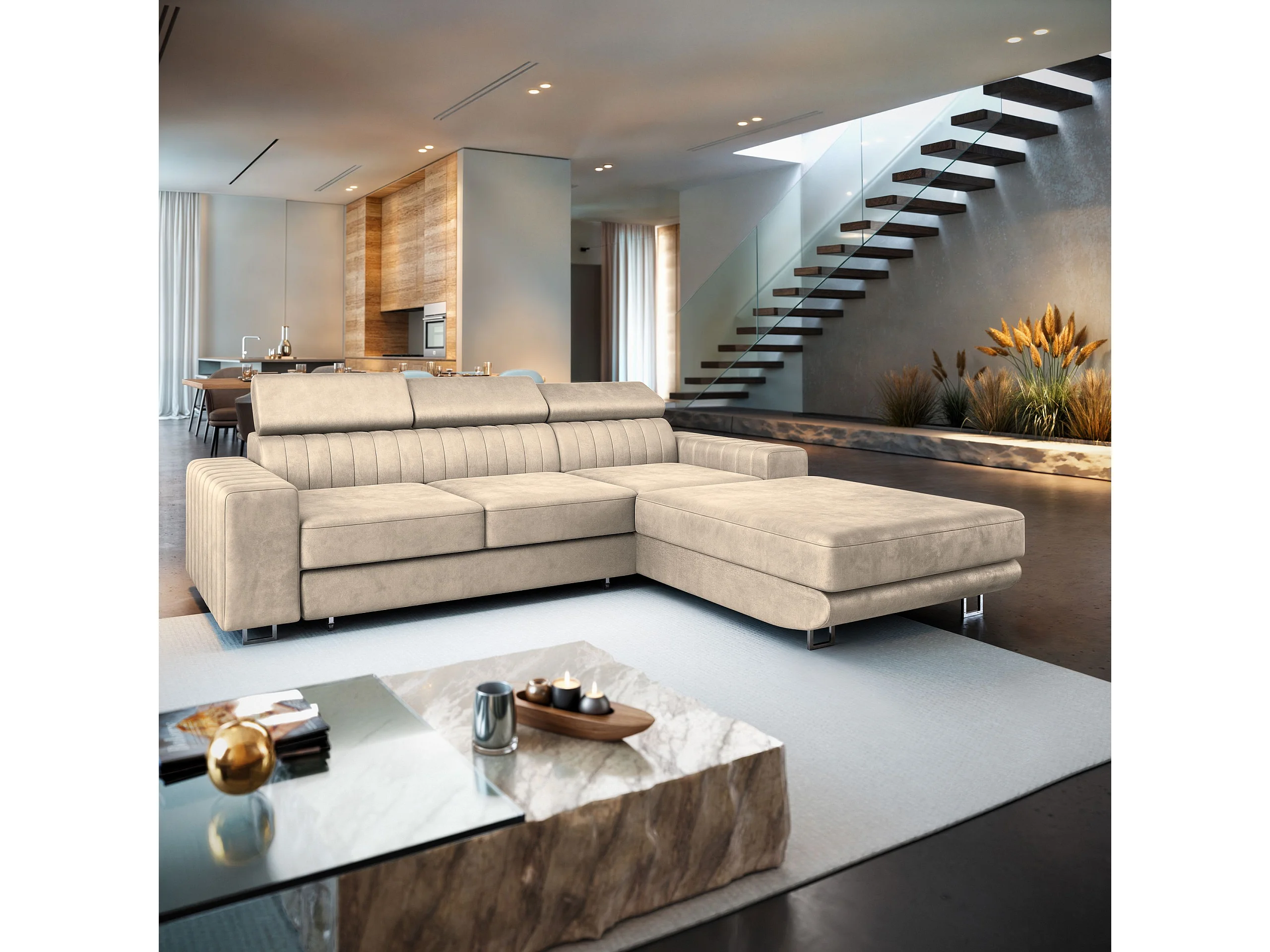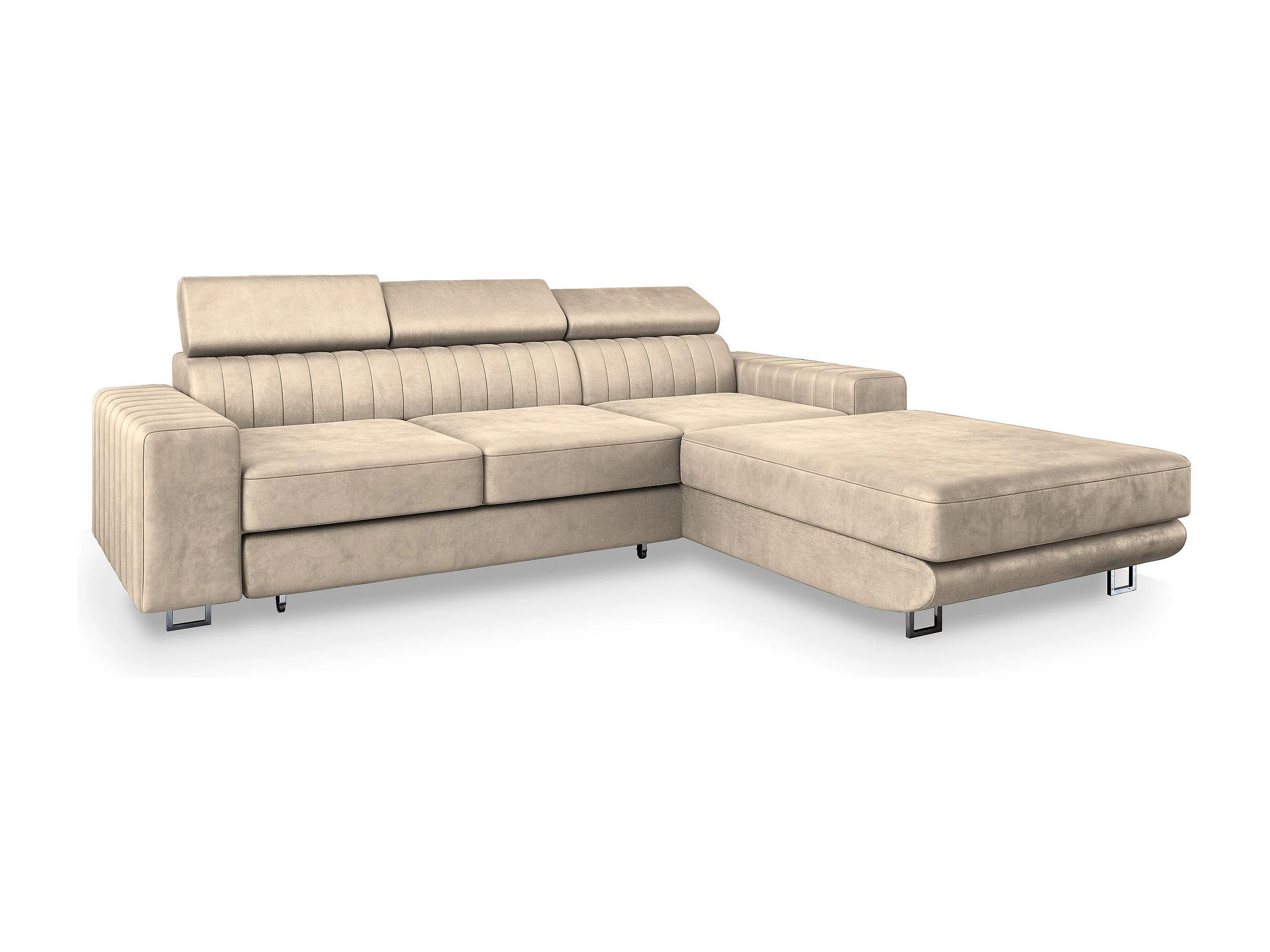 Canapé d'angle NOTO Crème en velours avec fonction de couchage