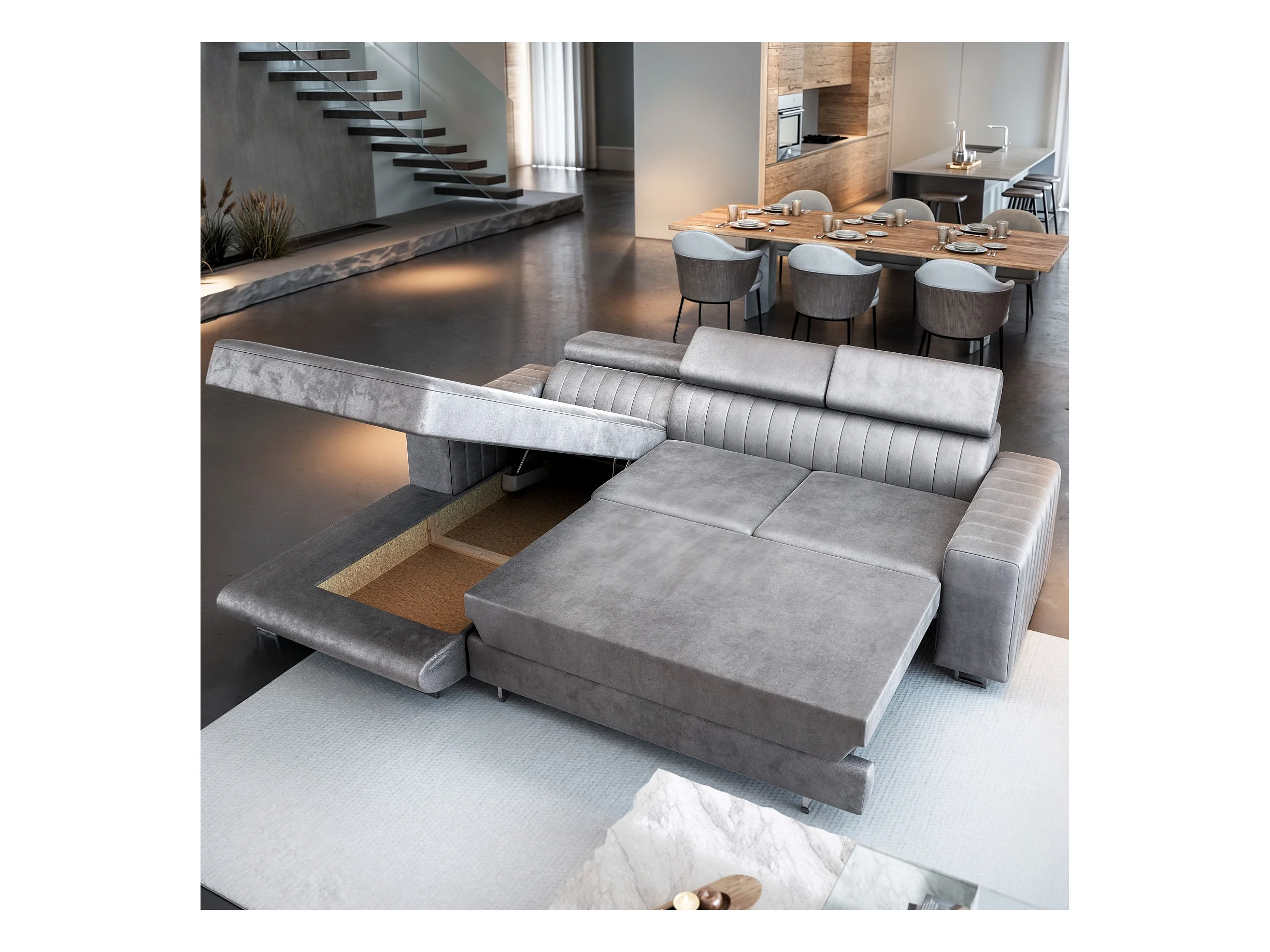 Canapé d'angle NOTO Jaune en velours avec fonction de couchage
