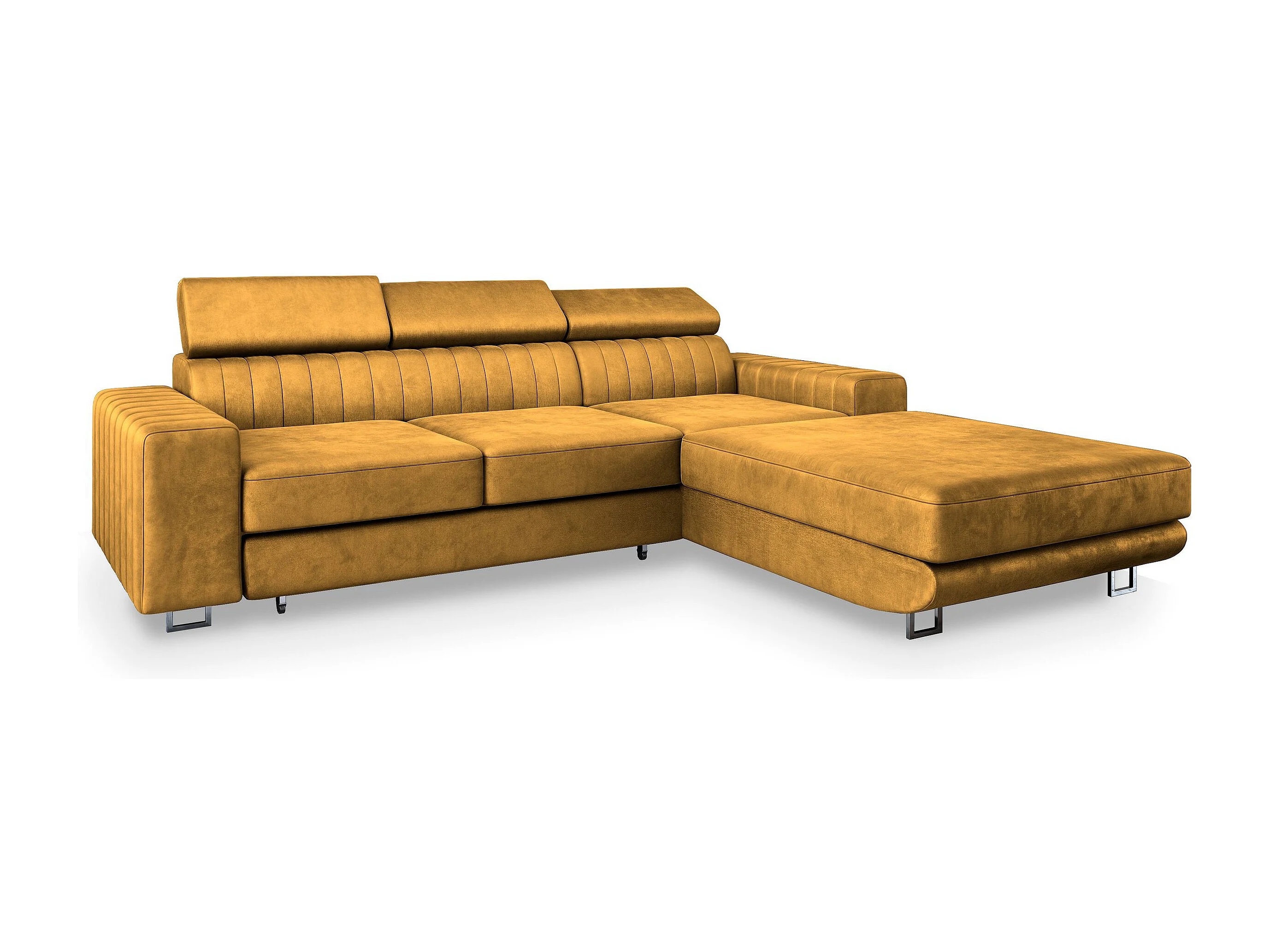 Canapé d'angle NOTO Jaune en velours avec fonction de couchage