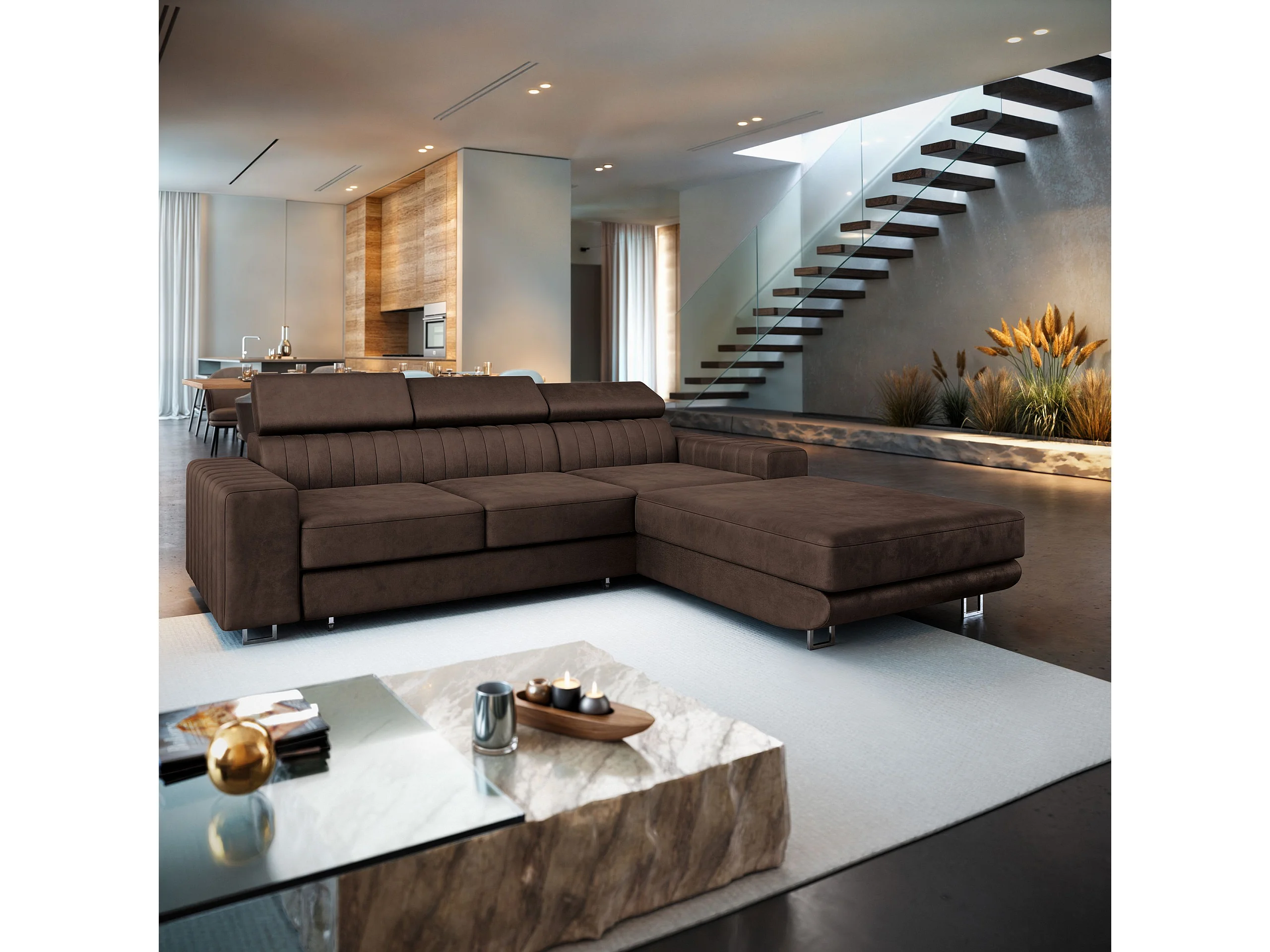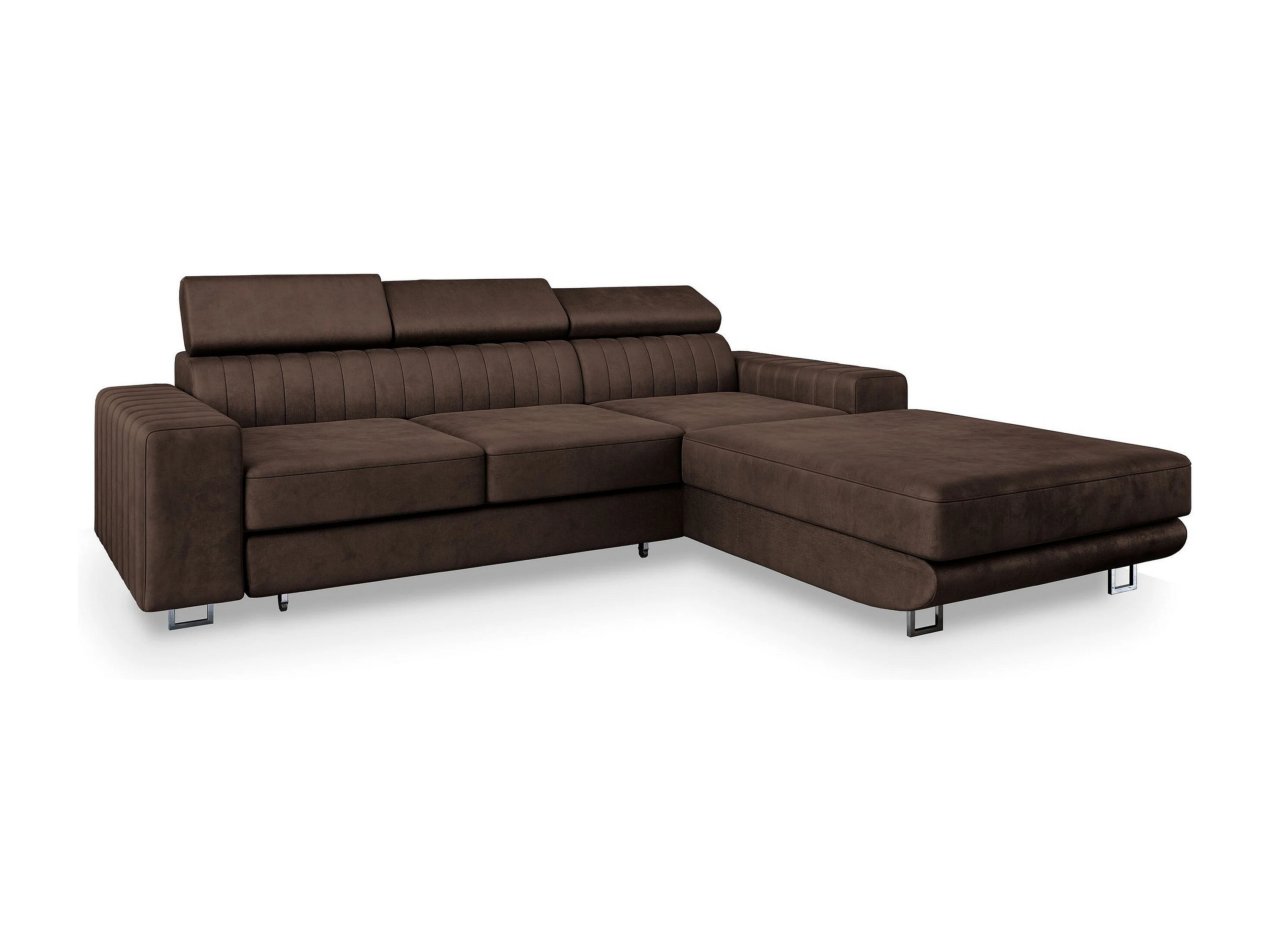 Canapé d'angle NOTO Marron en velours avec fonction de couchage