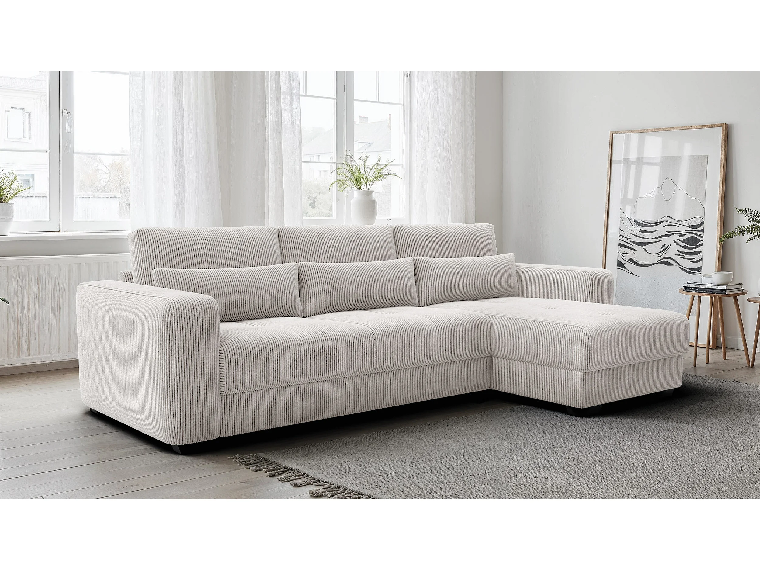 CANAPÉ D'ANGLE OLI 4 places, tissu blanc perle