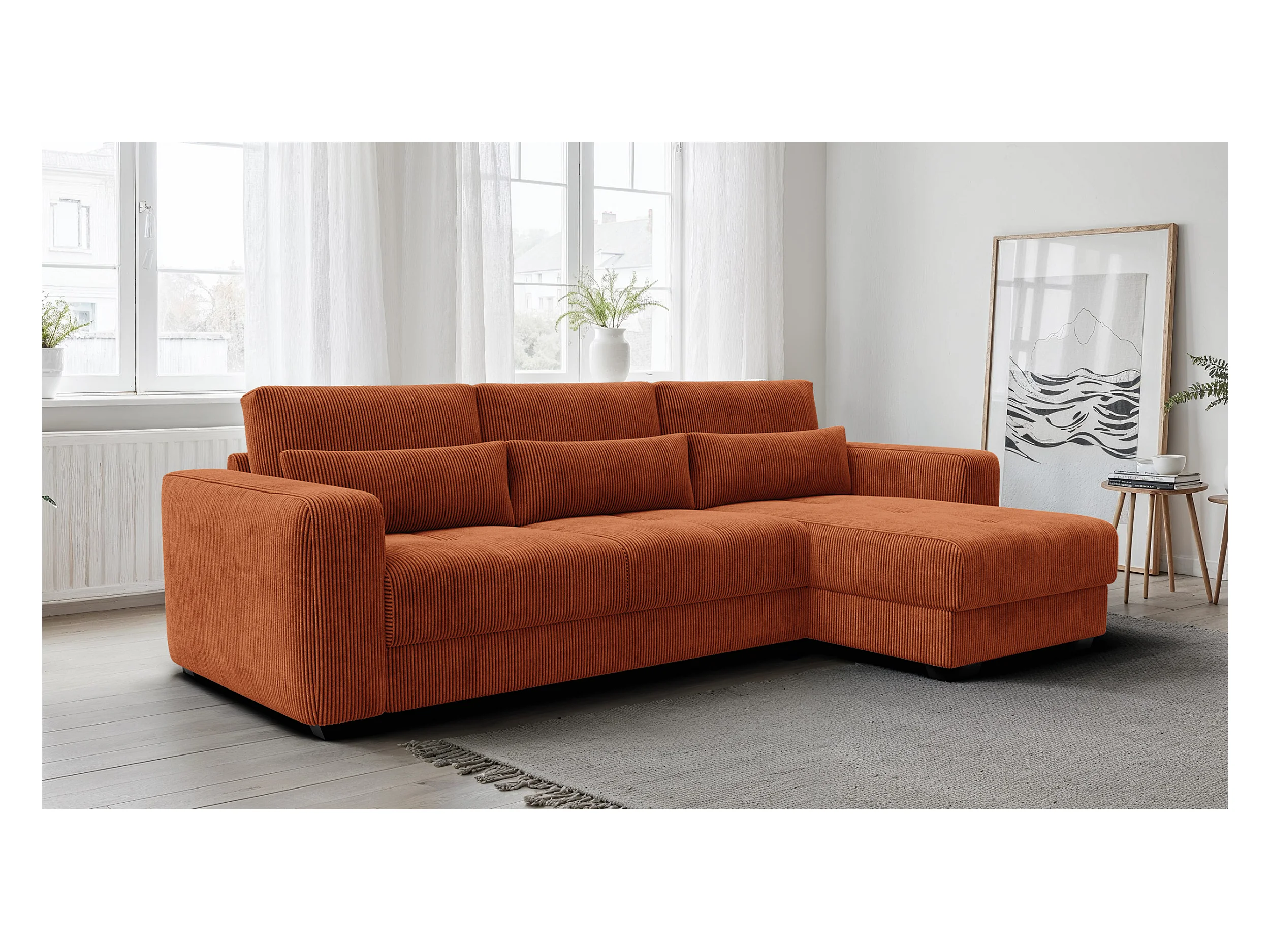 CANAPÉ D'ANGLE OLI 4 places, tissu orange