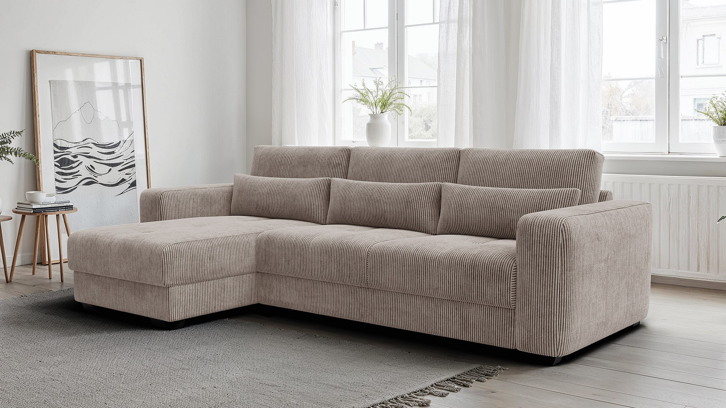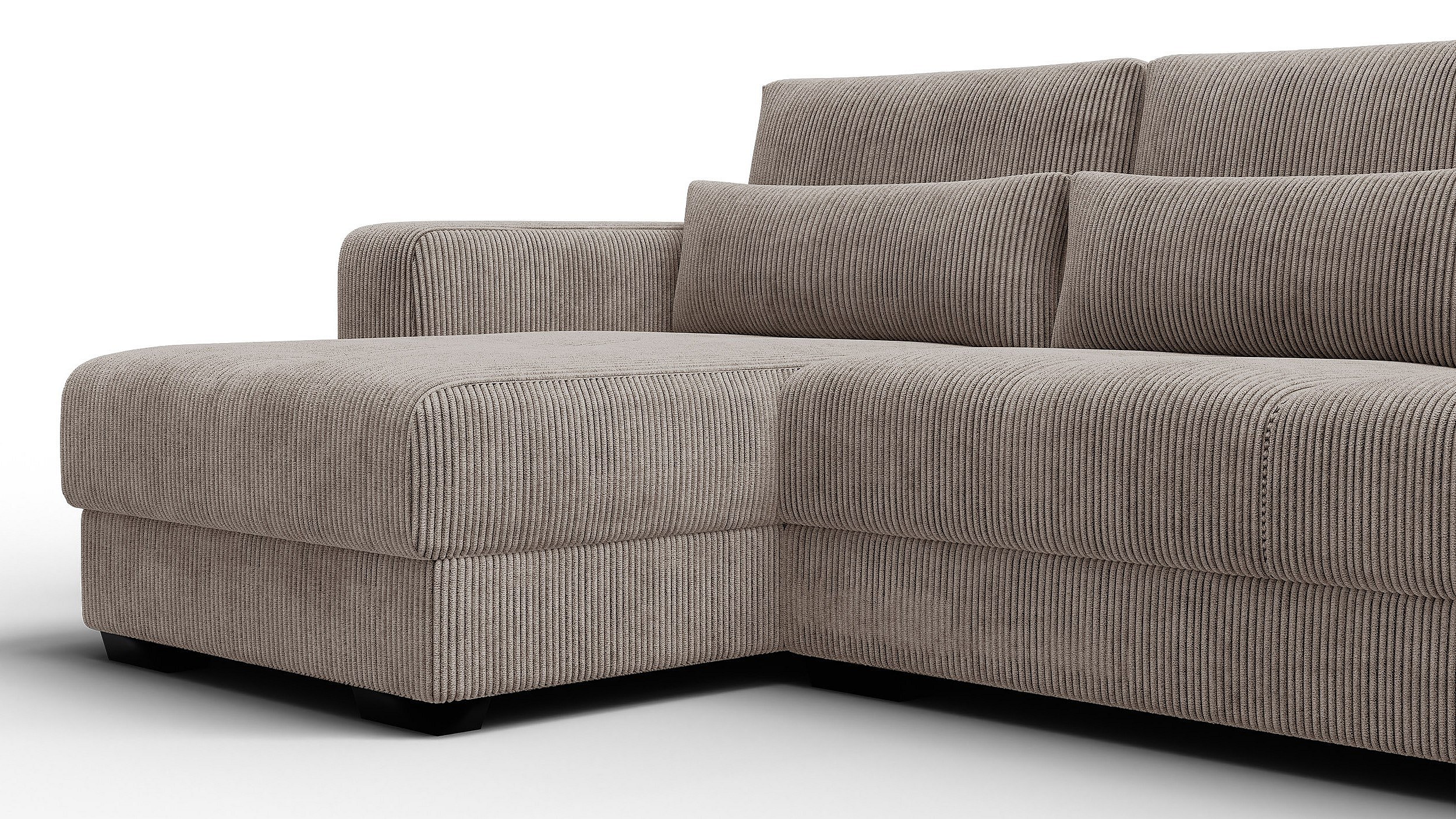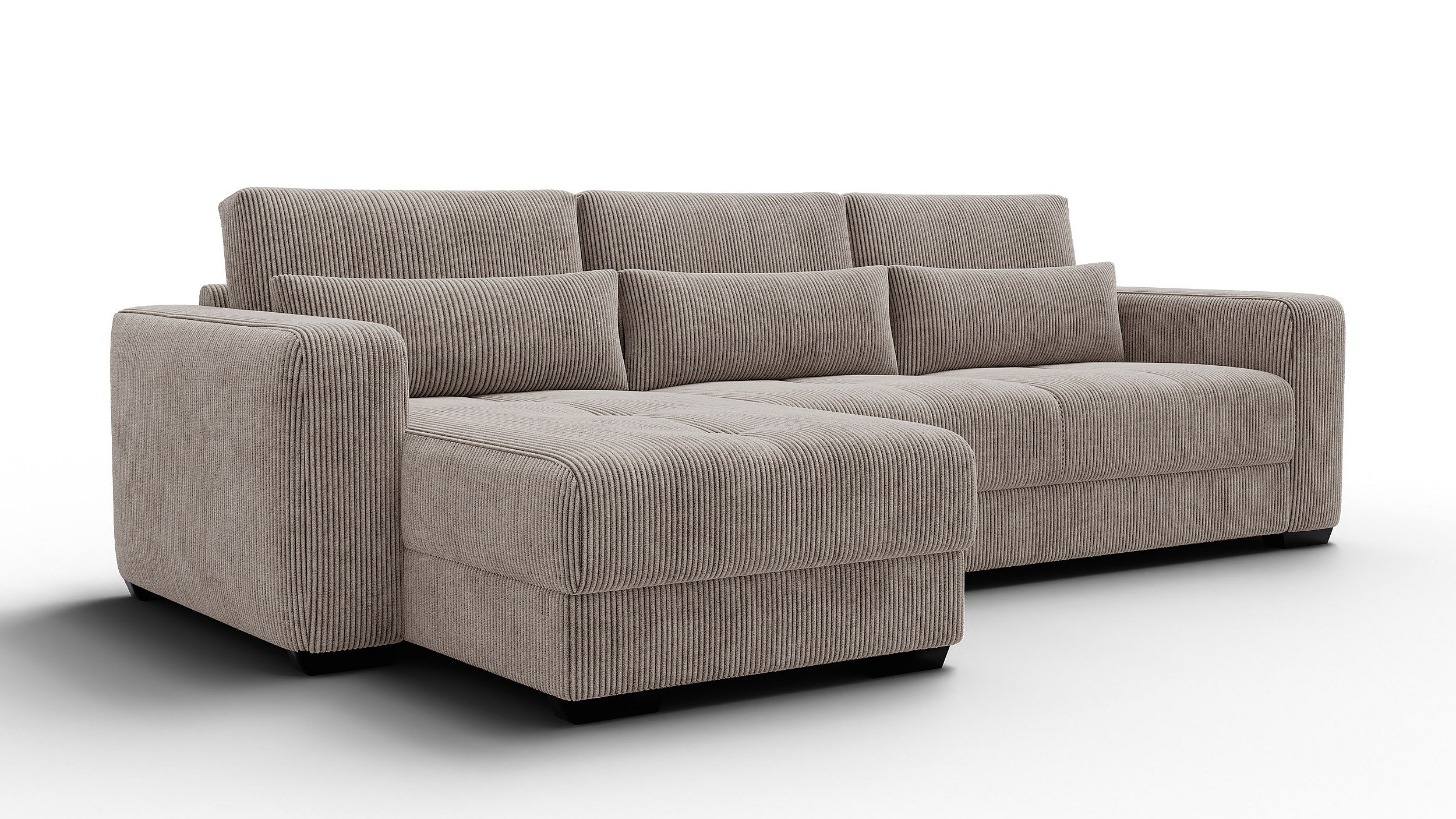 CANAPÉ D'ANGLE OLI 4 places, tissu taupe