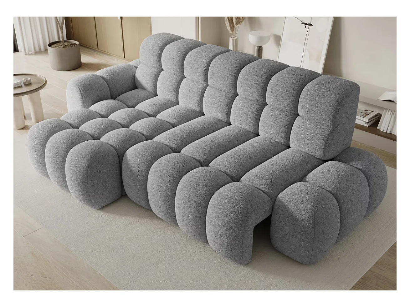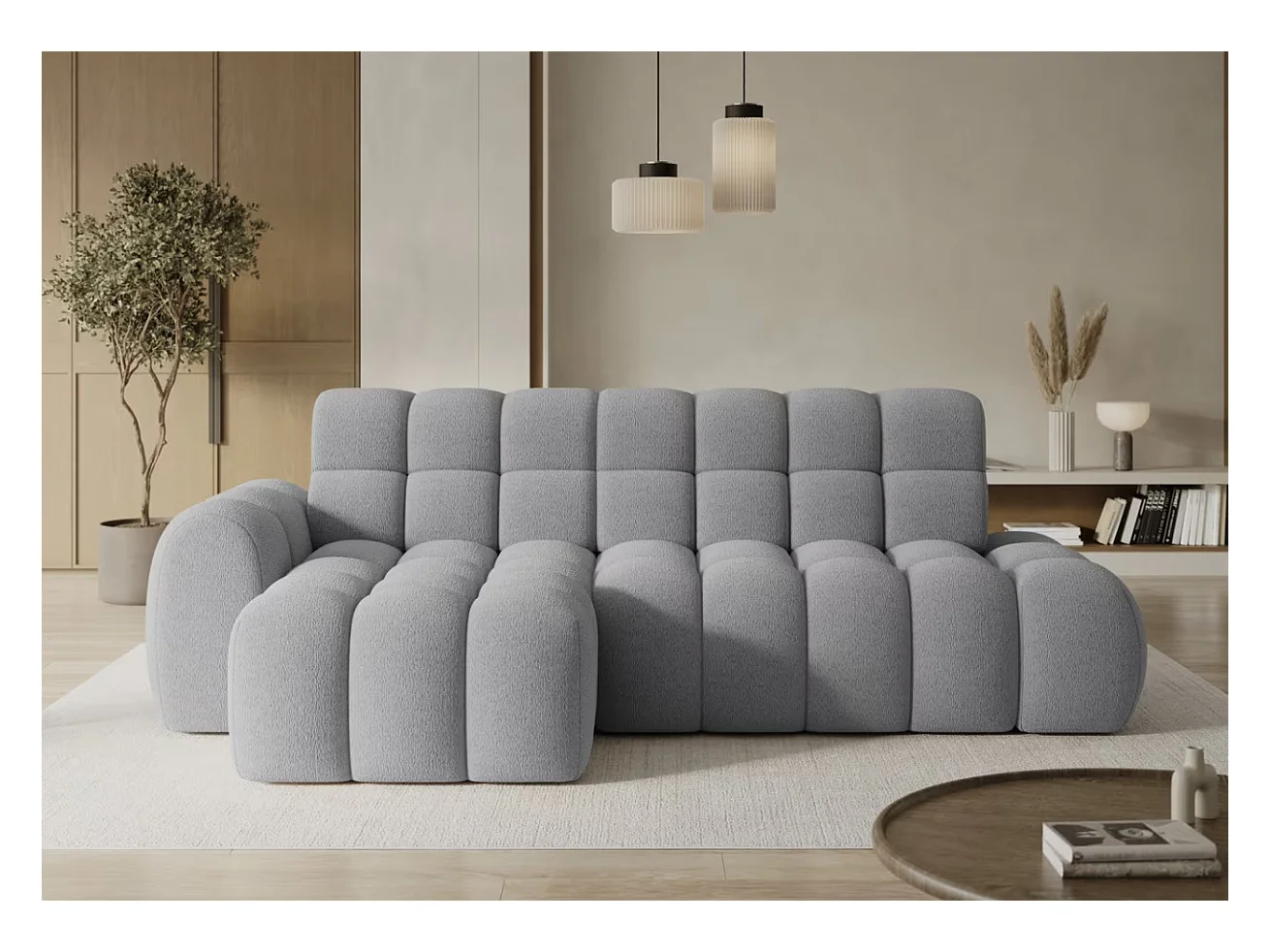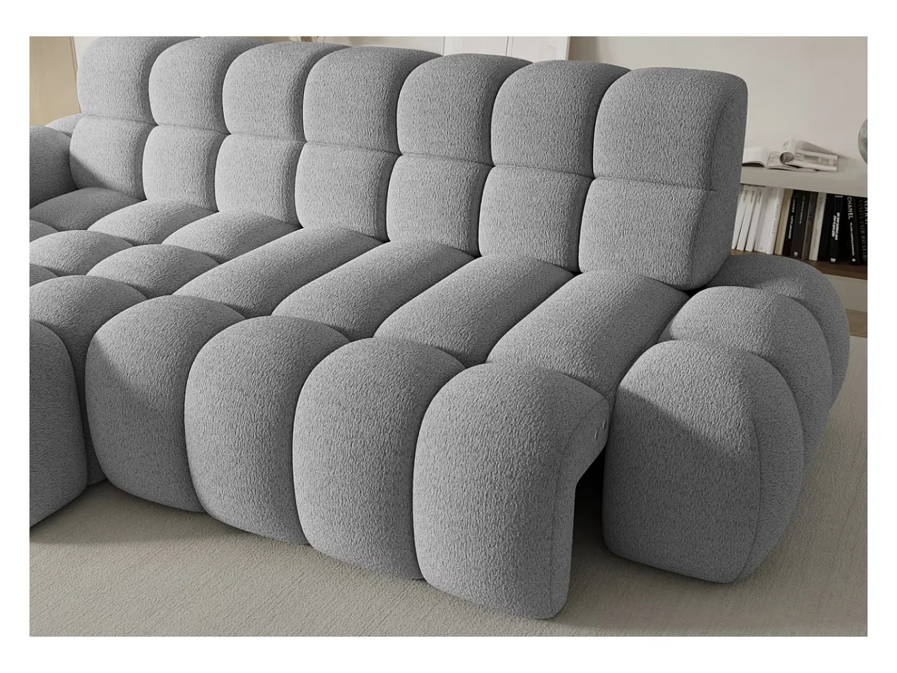 Canapé d’angle convertible tissu KINDO – Avec assise électrique-Gris clair-angle gauche