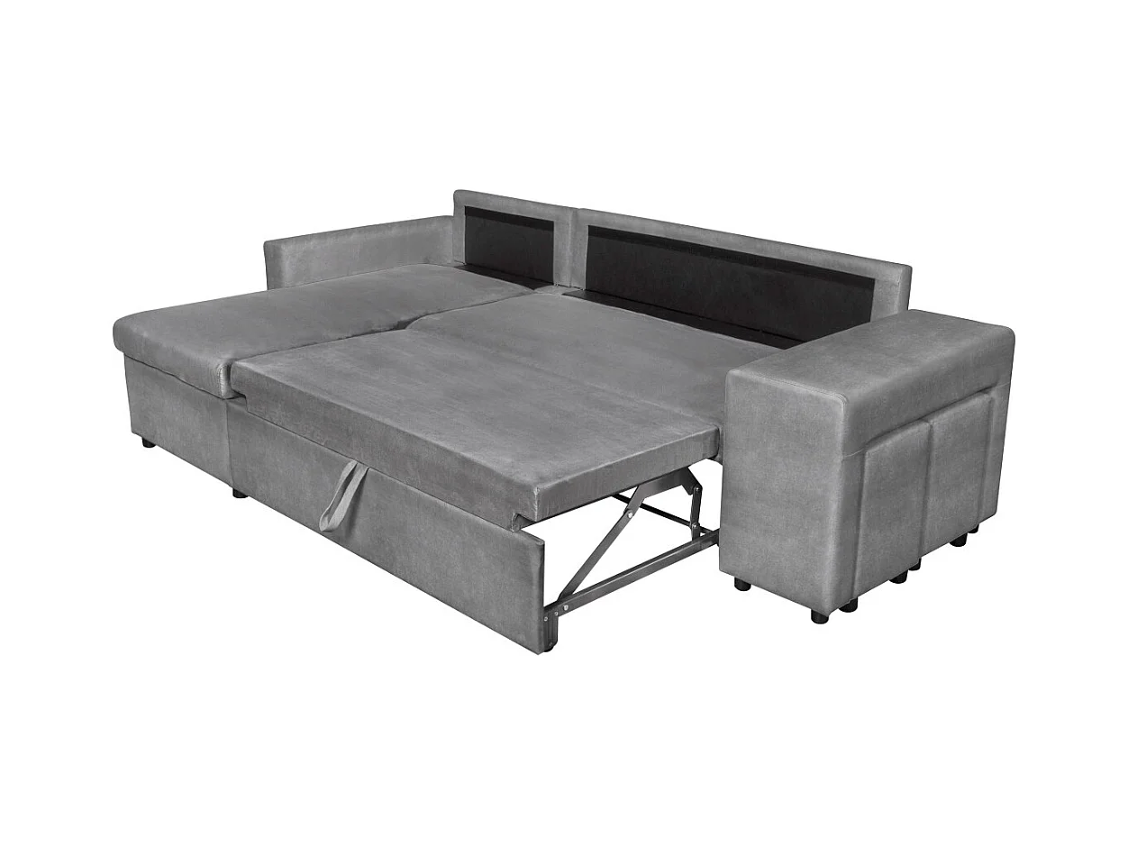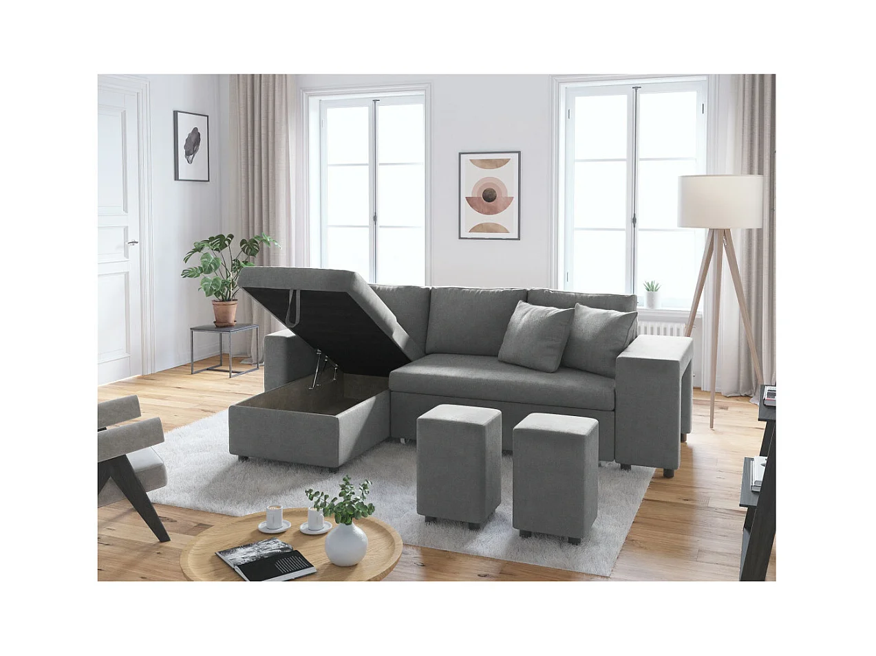 Canapé d'angle 3 places réversible Oslo avec coffre et poufs droit en microfibre - Gris - L241 x P146 x H81cm - Loungitude