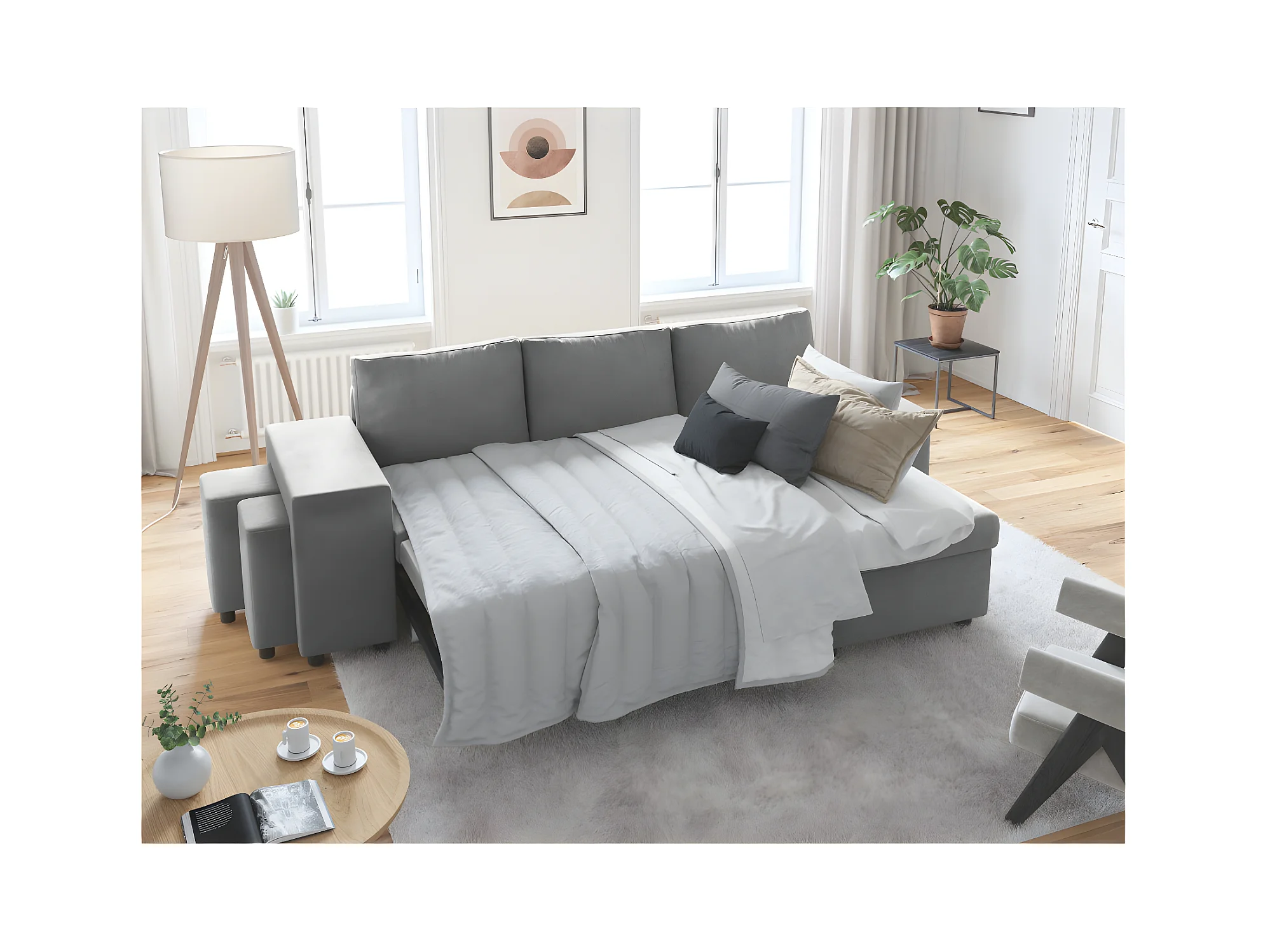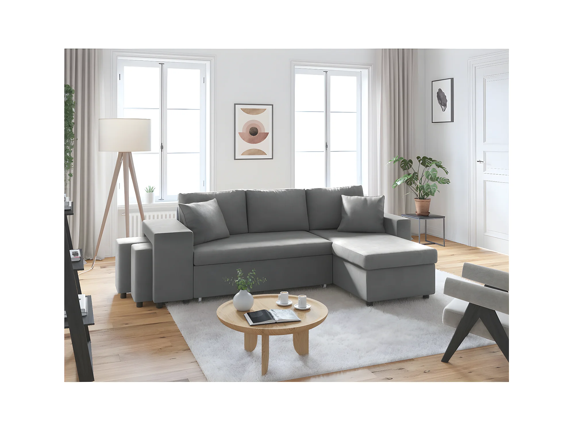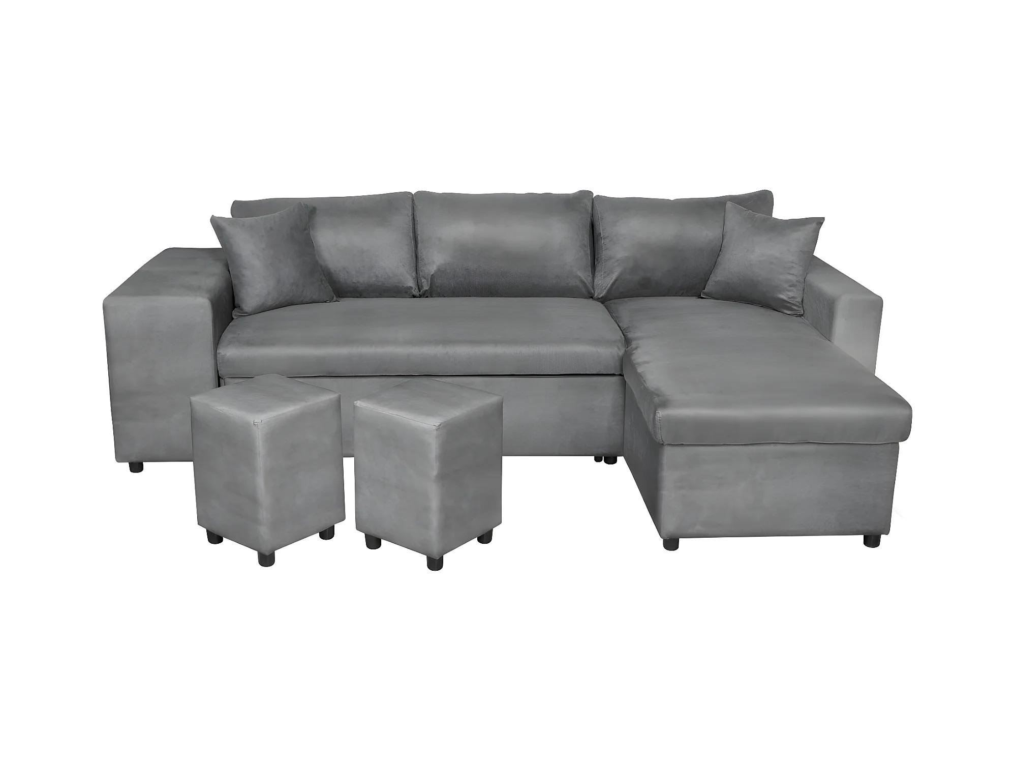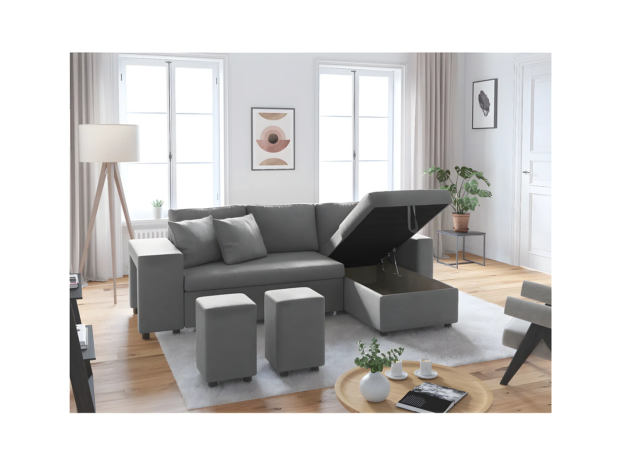 Canapé d'angle 3 places réversible Oslo avec coffre et poufs gauche en microfibre - Gris - L241 x P146 x H81cm - Loungitude