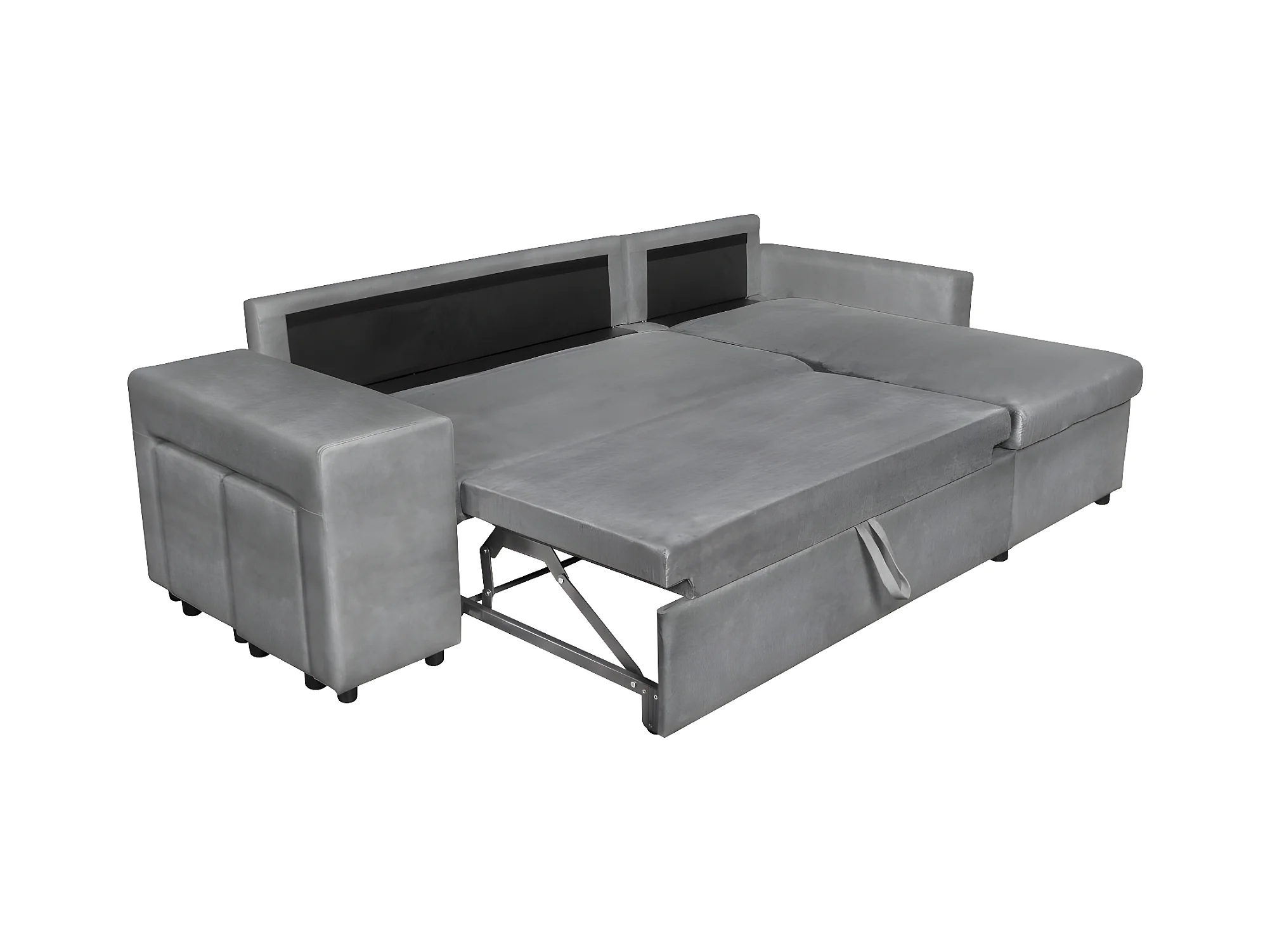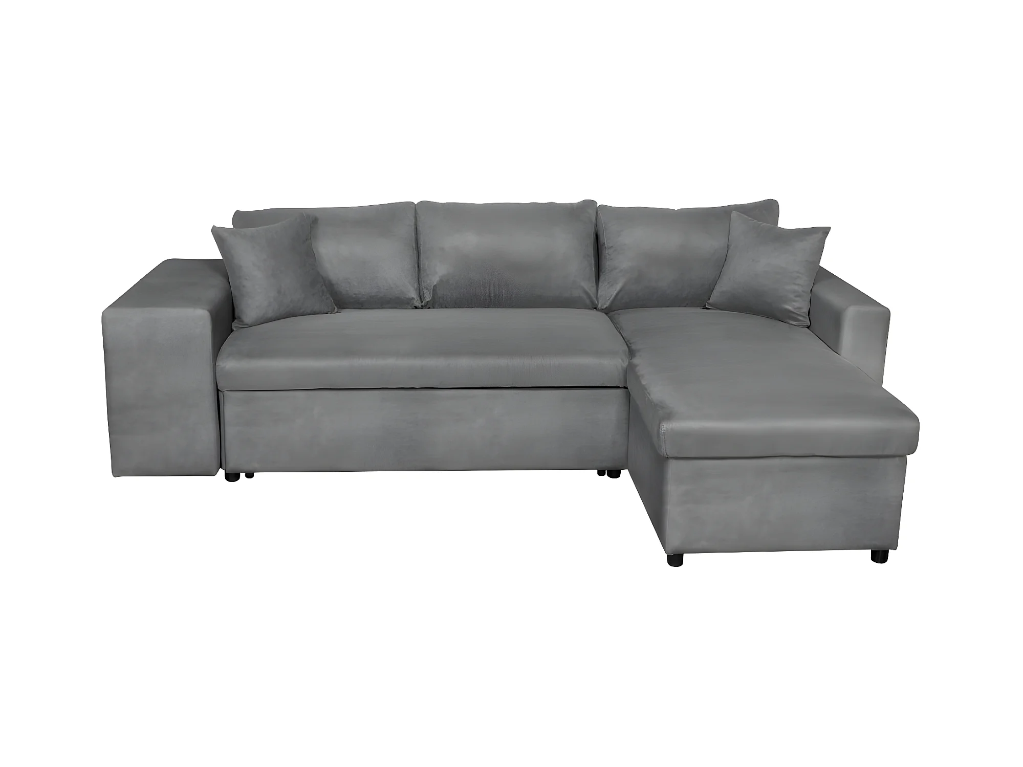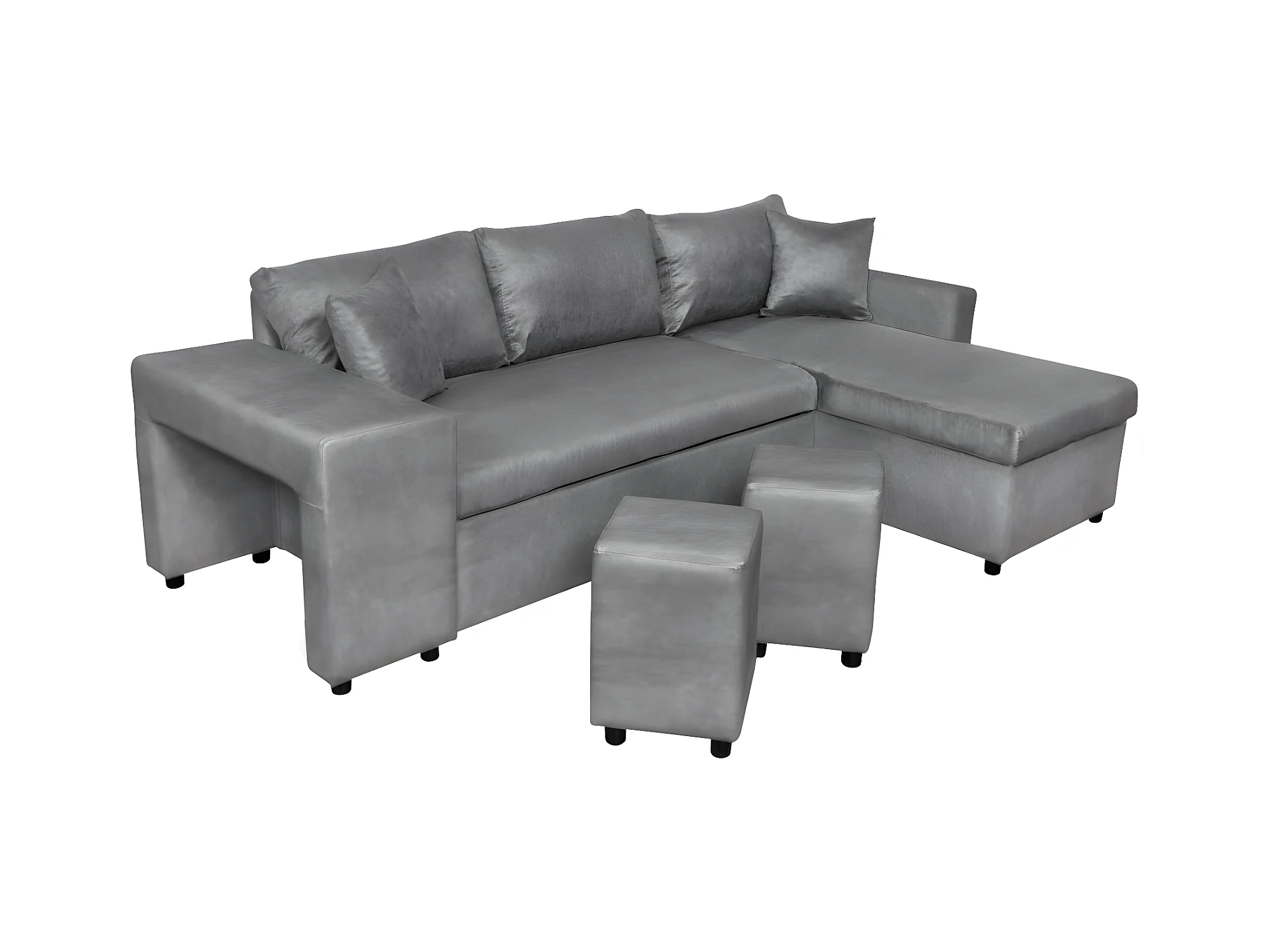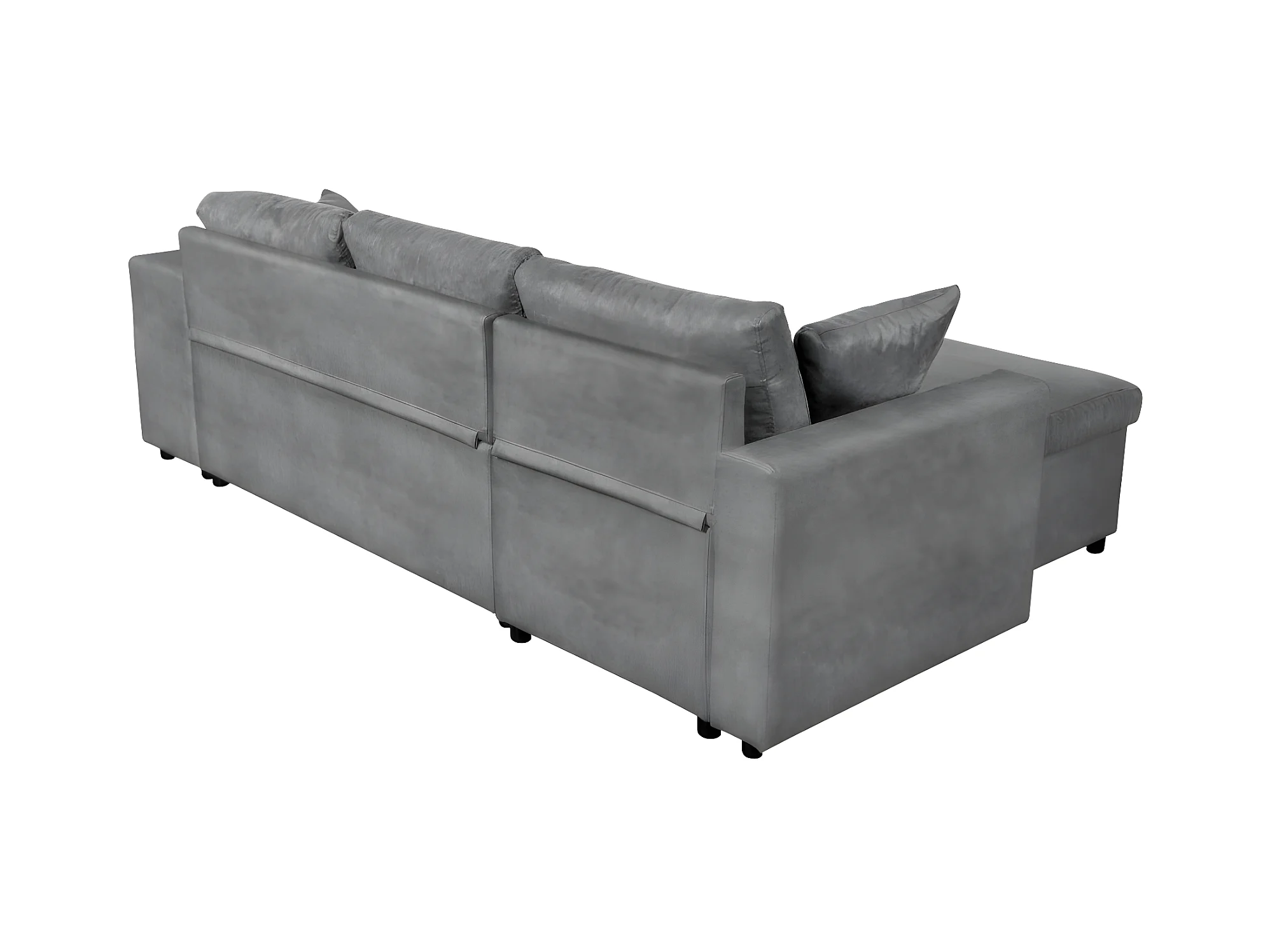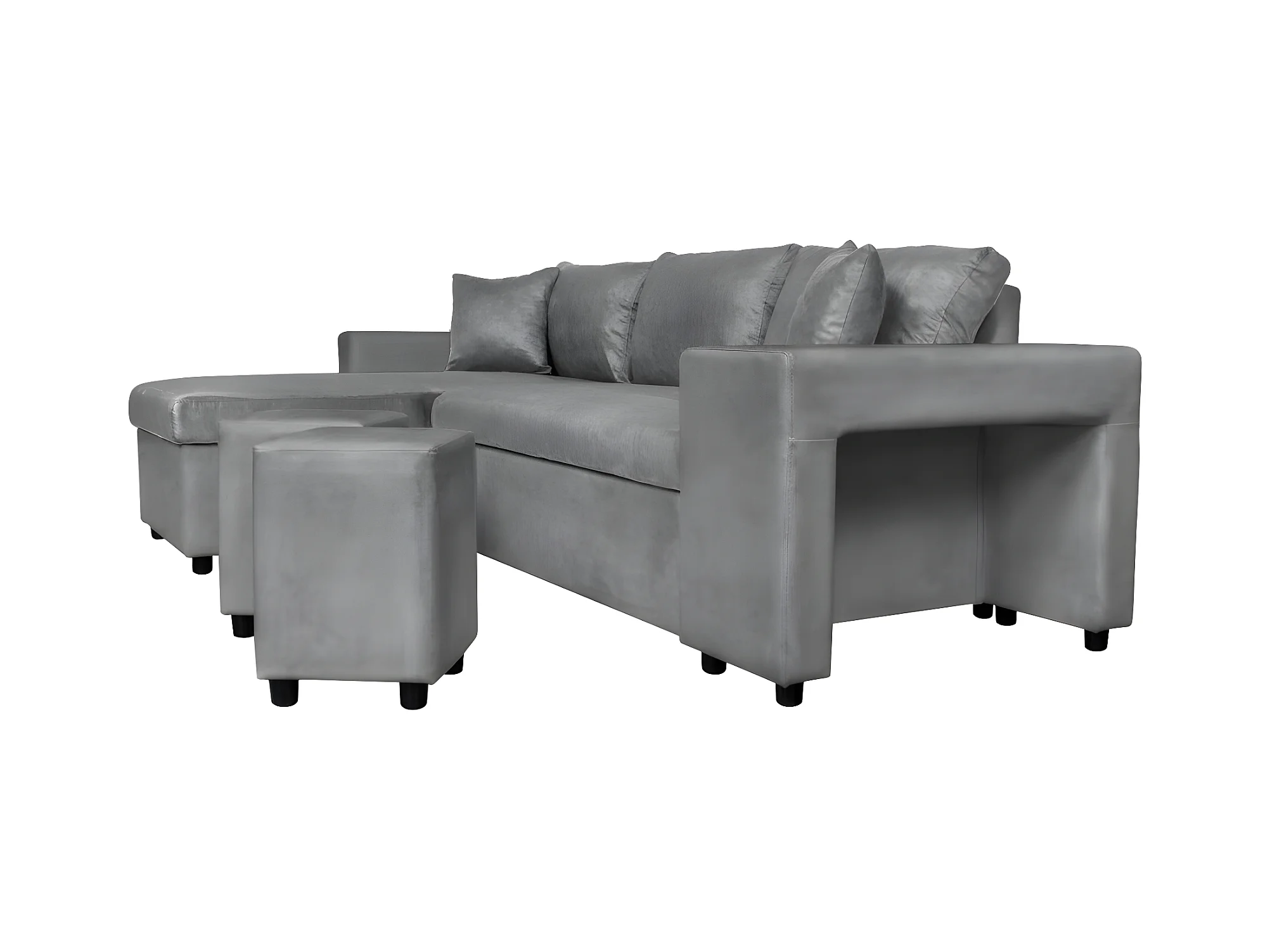 Canapé d'angle 3 places réversible Oslo avec coffre et poufs gauche en microfibre - Gris - L241 x P146 x H81cm - Loungitude
