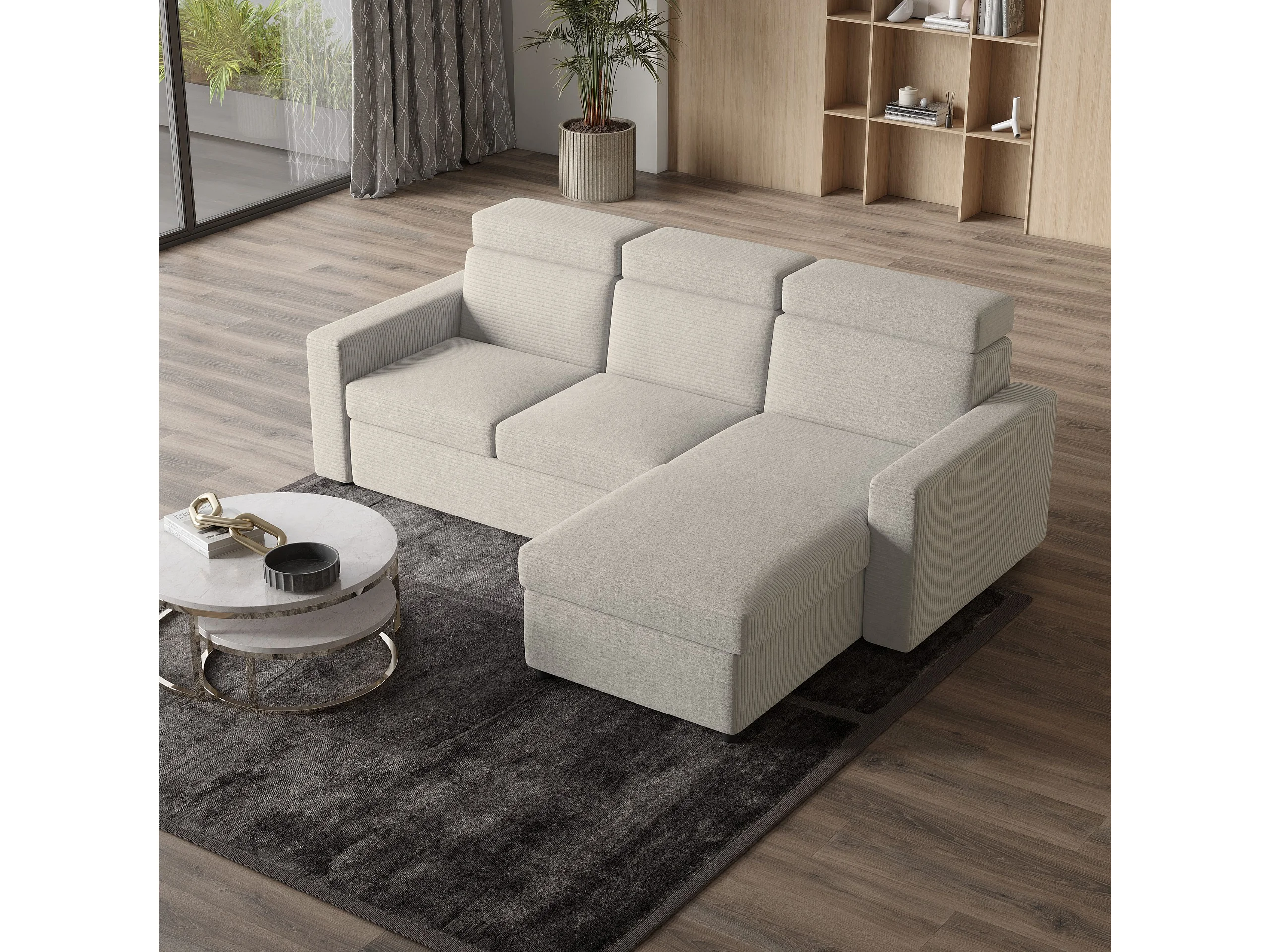 Canapé d'angle PADWA Crème en velours côtelé avec fonction de couchage