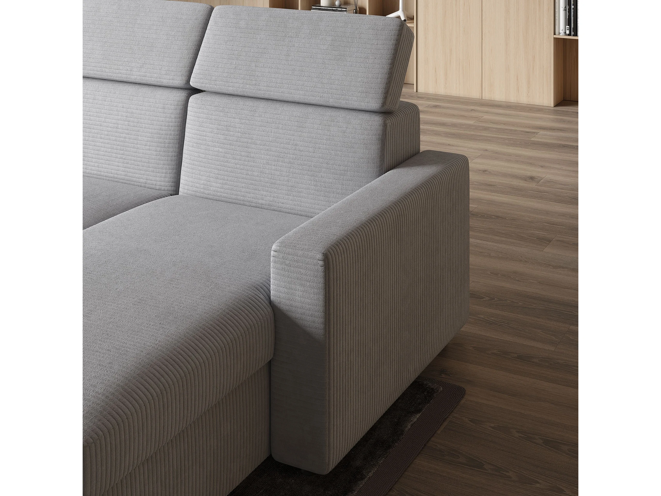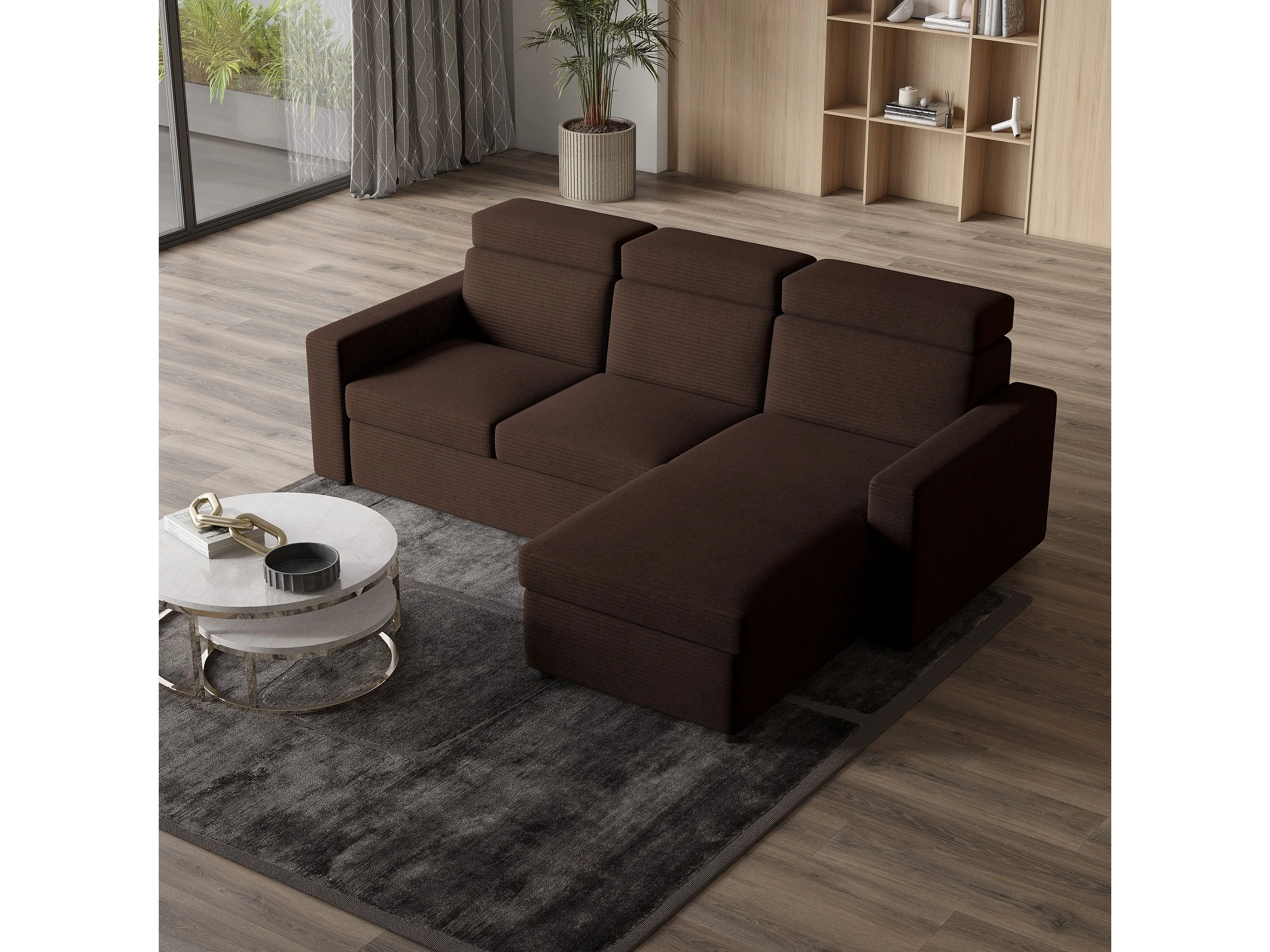 Canapé d'angle PADWA Marron en velours côtelé avec fonction de couchage