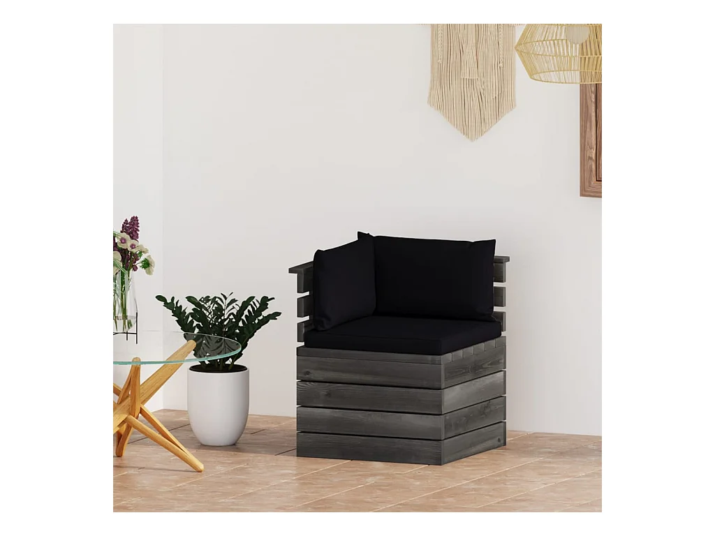 Canapé d'angle palette de jardin avec coussins Bois de pin