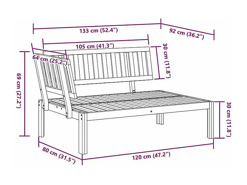 Canapé d'angle palette de jardin bois massif d'acacia