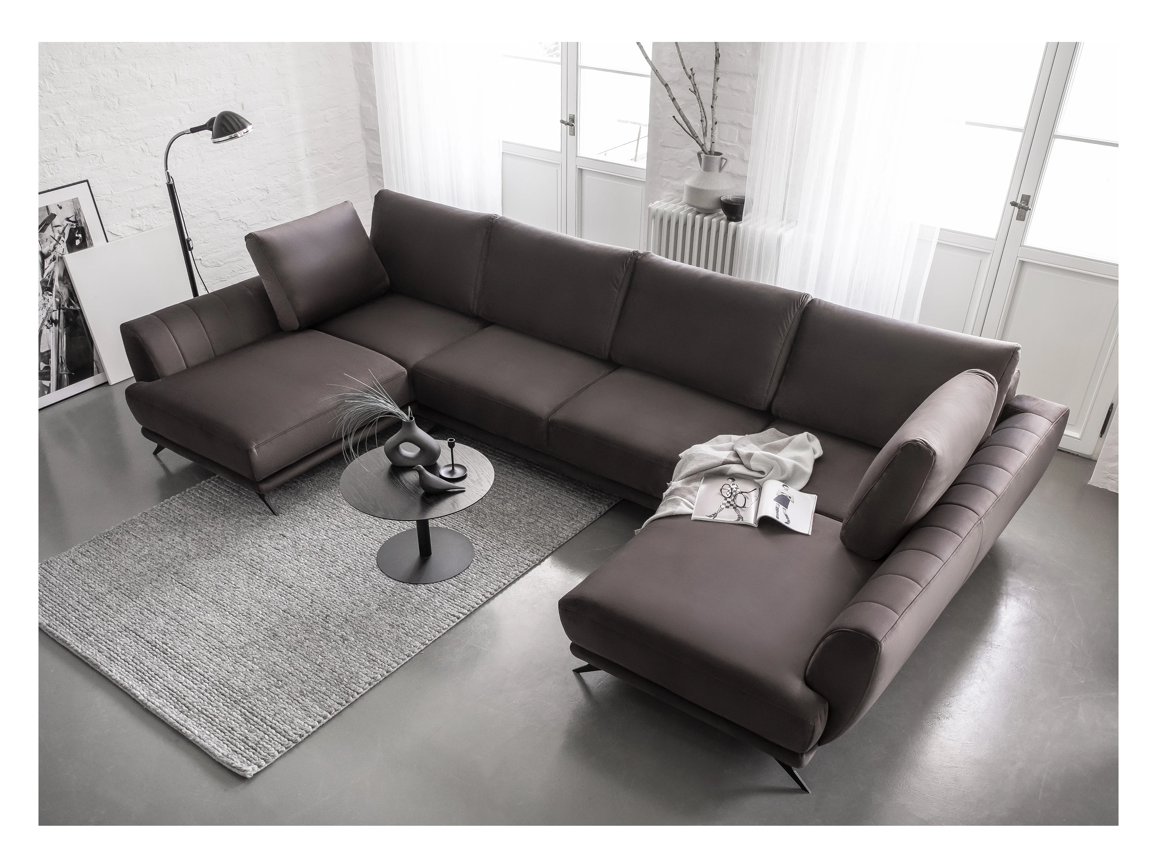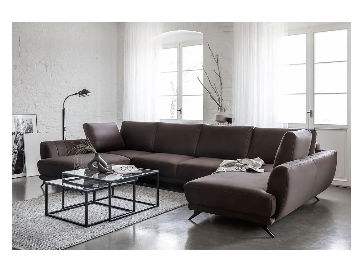 Canapé d'angle panoramique 6 places tissu beige clair Largos 362cm