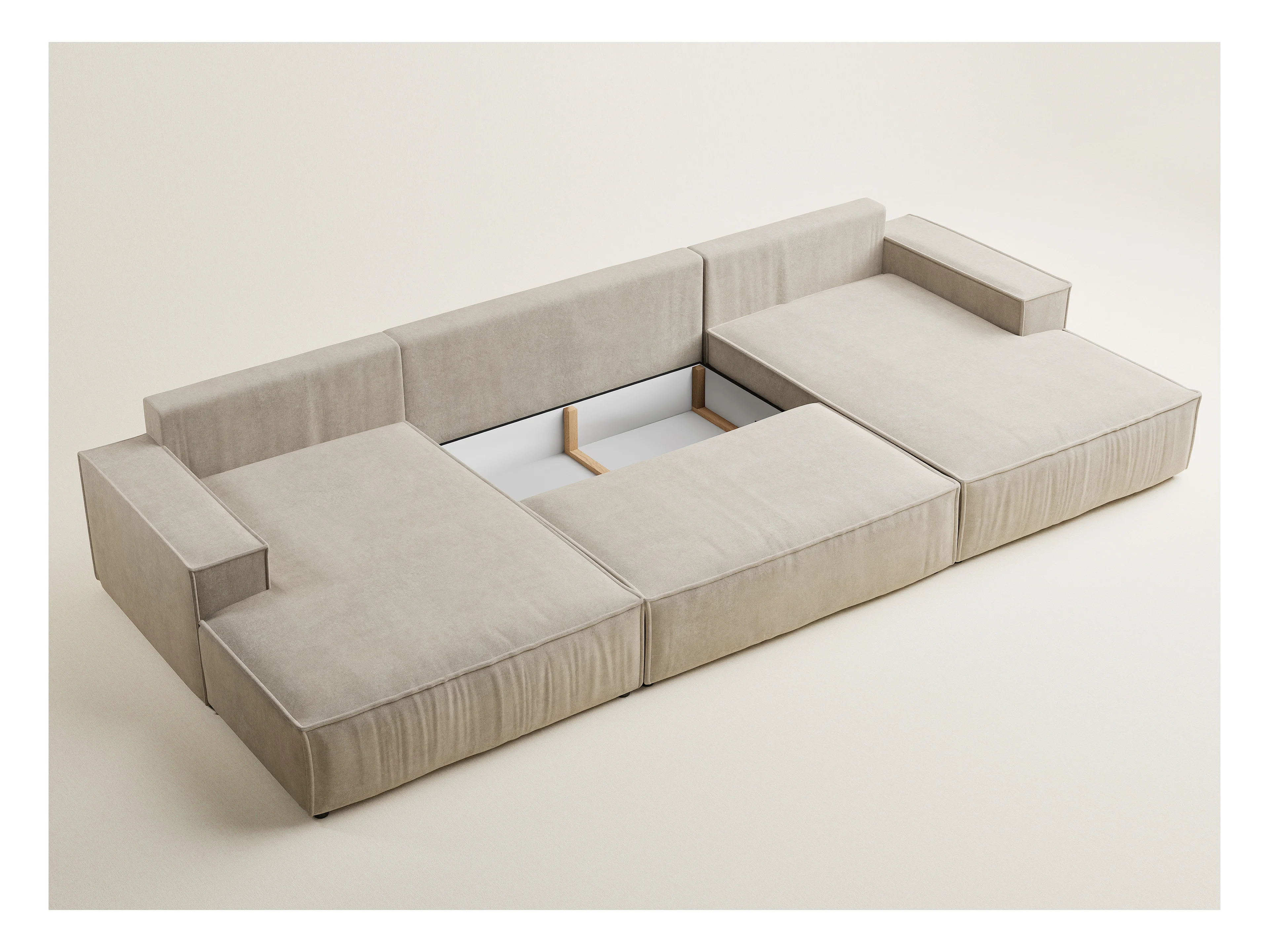 Canapé d'angle panoramique avec fonction lit en tissu chenille beige KYOTO