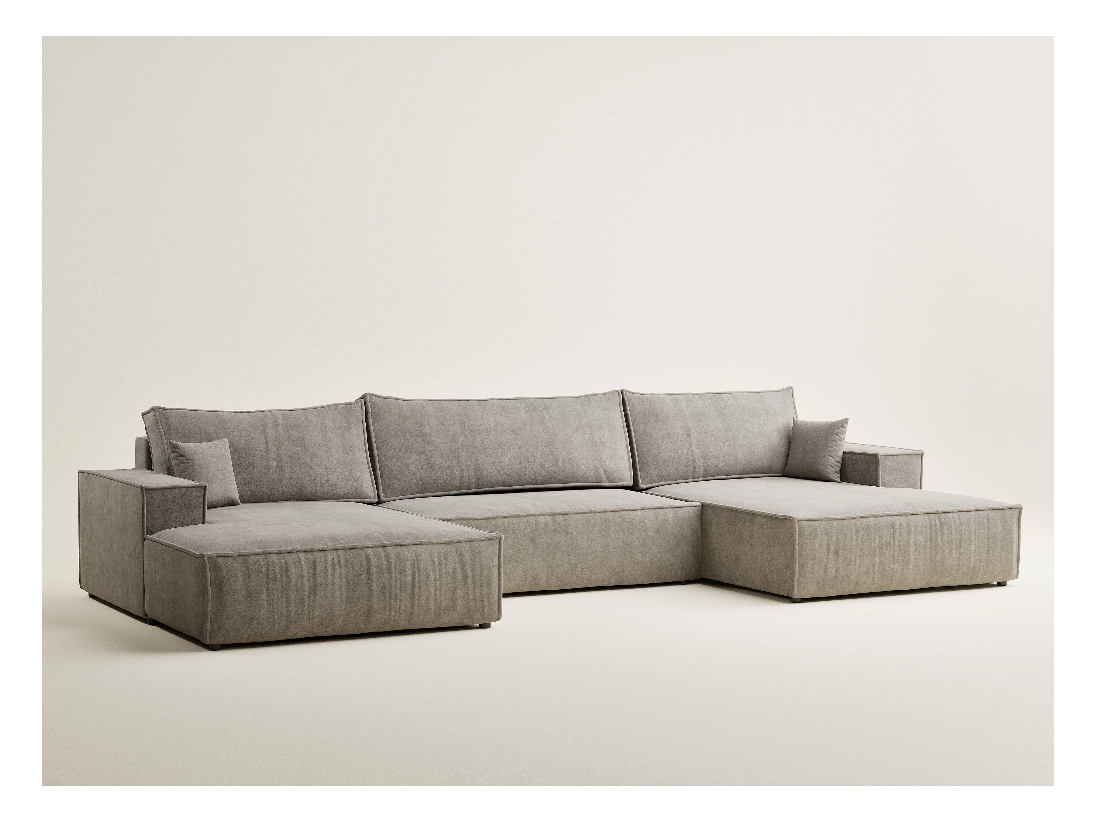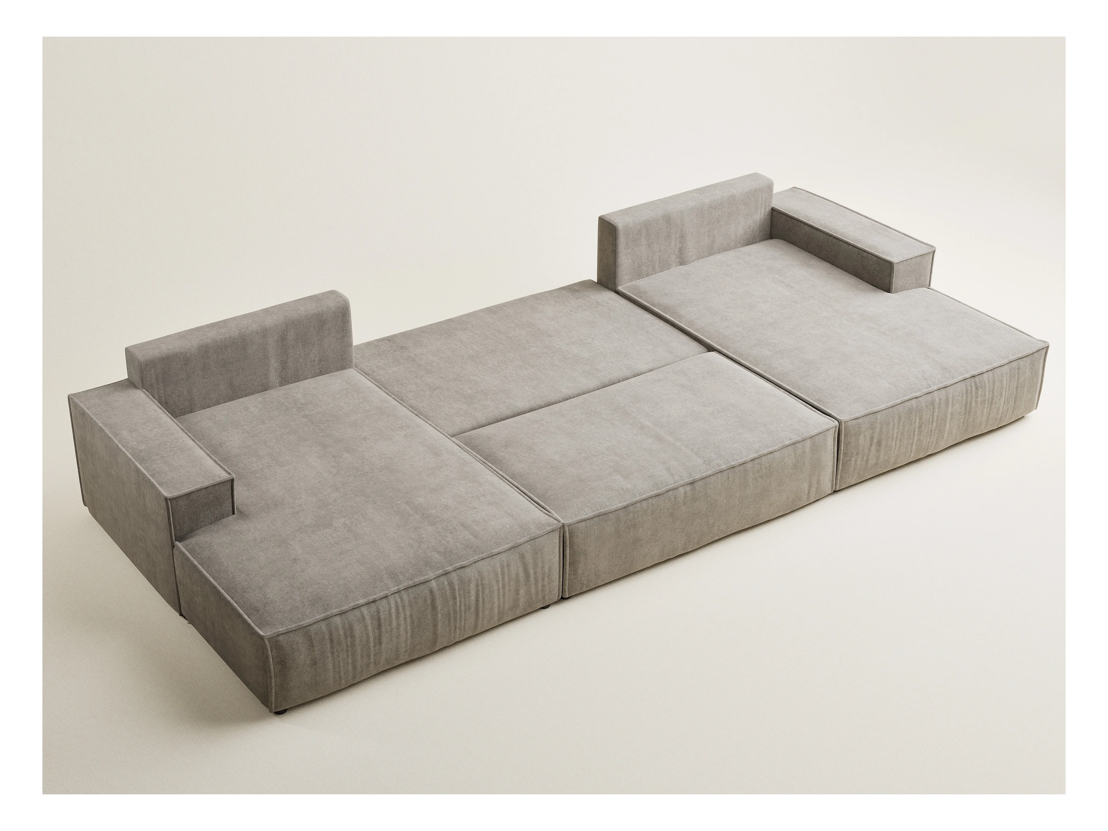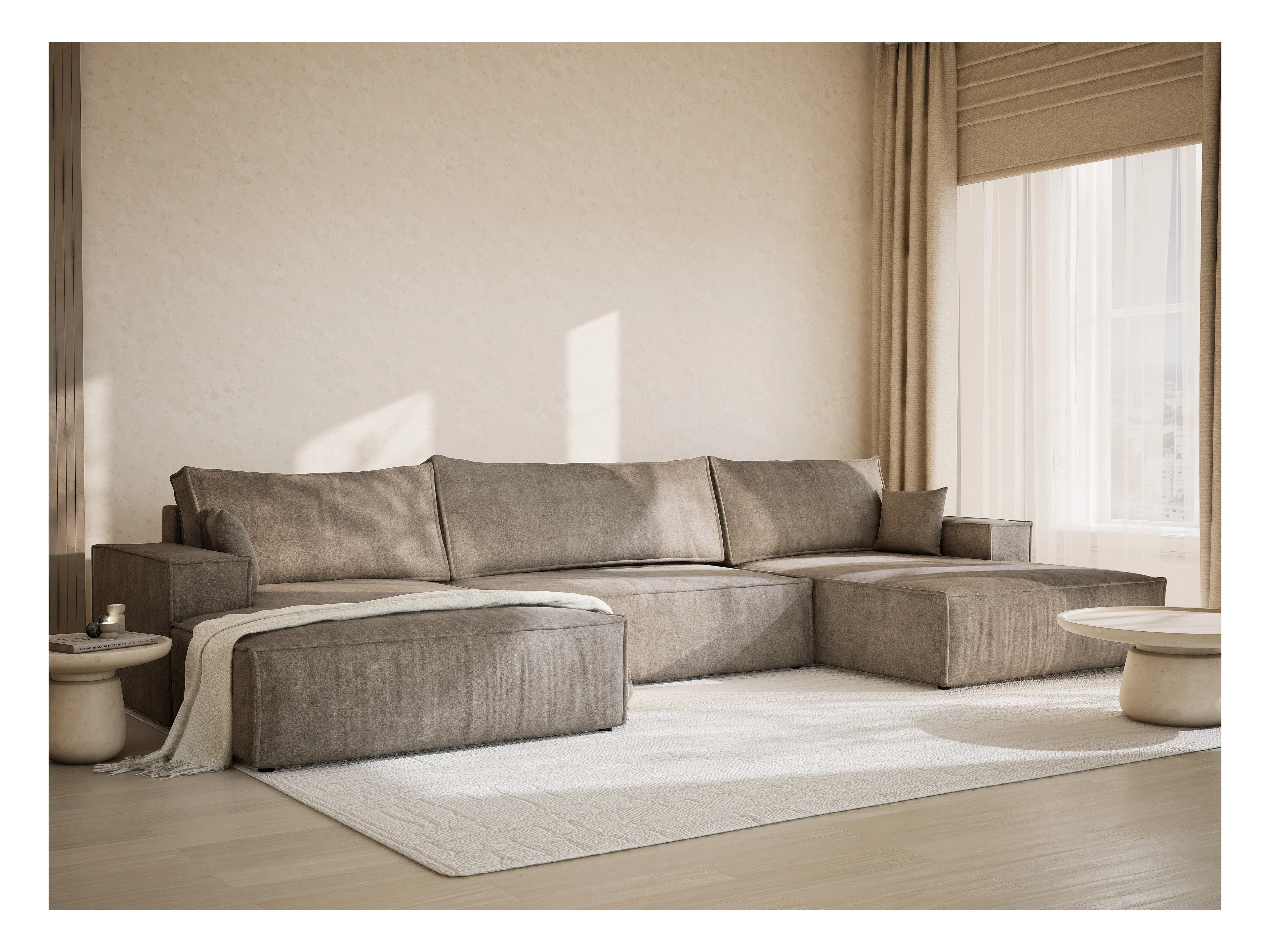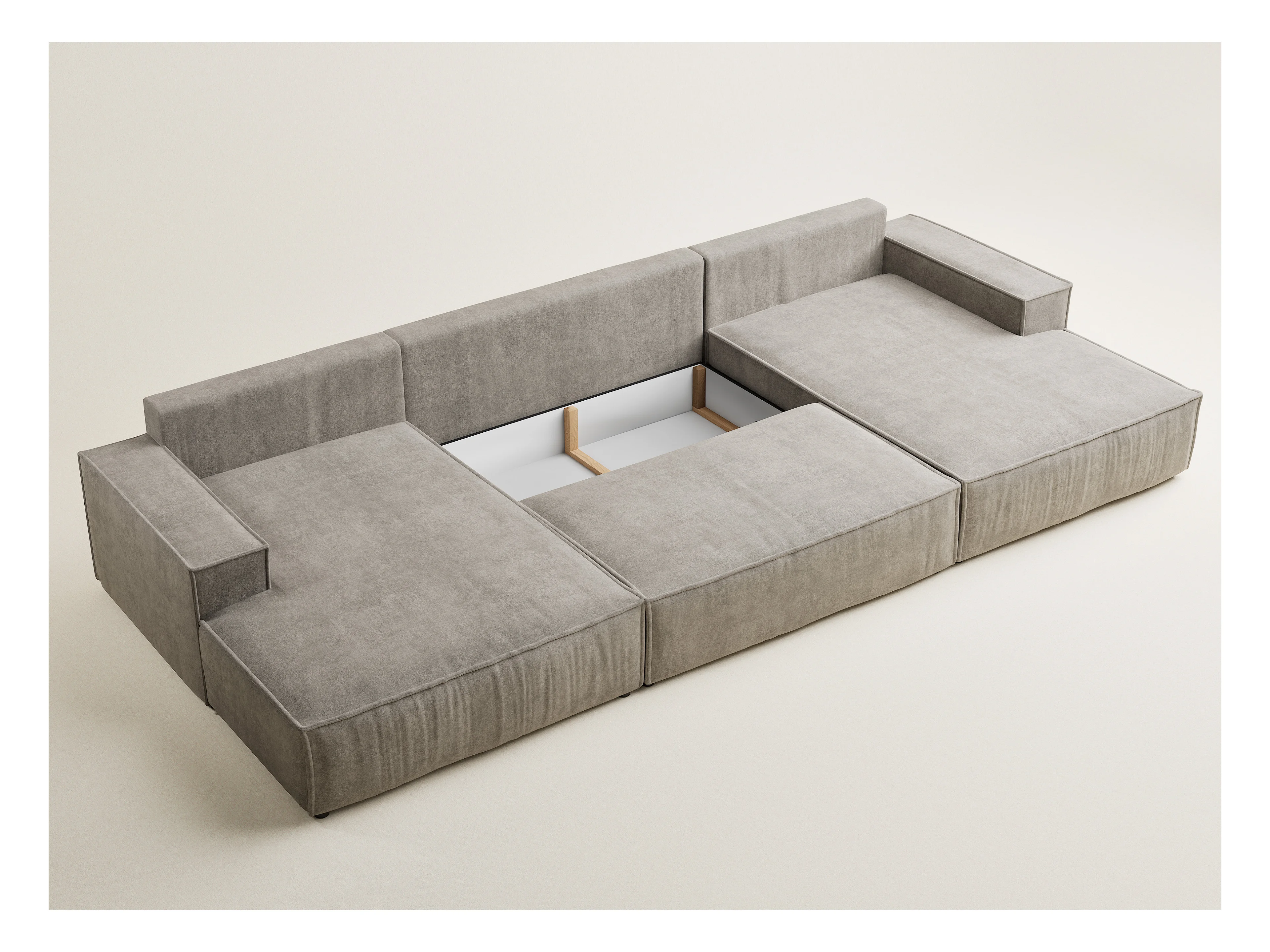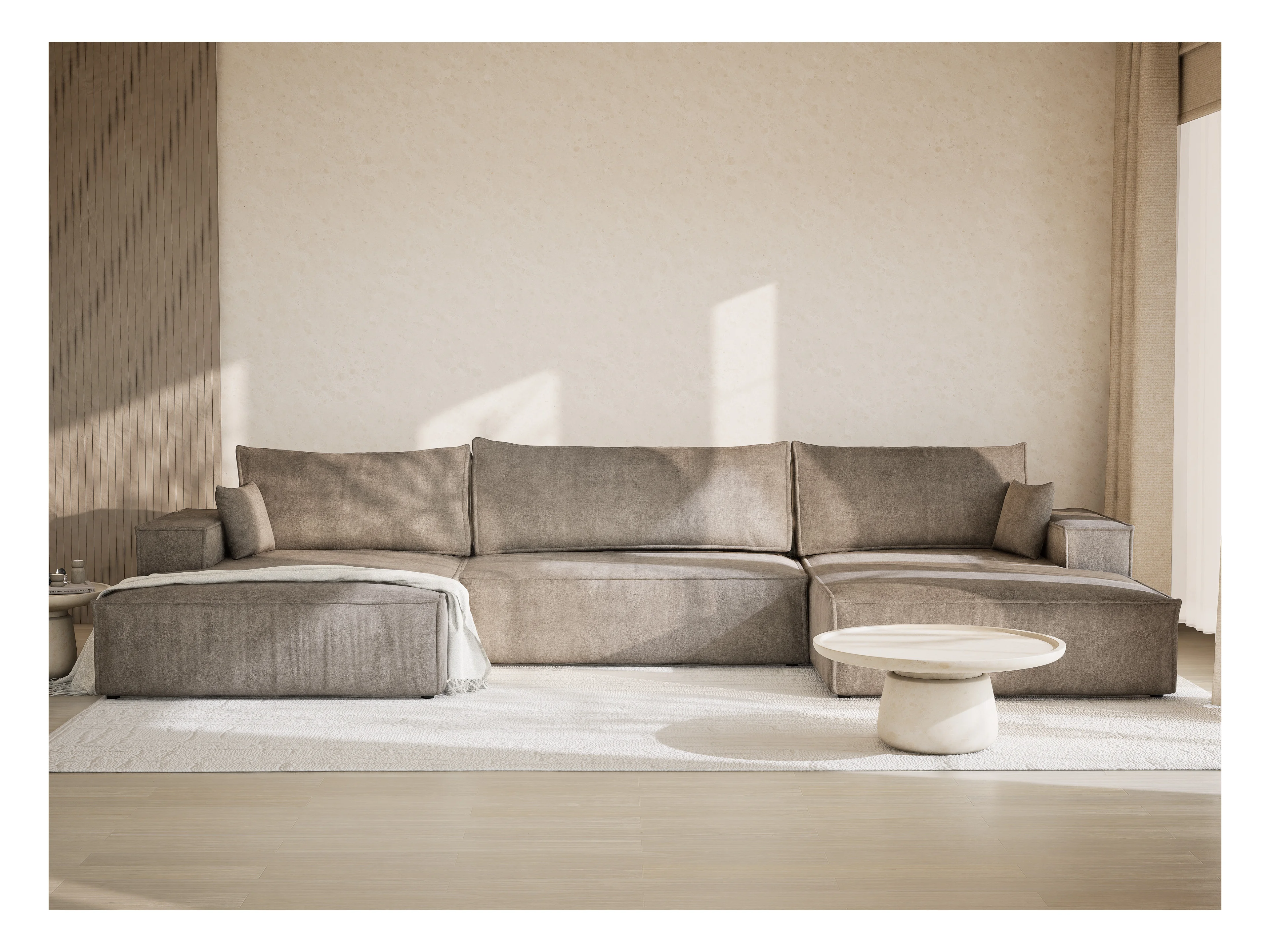 Canapé d'angle panoramique avec fonction lit en tissu chenille taupe KYOTO