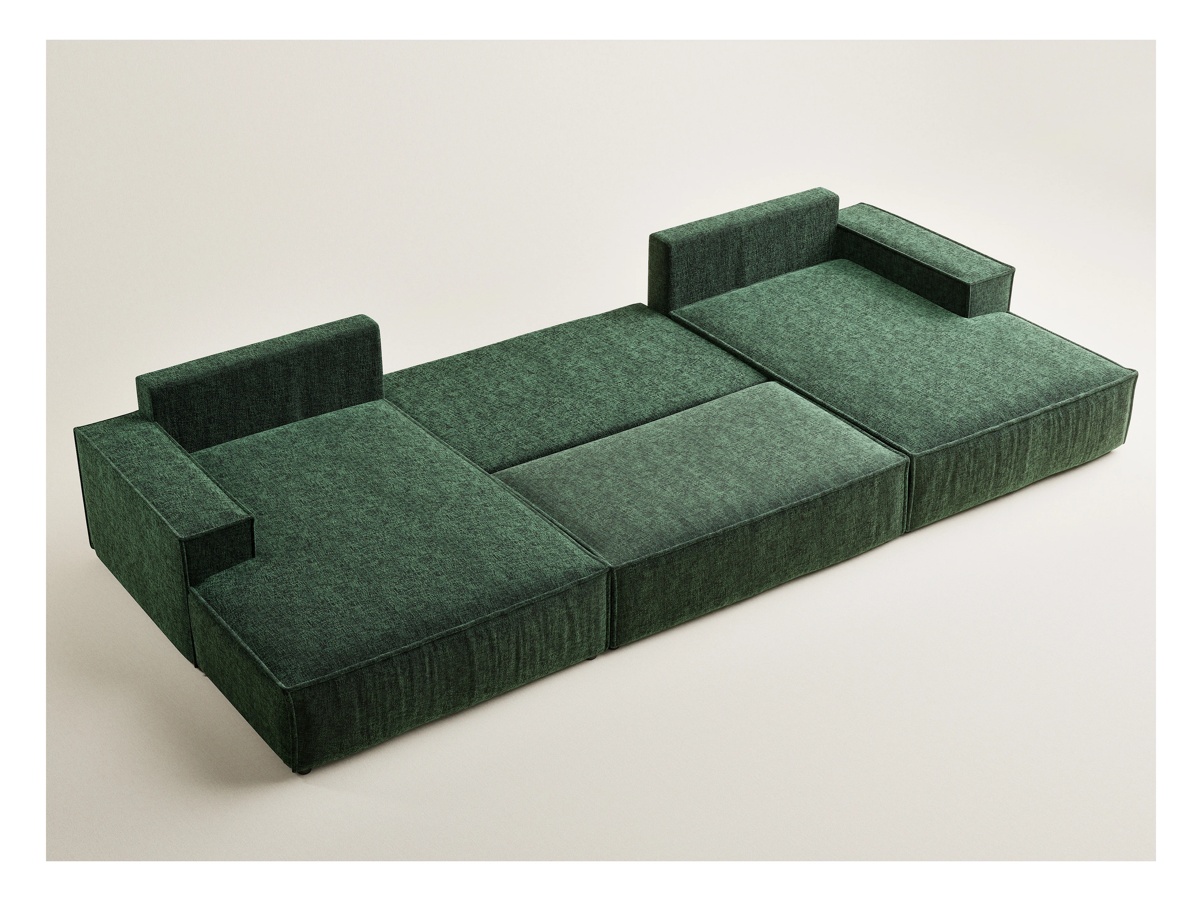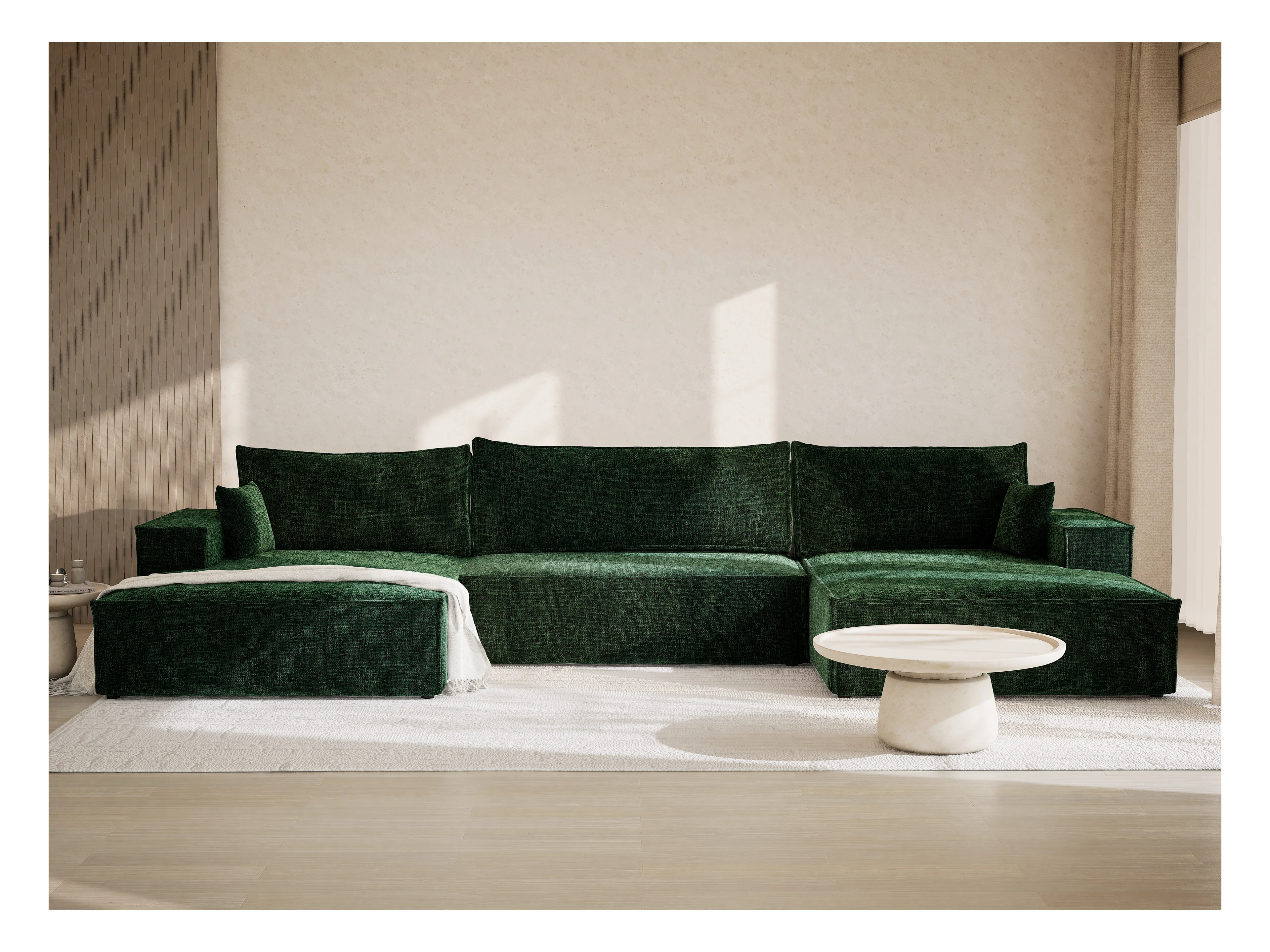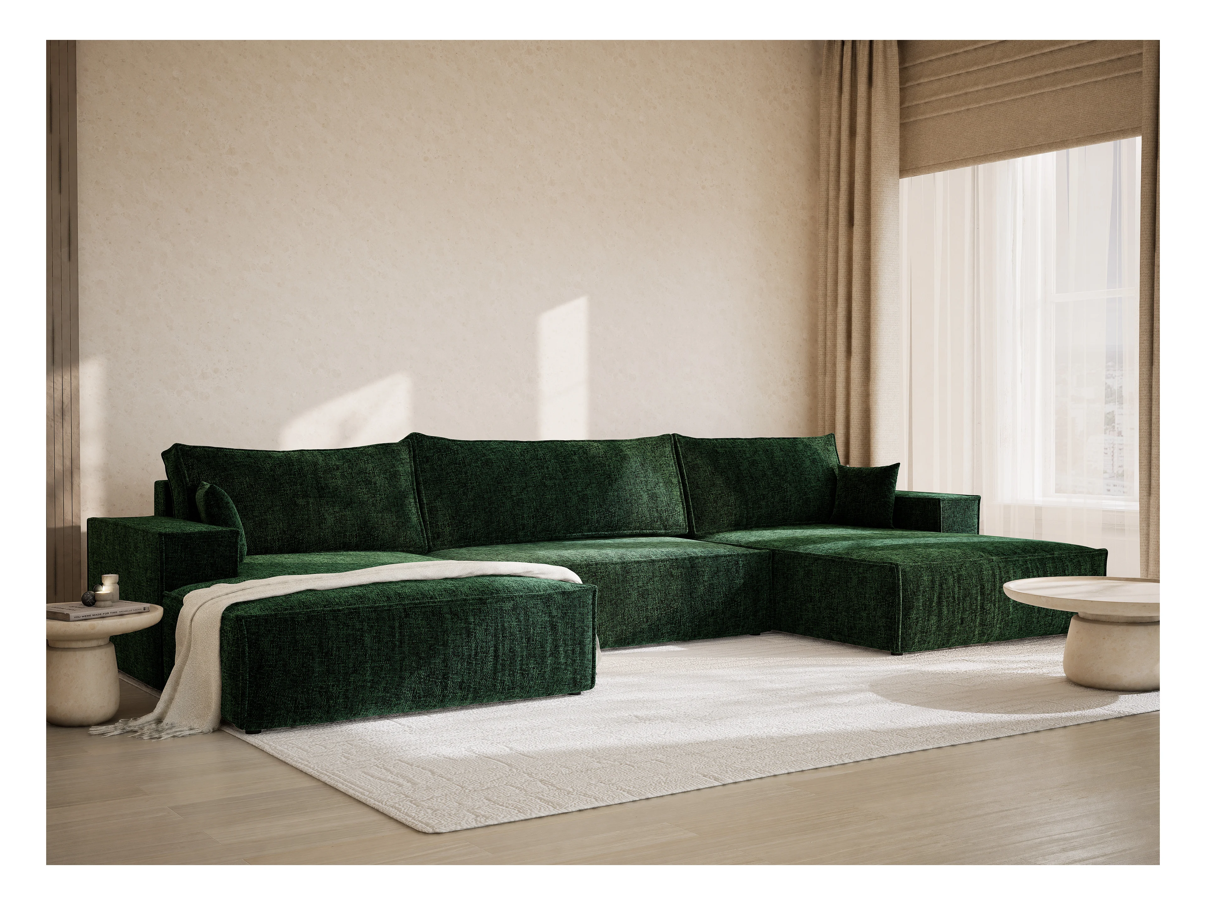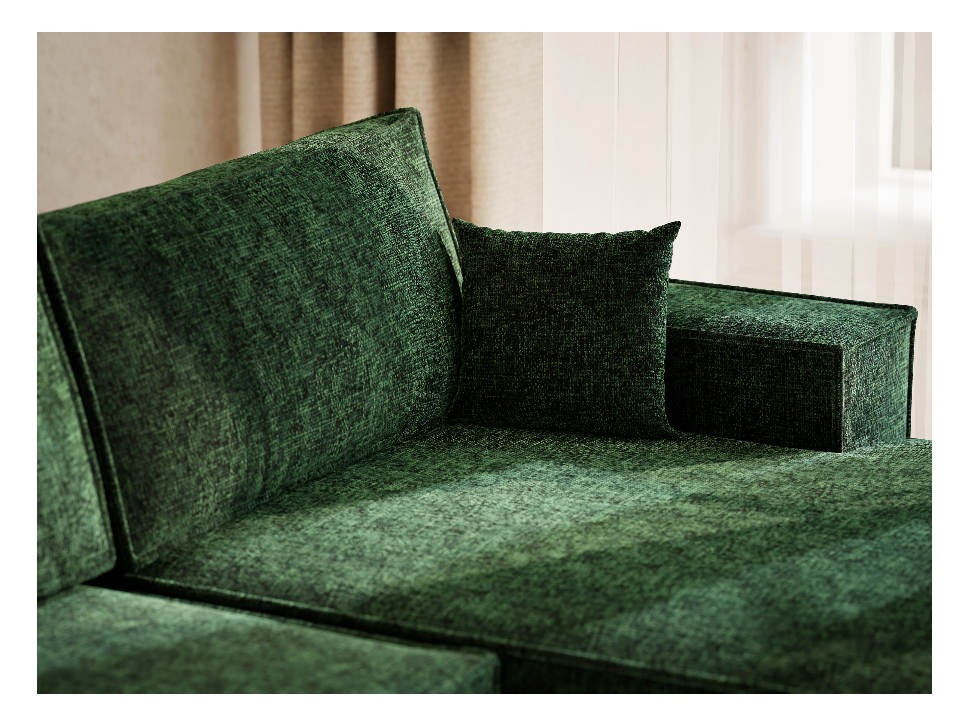 Canapé d'angle panoramique avec fonction lit en tissu chenille vert foncé KYOTO