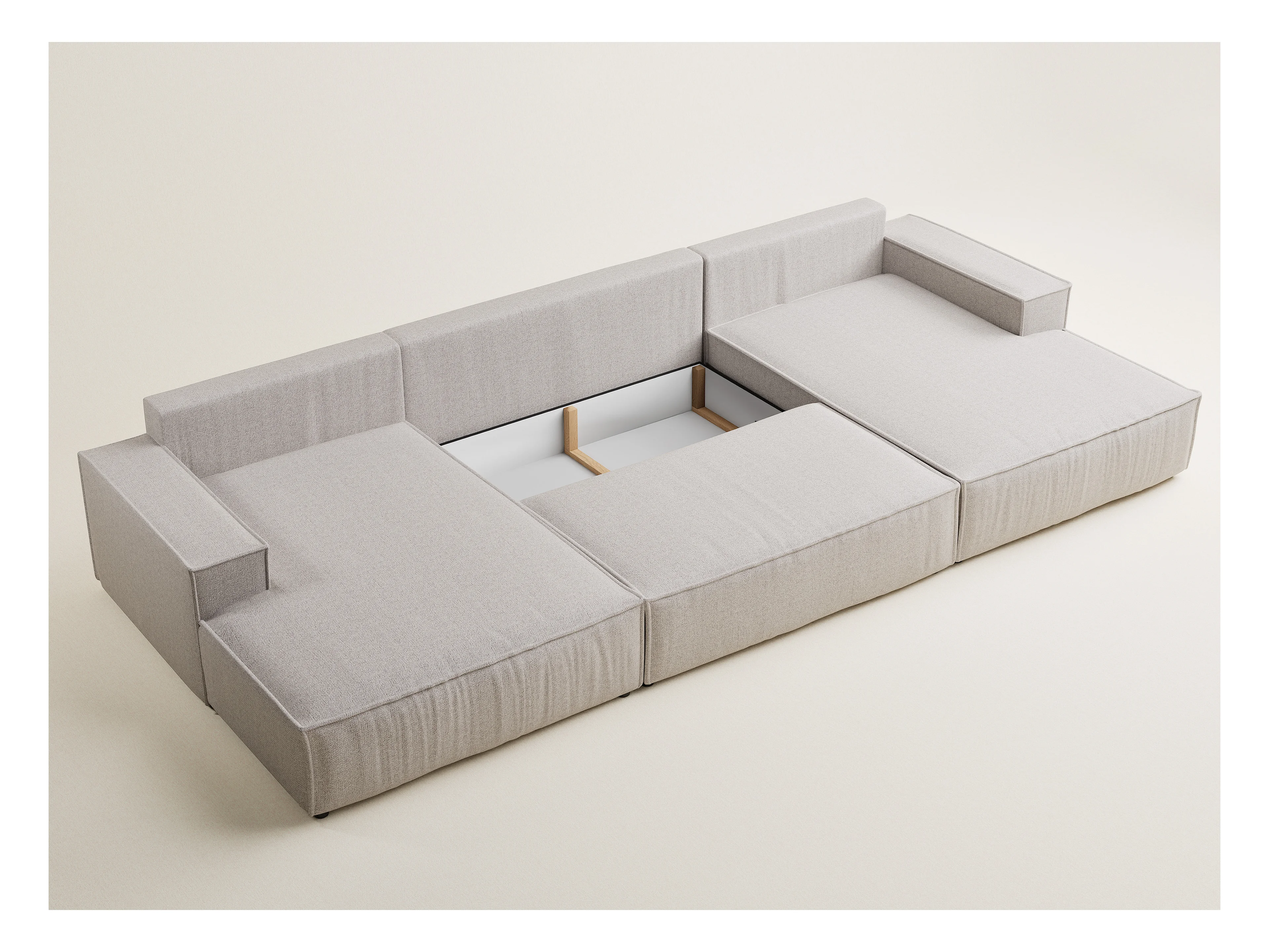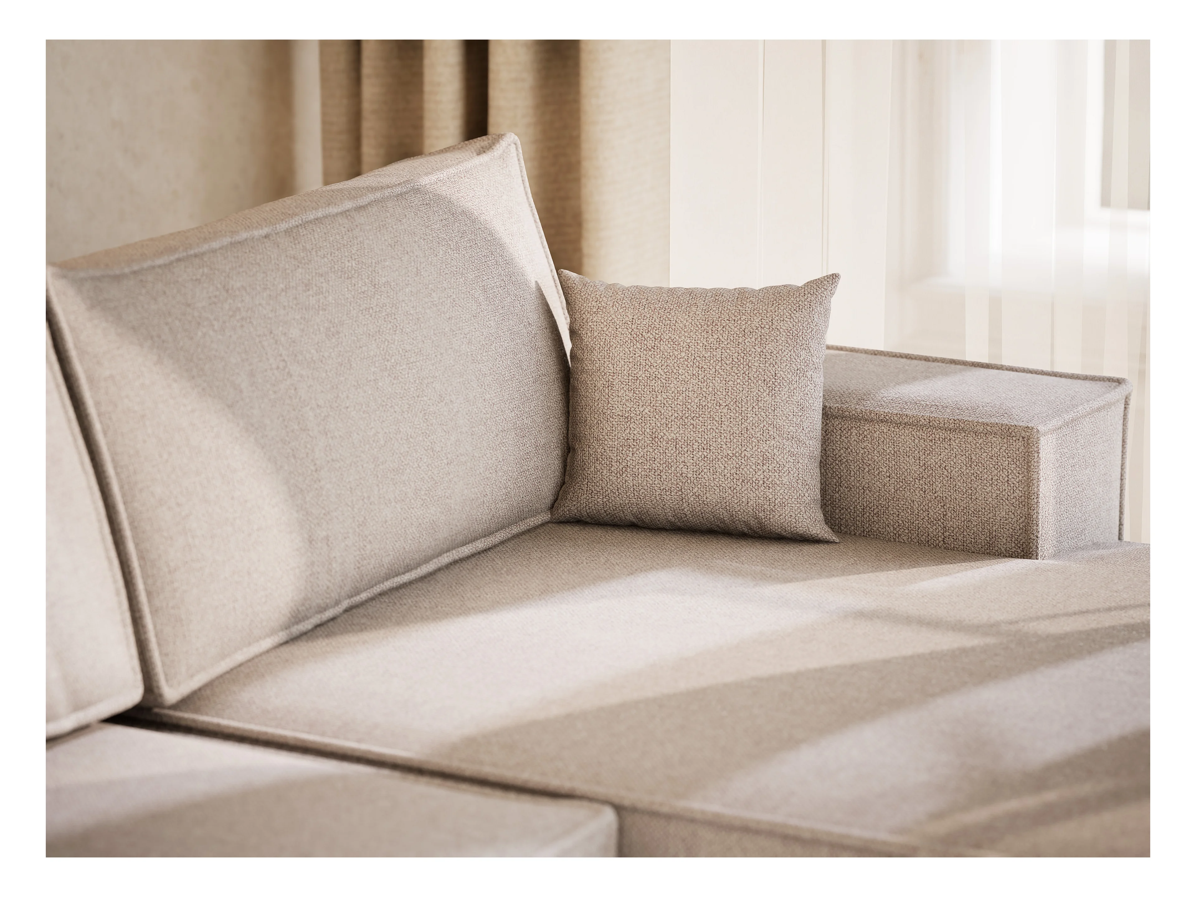 Canapé d'angle panoramique avec fonction lit en tissu tressé beige KYOTO