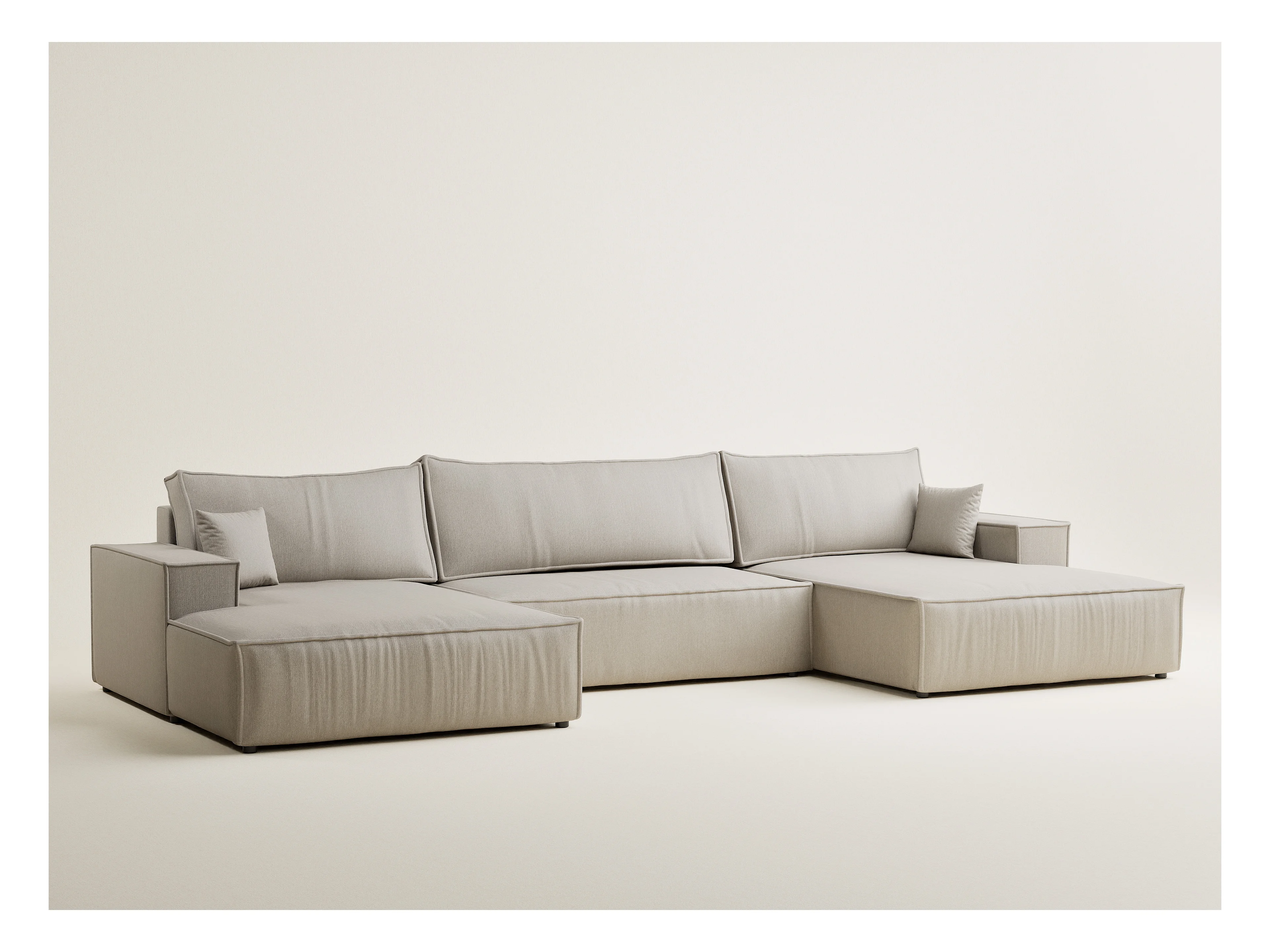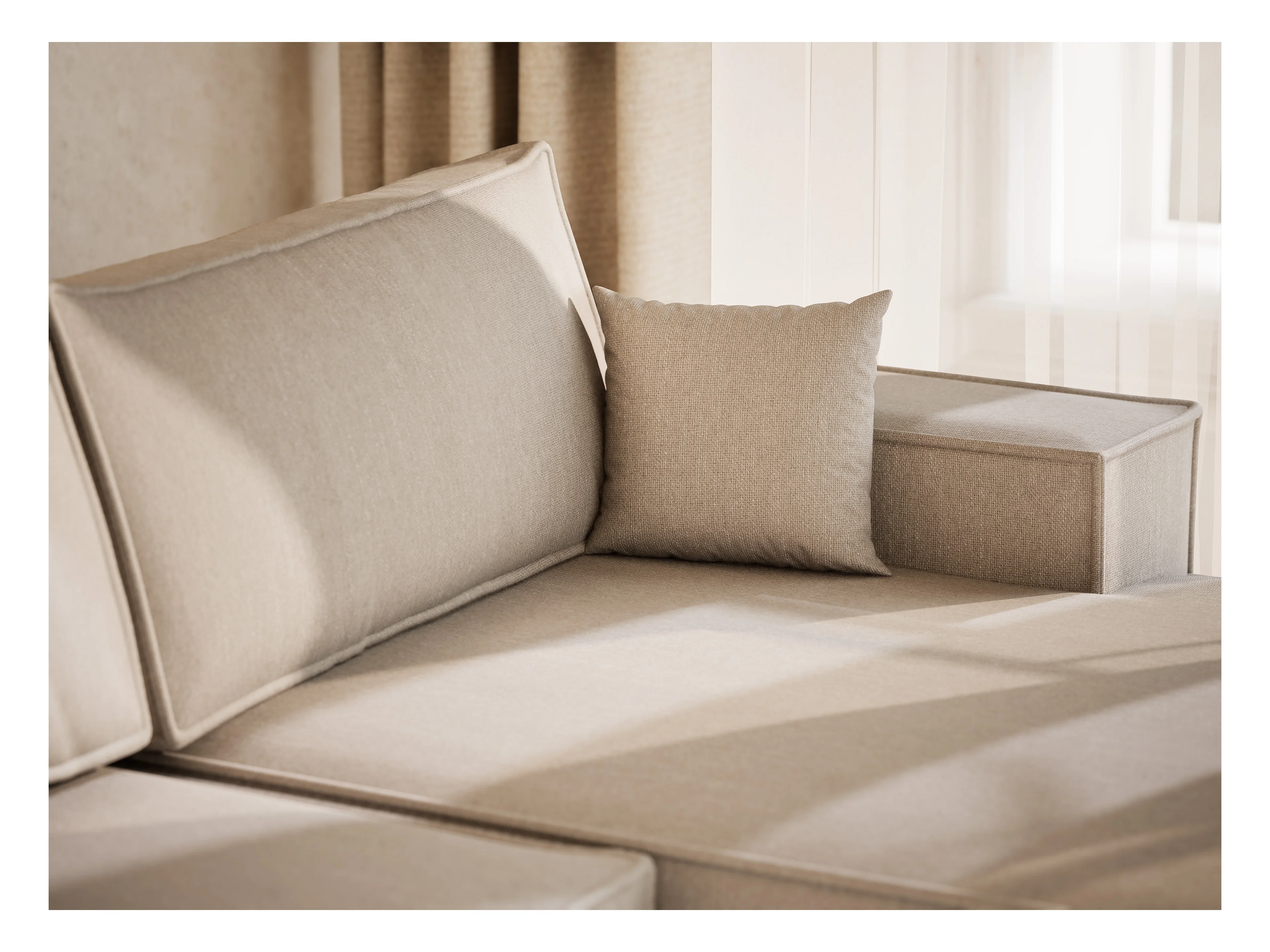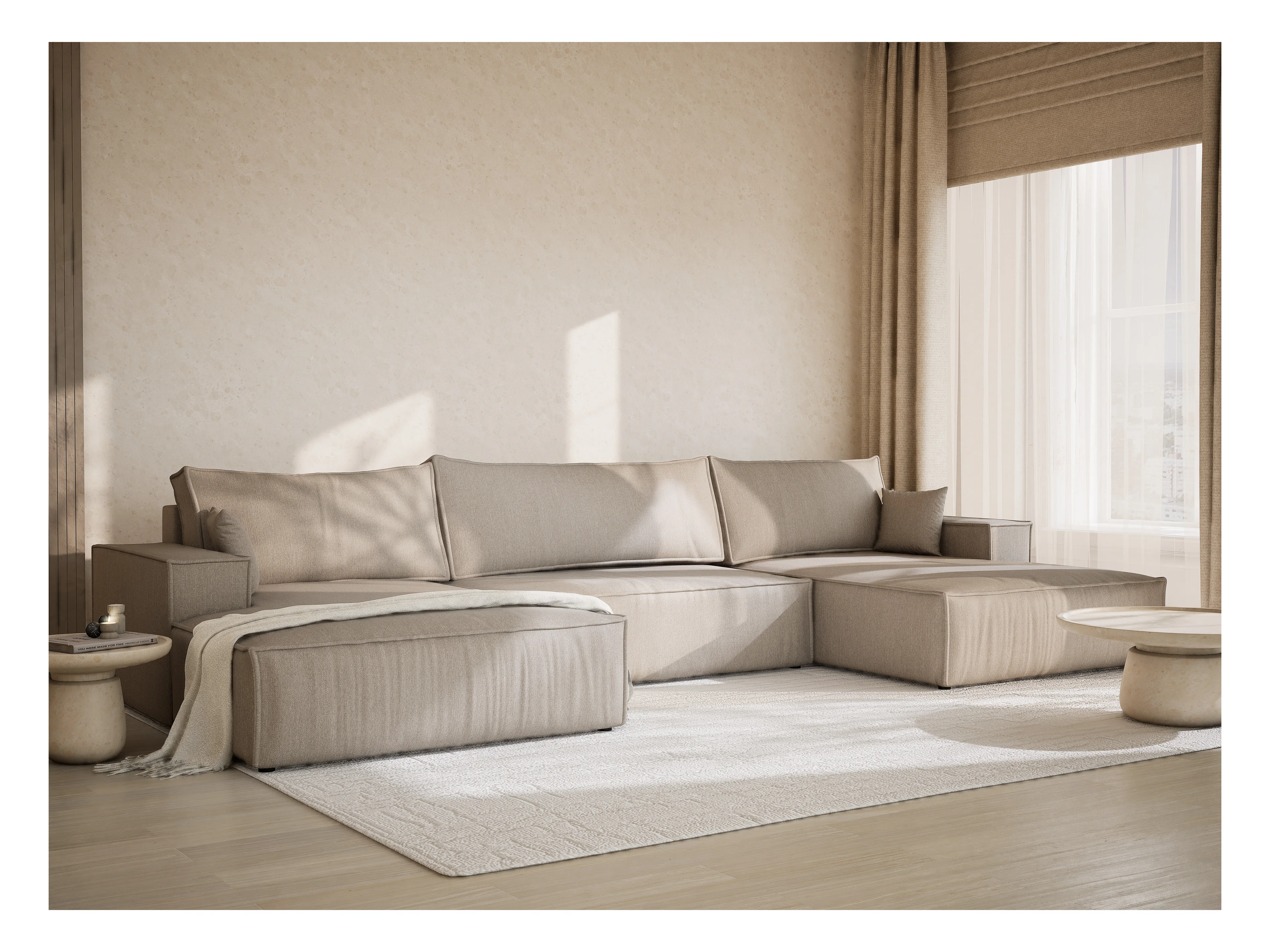 Canapé d'angle panoramique avec fonction lit en tissu tressé beige KYOTO