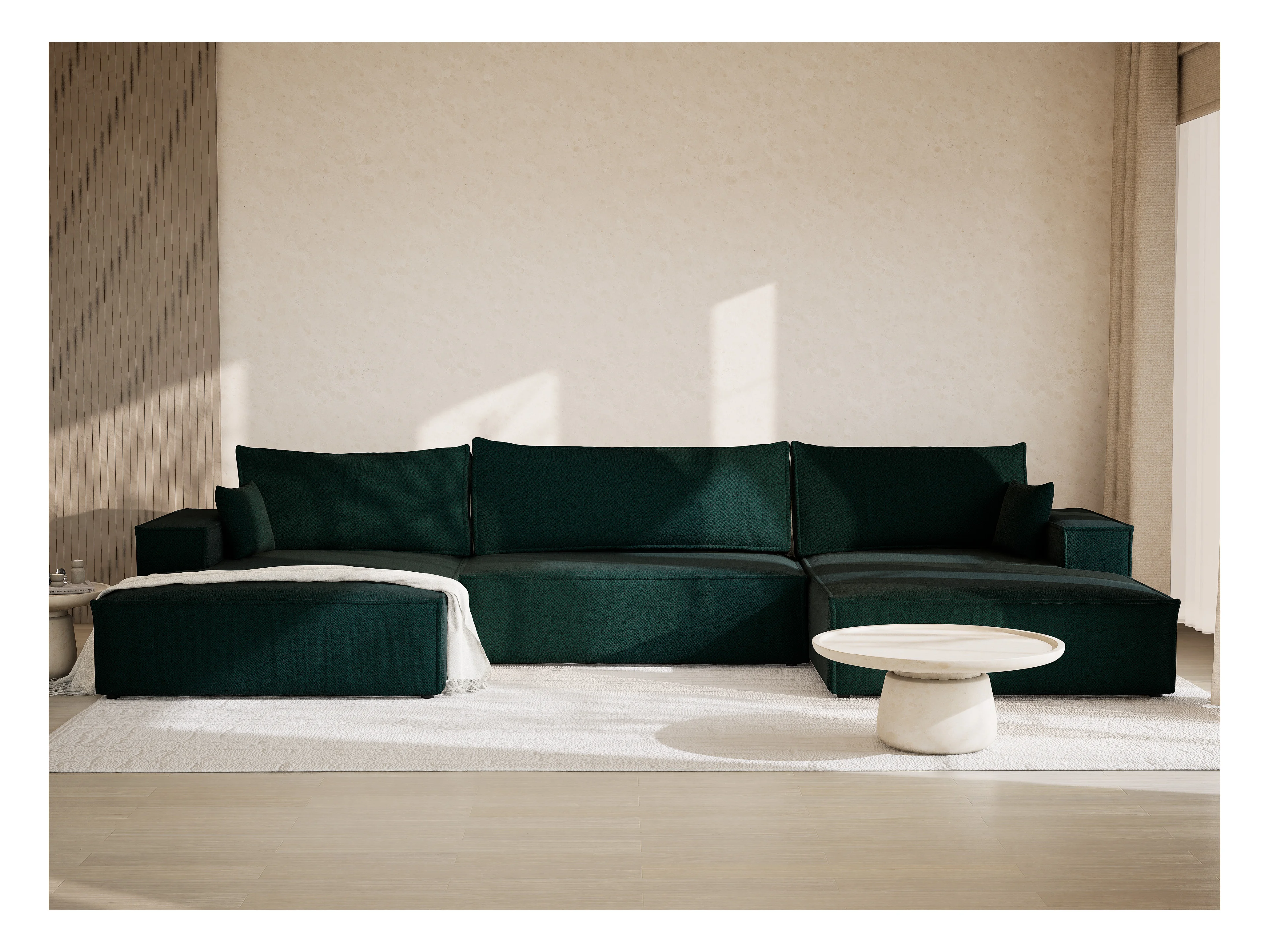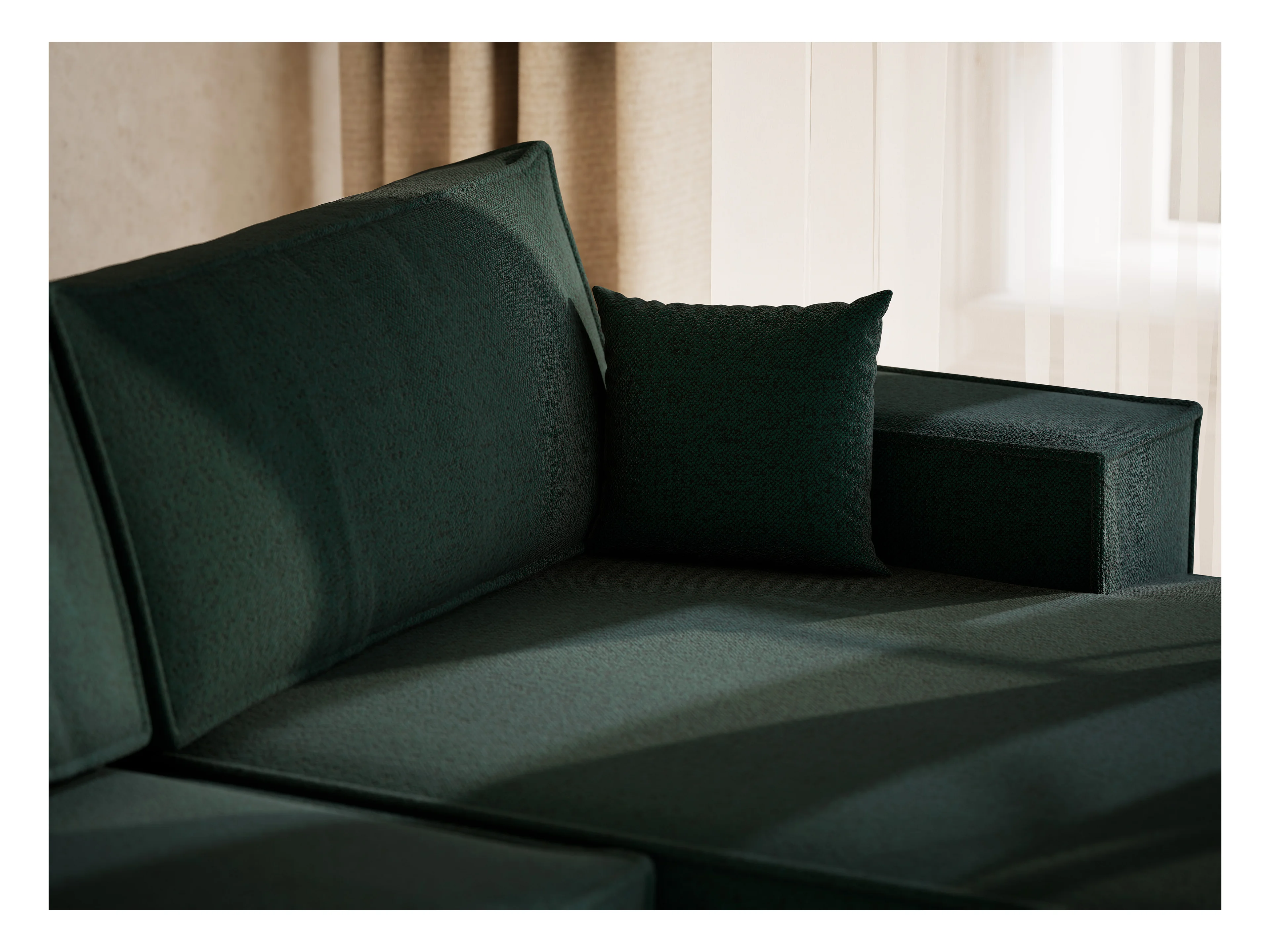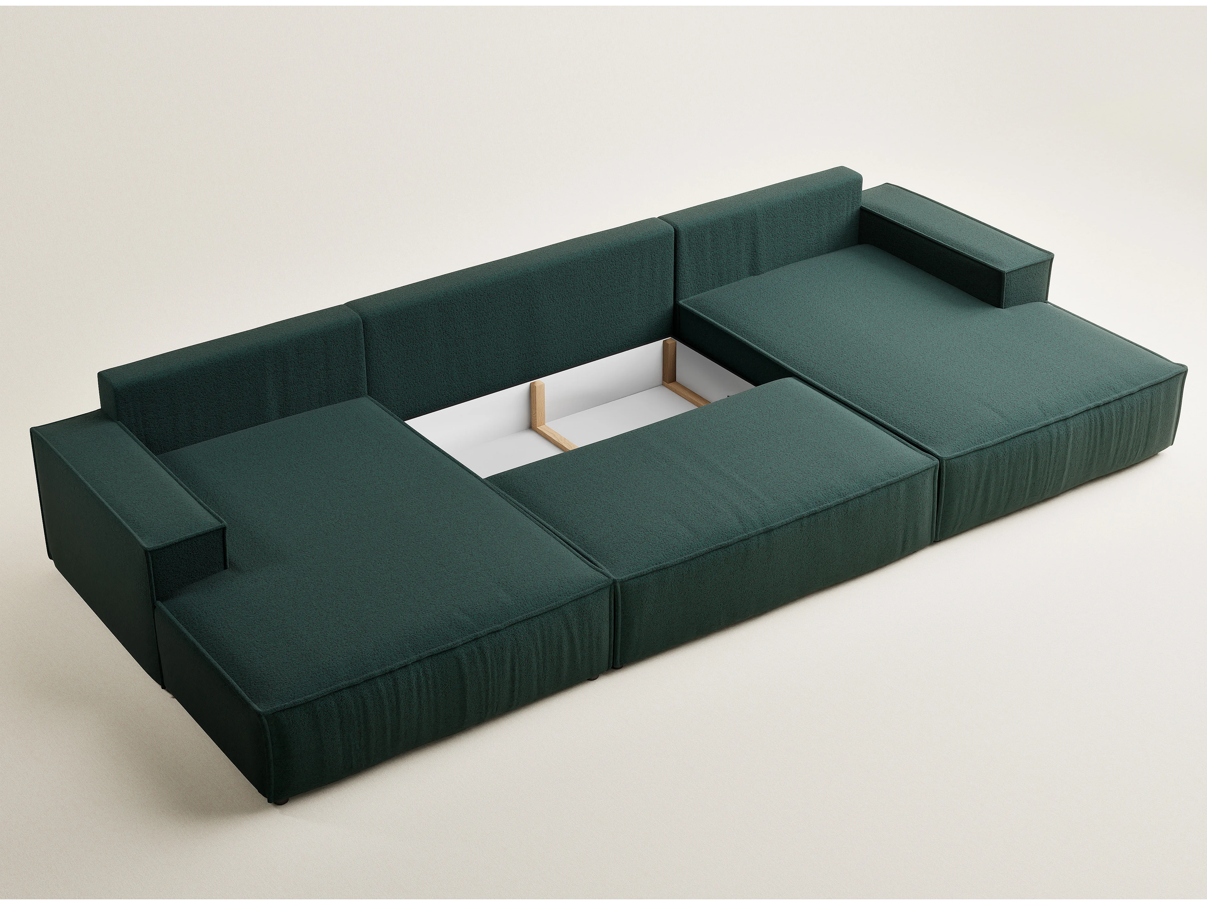 Canapé d'angle panoramique avec fonction lit en tissu tressé vert foncé KYOTO