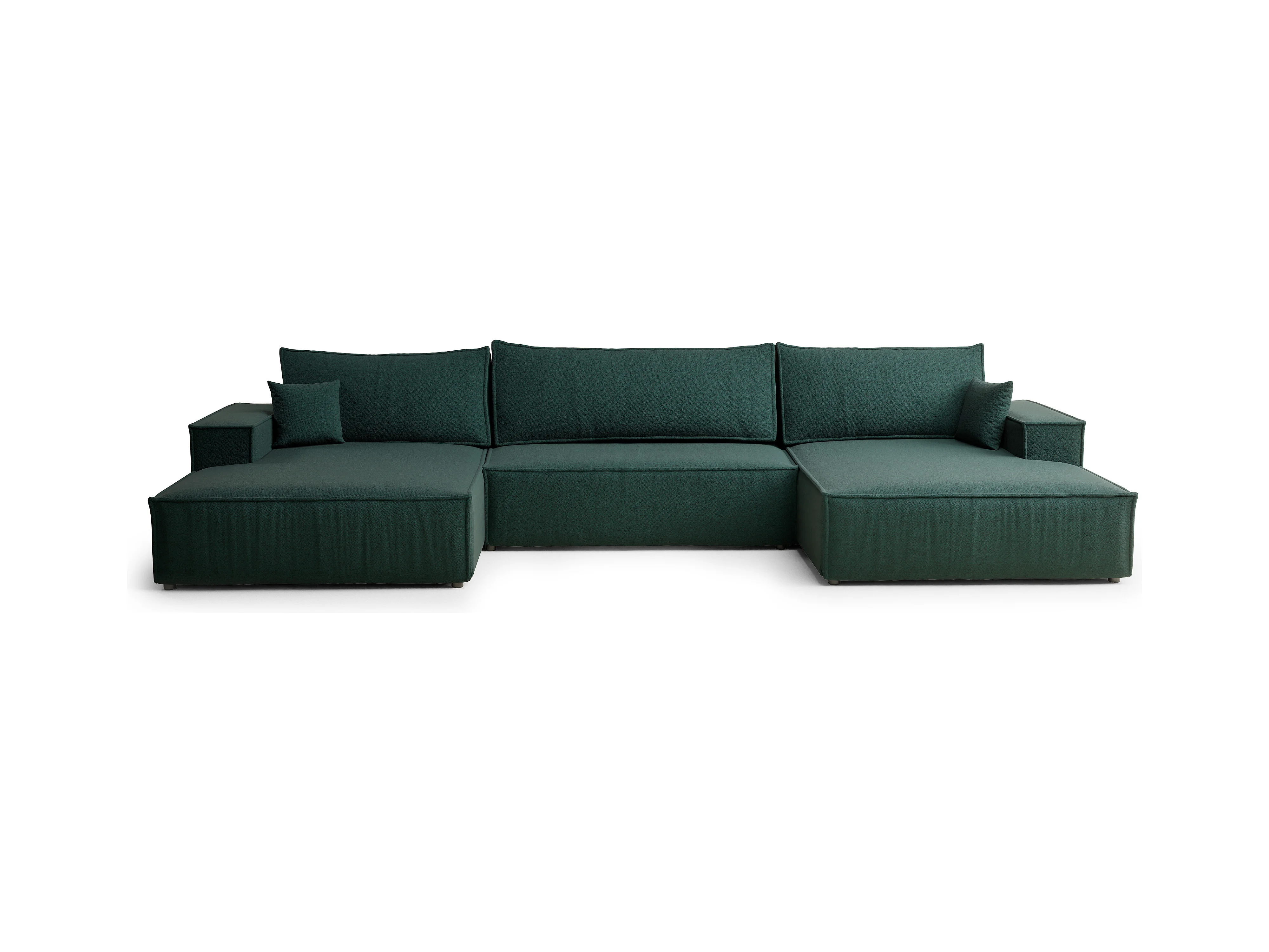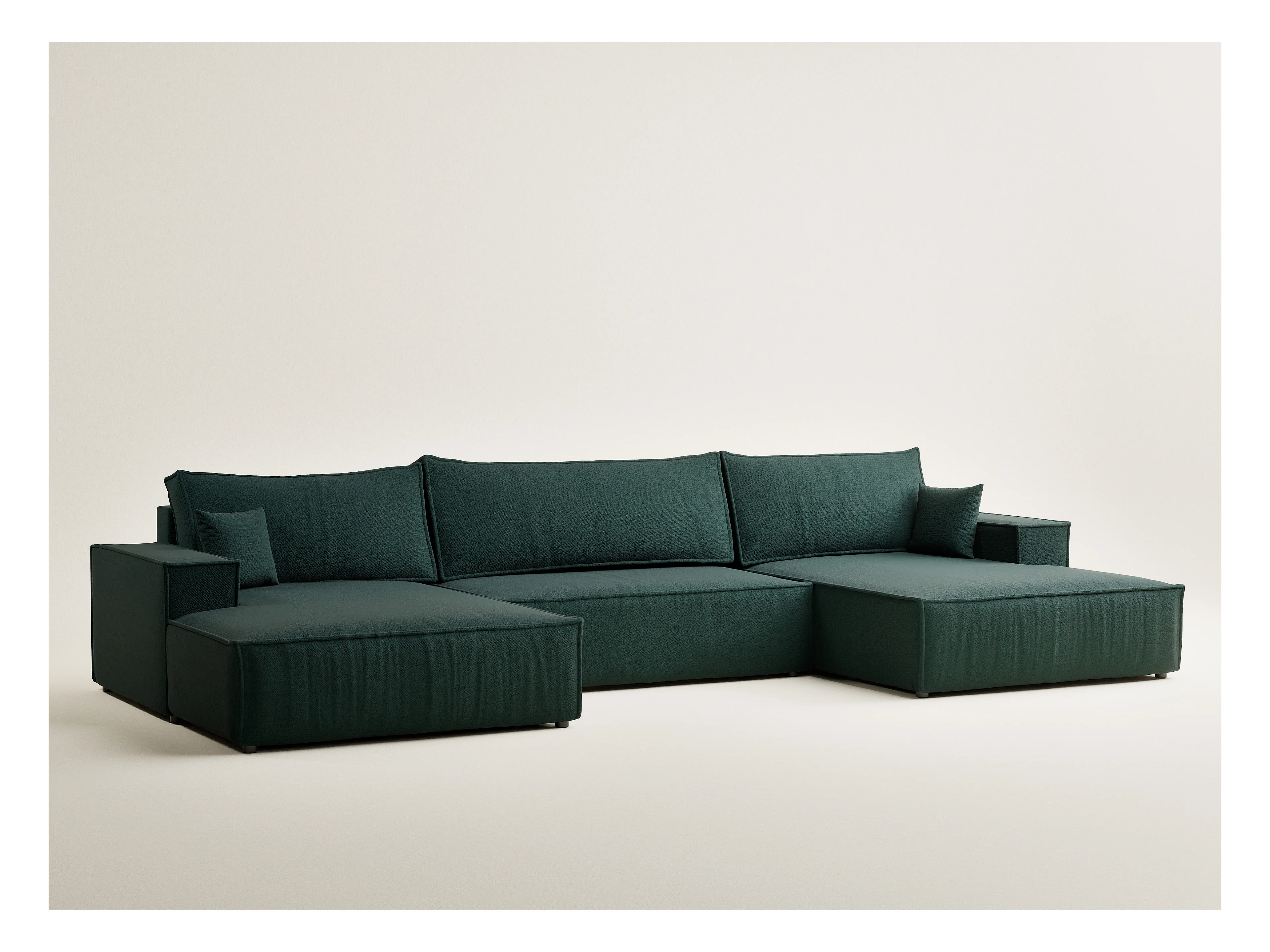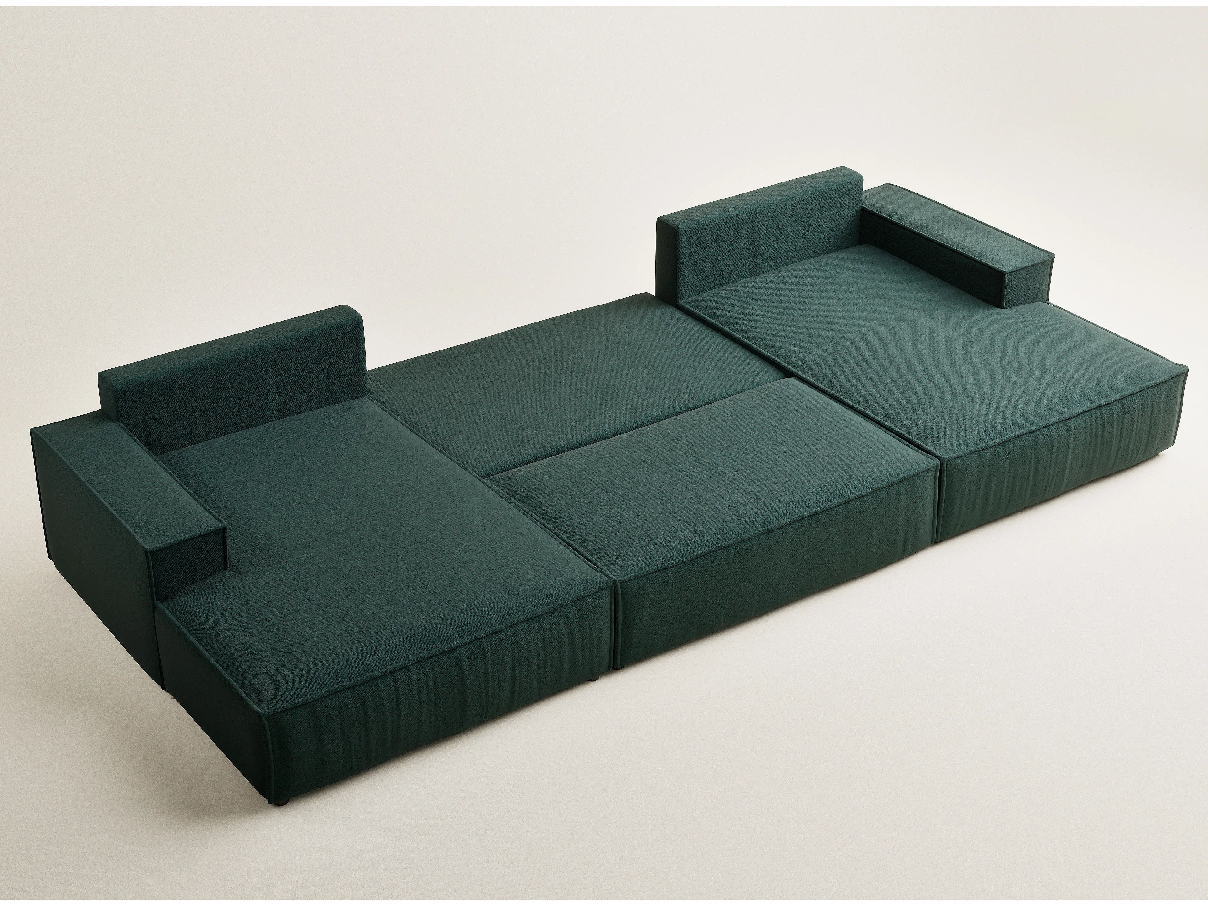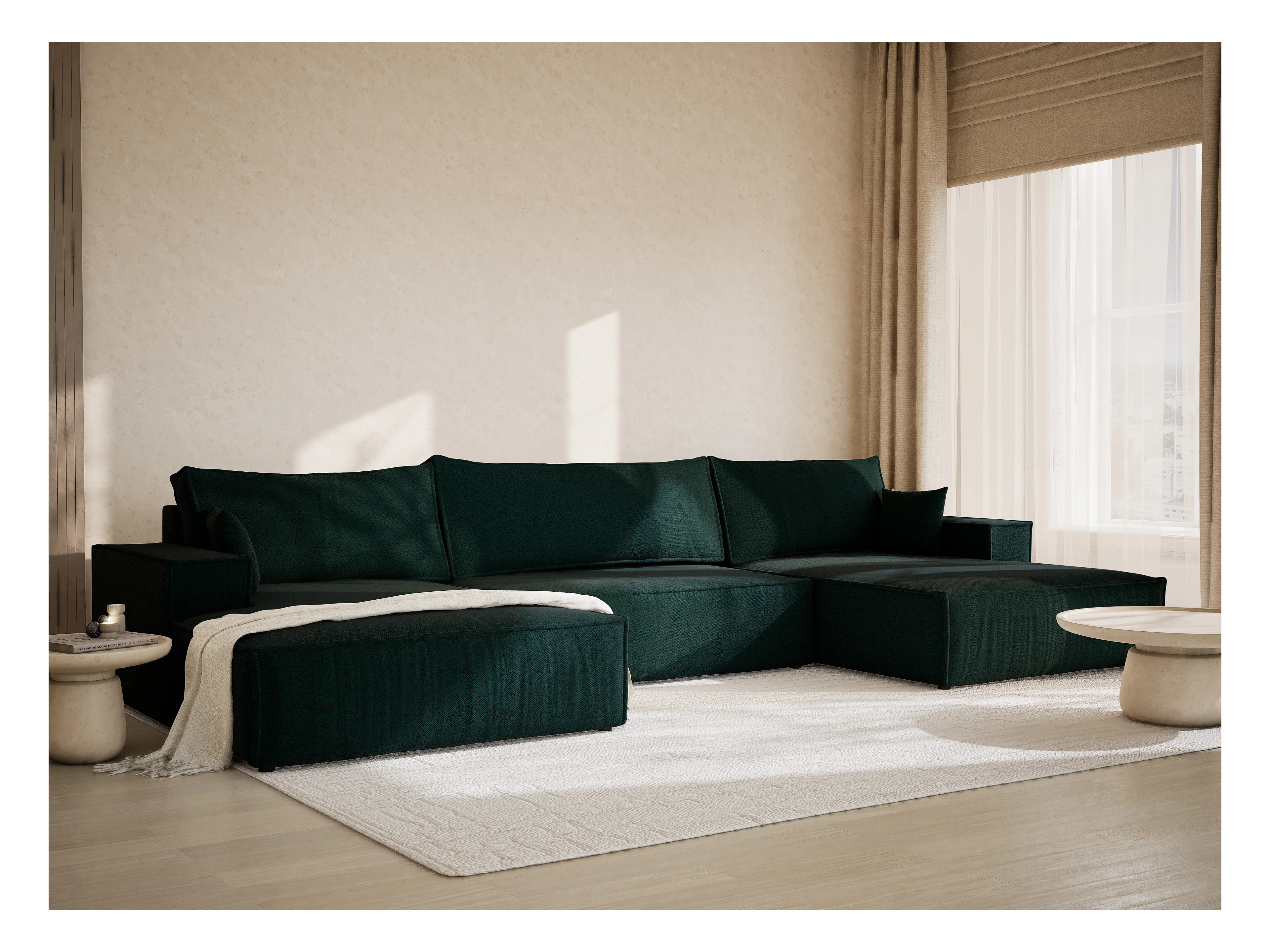 Canapé d'angle panoramique avec fonction lit en tissu tressé vert foncé KYOTO