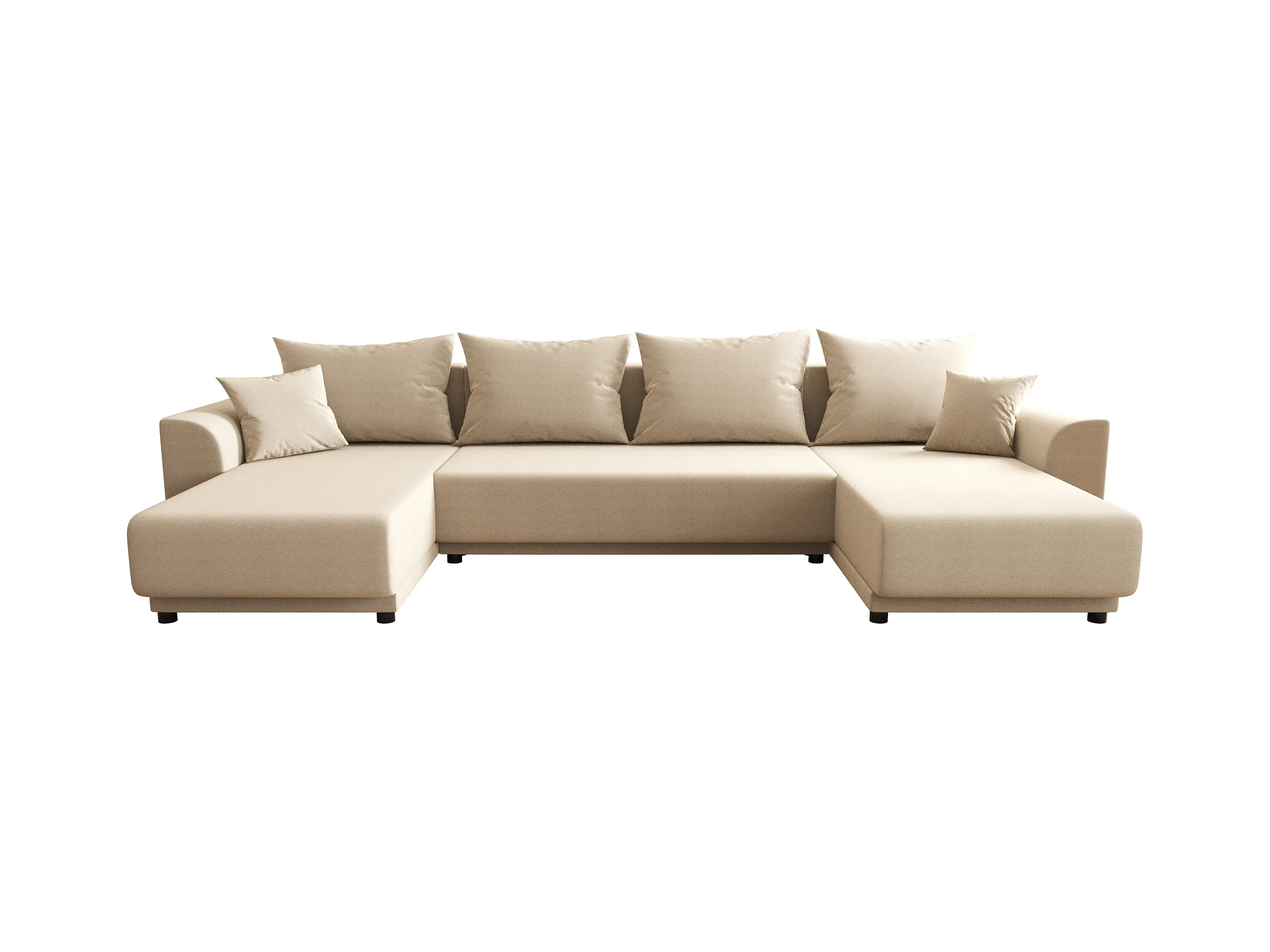 Canapé d'angle panoramique convertible en tissu beige NESSARO