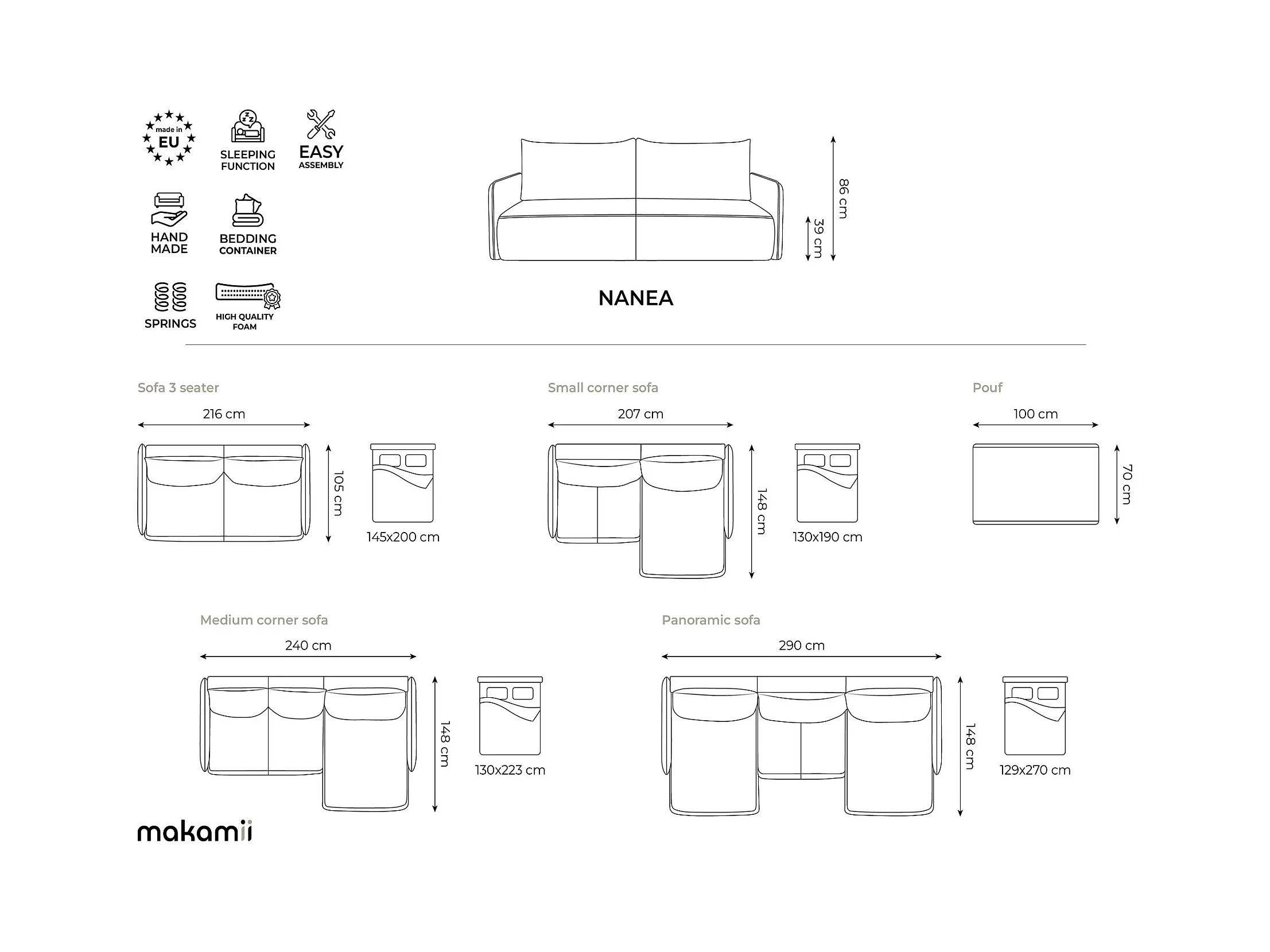 Canapé d'angle panoramique convertible en tissu chenille - éléphant - NANEA