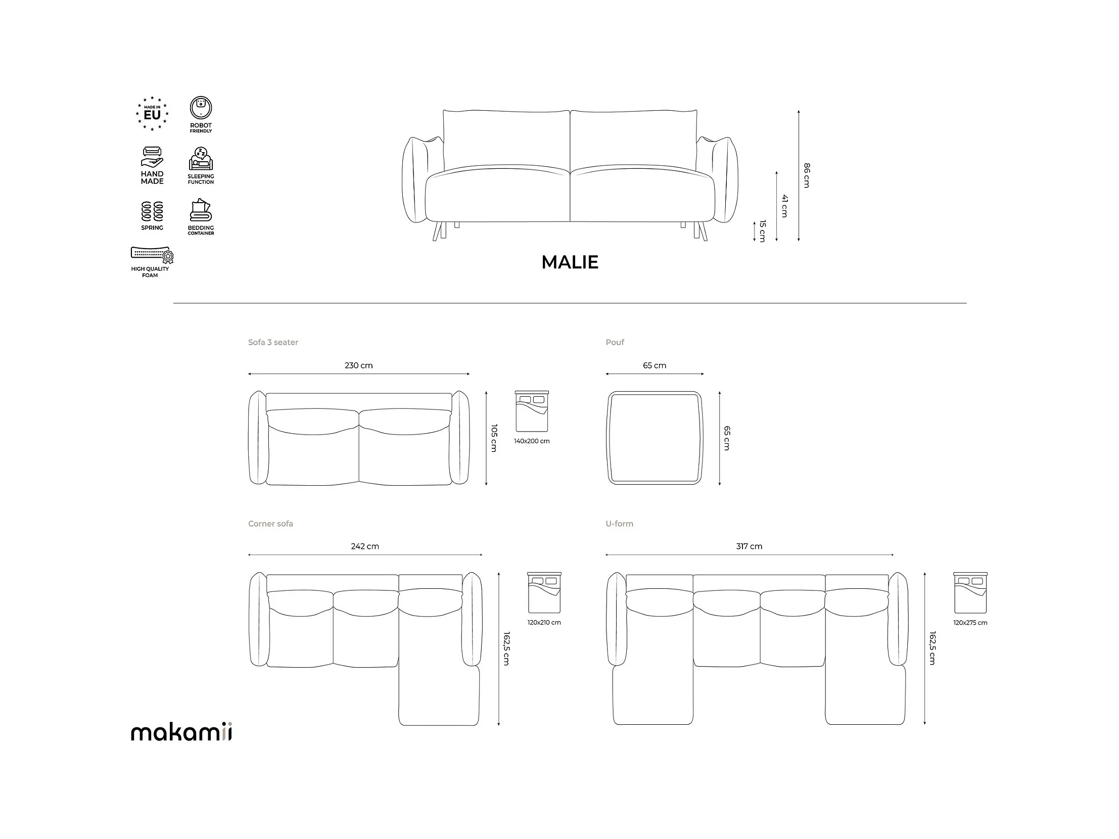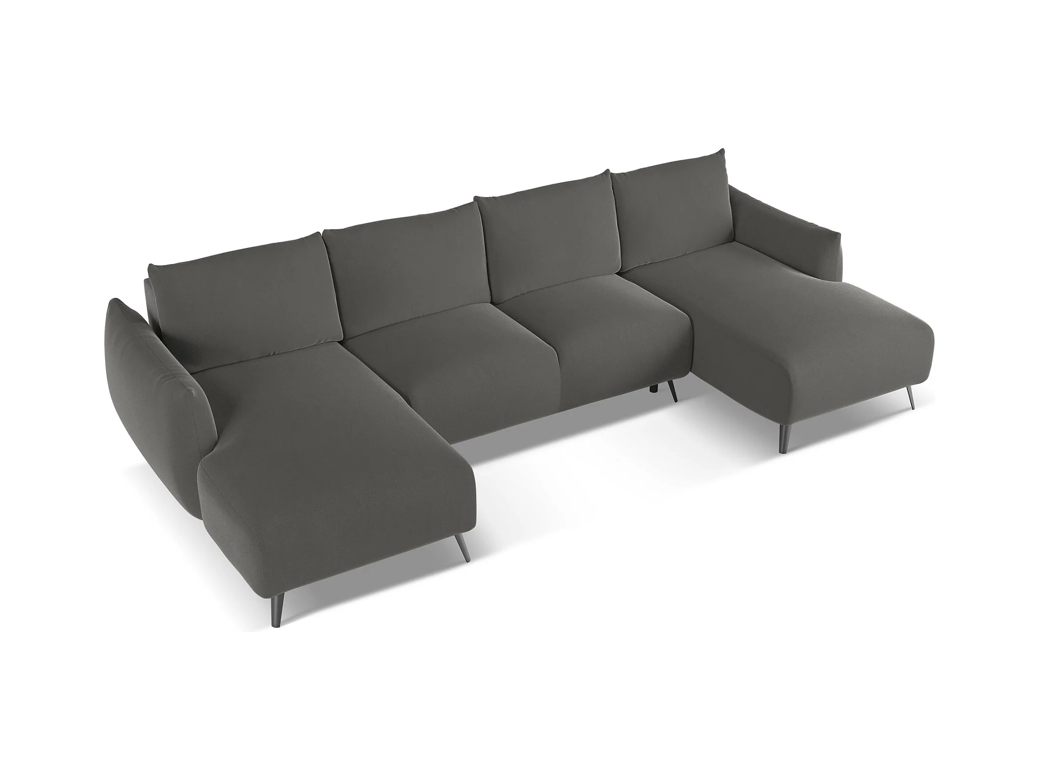 Canapé d'angle panoramique convertible en velours - acier - MALIE