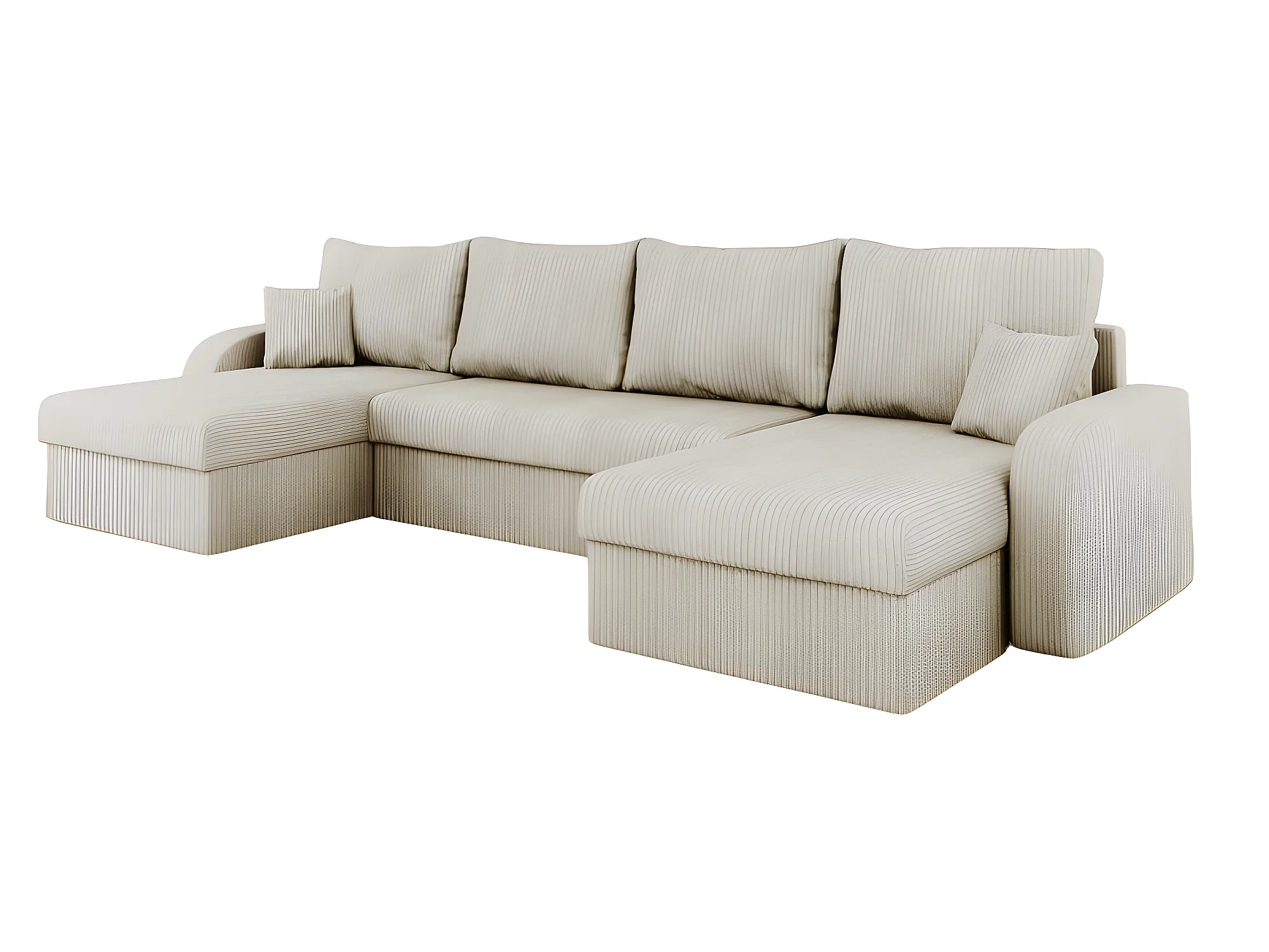 Canapé d'angle panoramique convertible KRISTOFER en velours côtelé beige