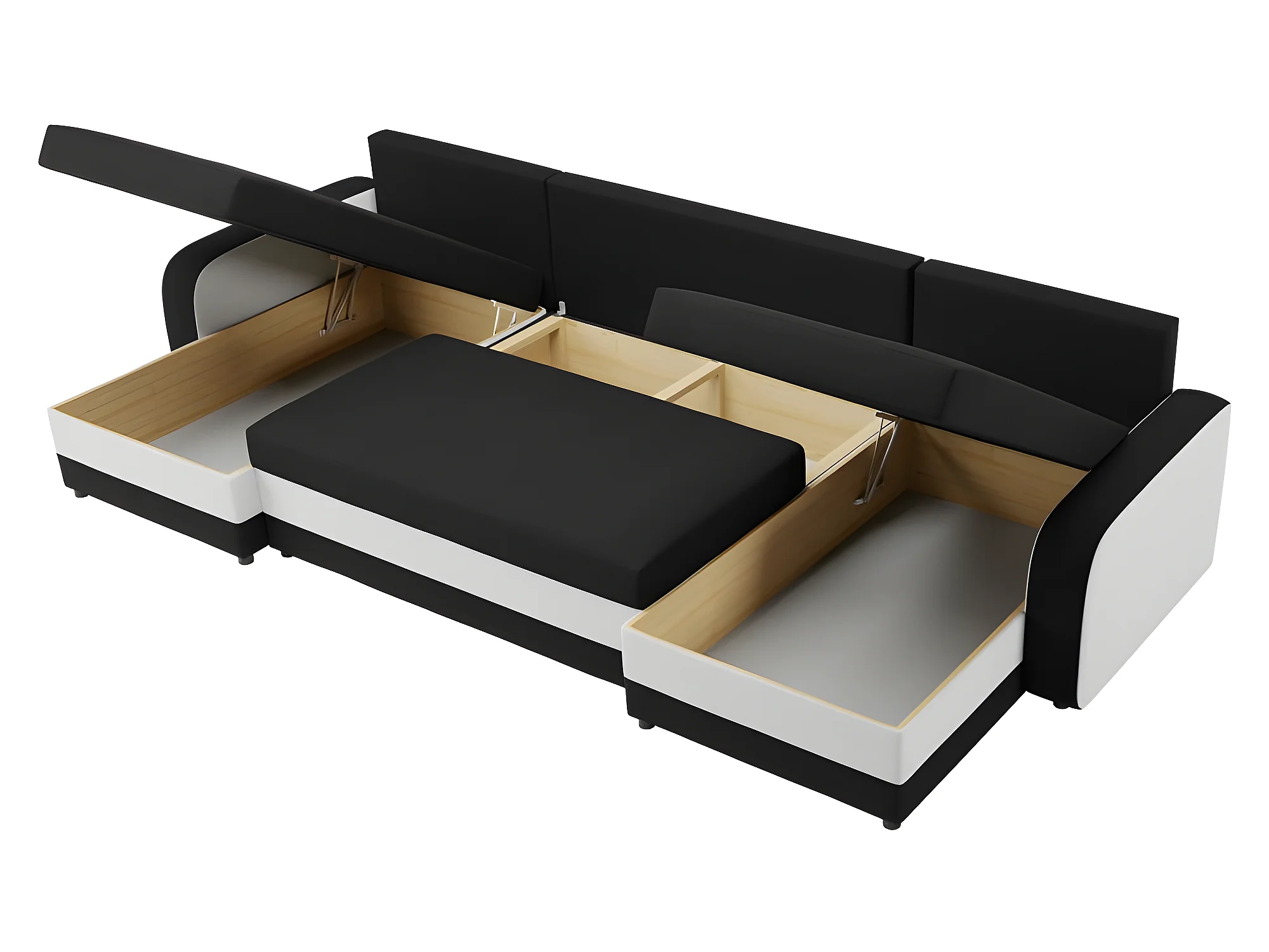 Canapé d'angle panoramique convertible KRISTOFER en velours côtelé gris