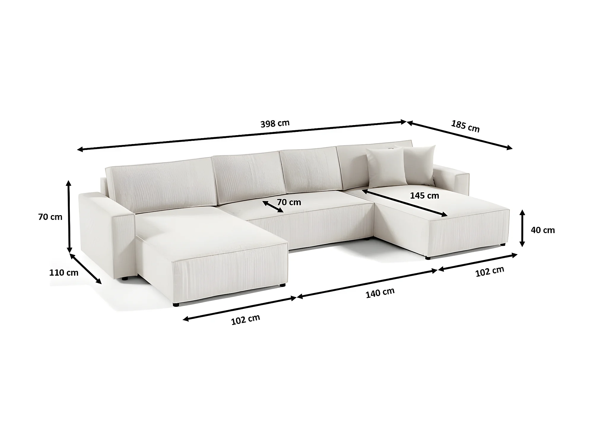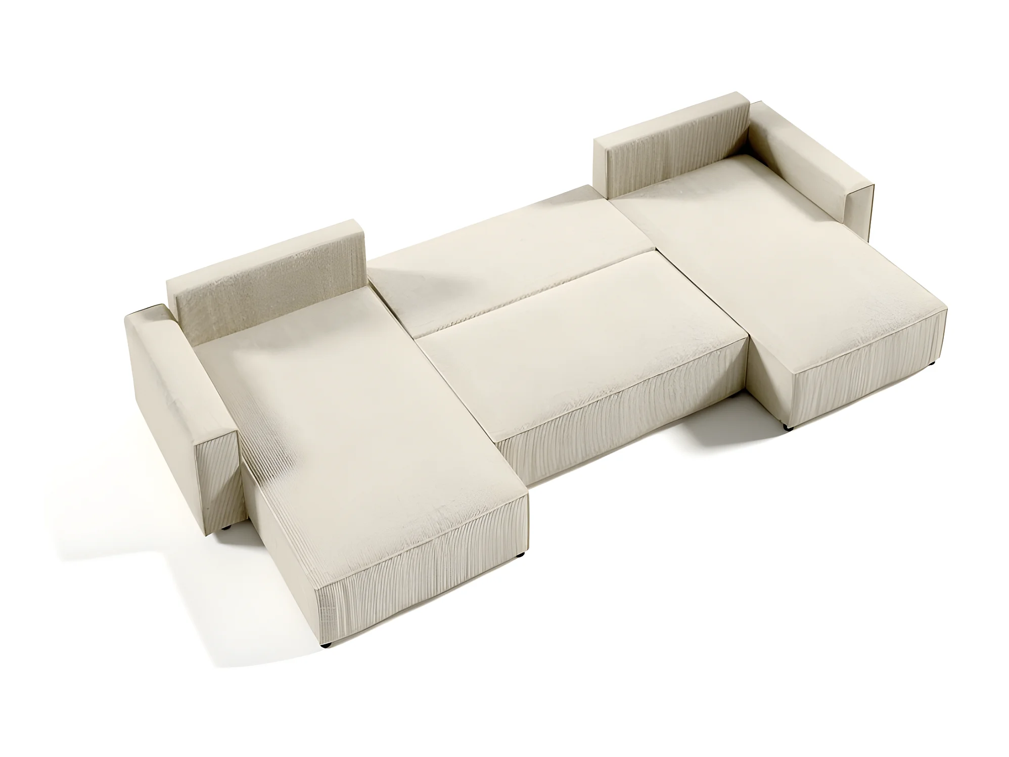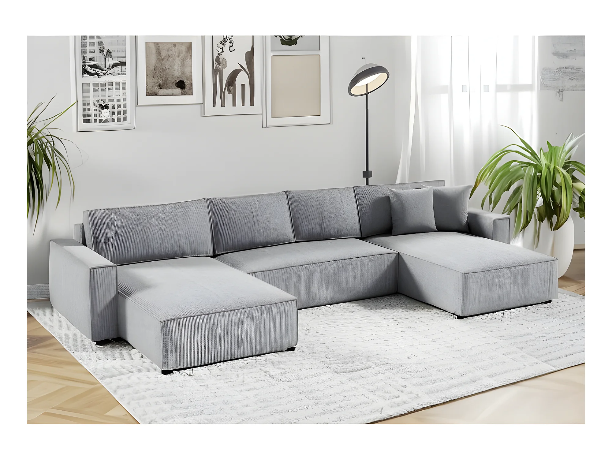Canapé d'angle panoramique convertible VELLA en velours côtelé gris clair