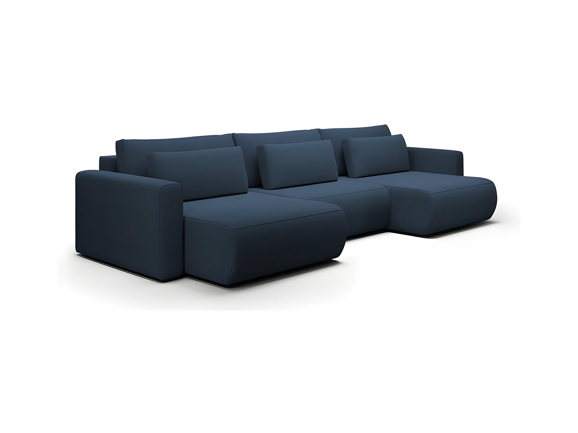 Canapé d'angle panoramique CURIA en tissu hydrophobe lavable bleu