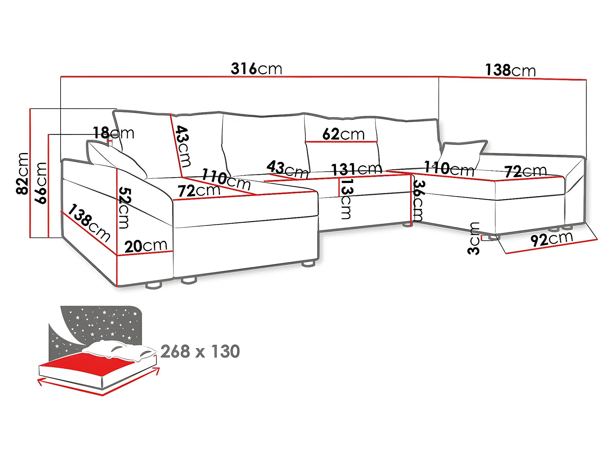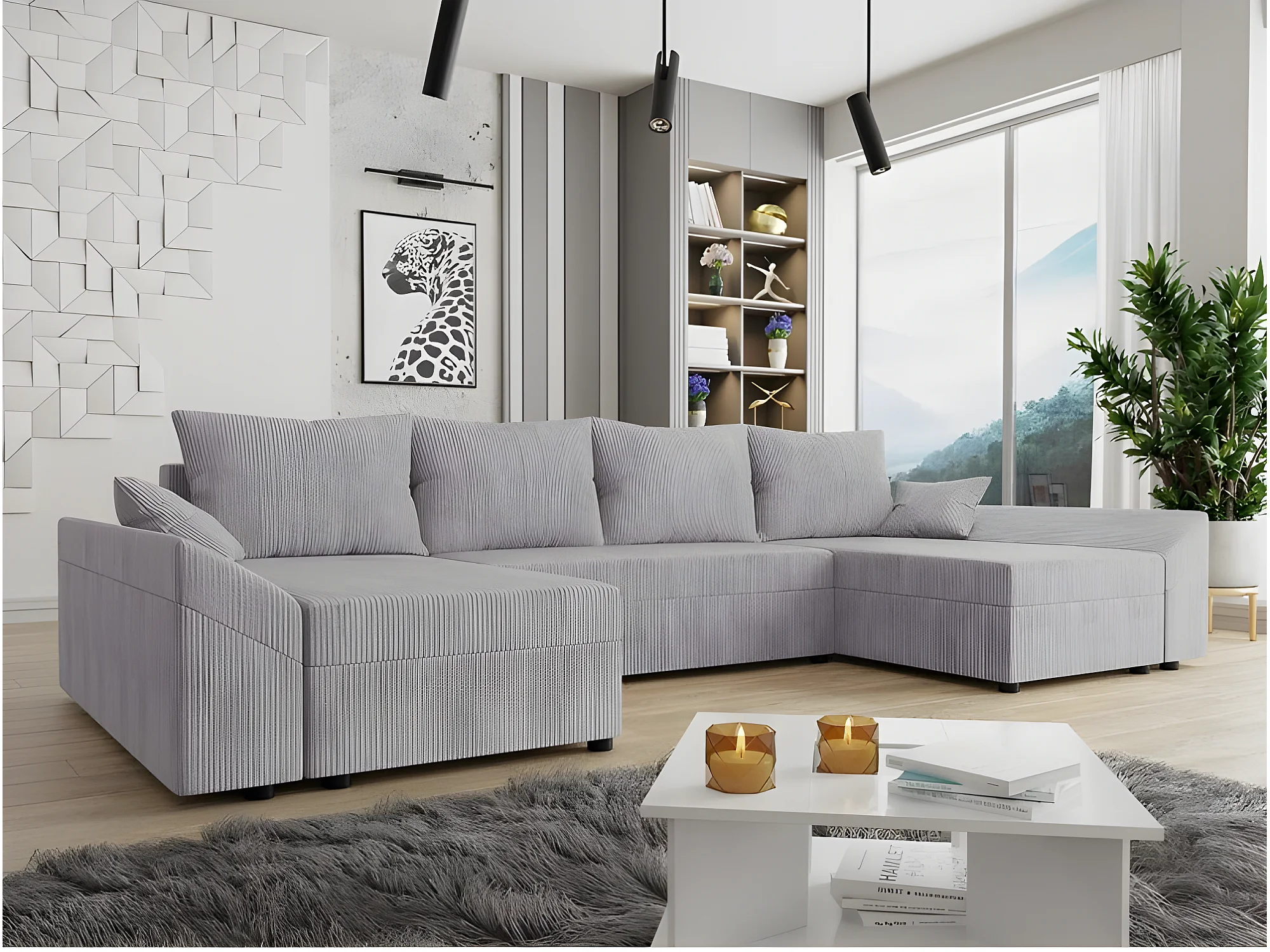Canapé d'angle panoramique DANY en U en velours côtelé gris