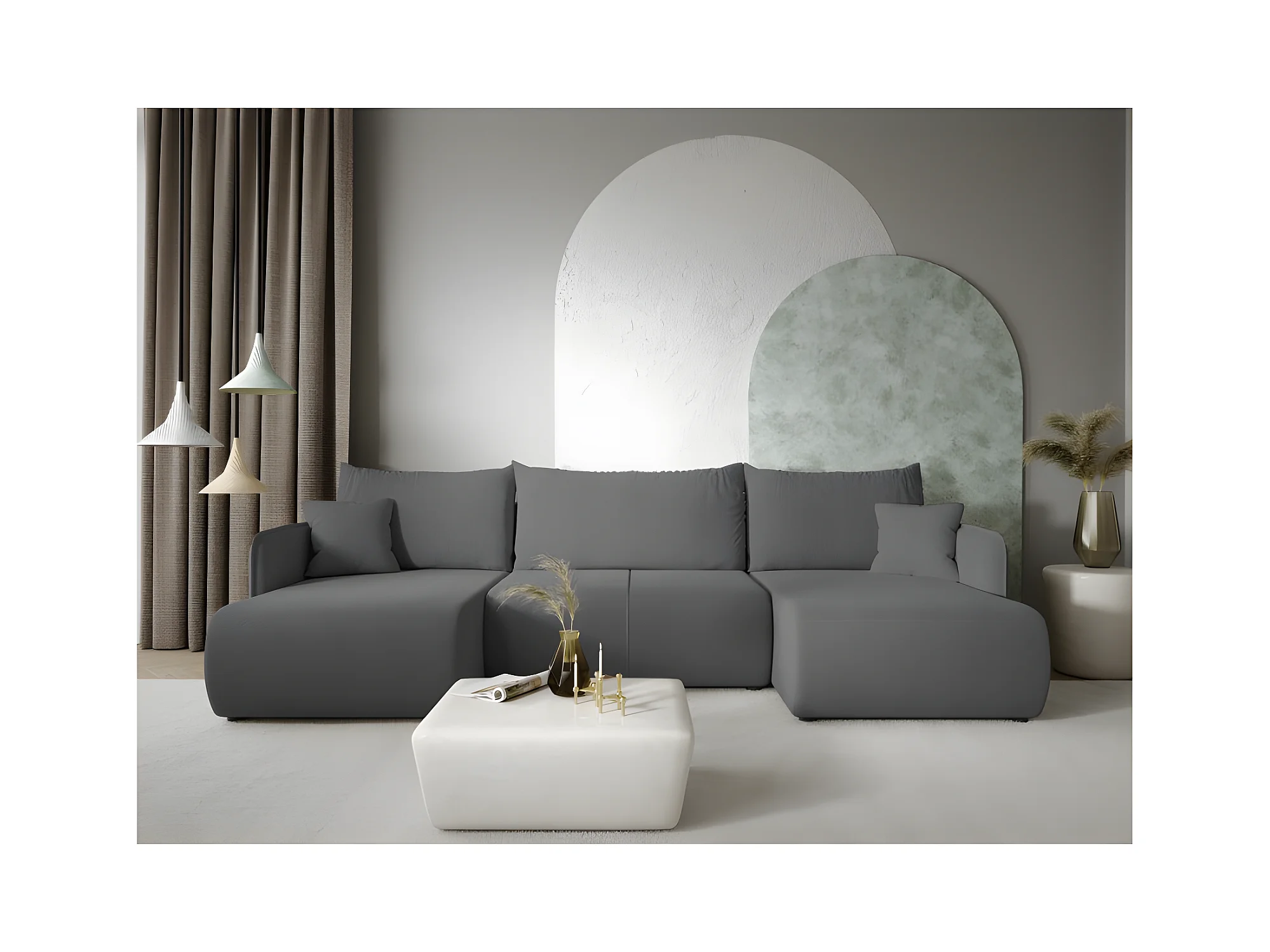 Canapé d'angle panoramique FORIA en U en tissu hydrophobe gris