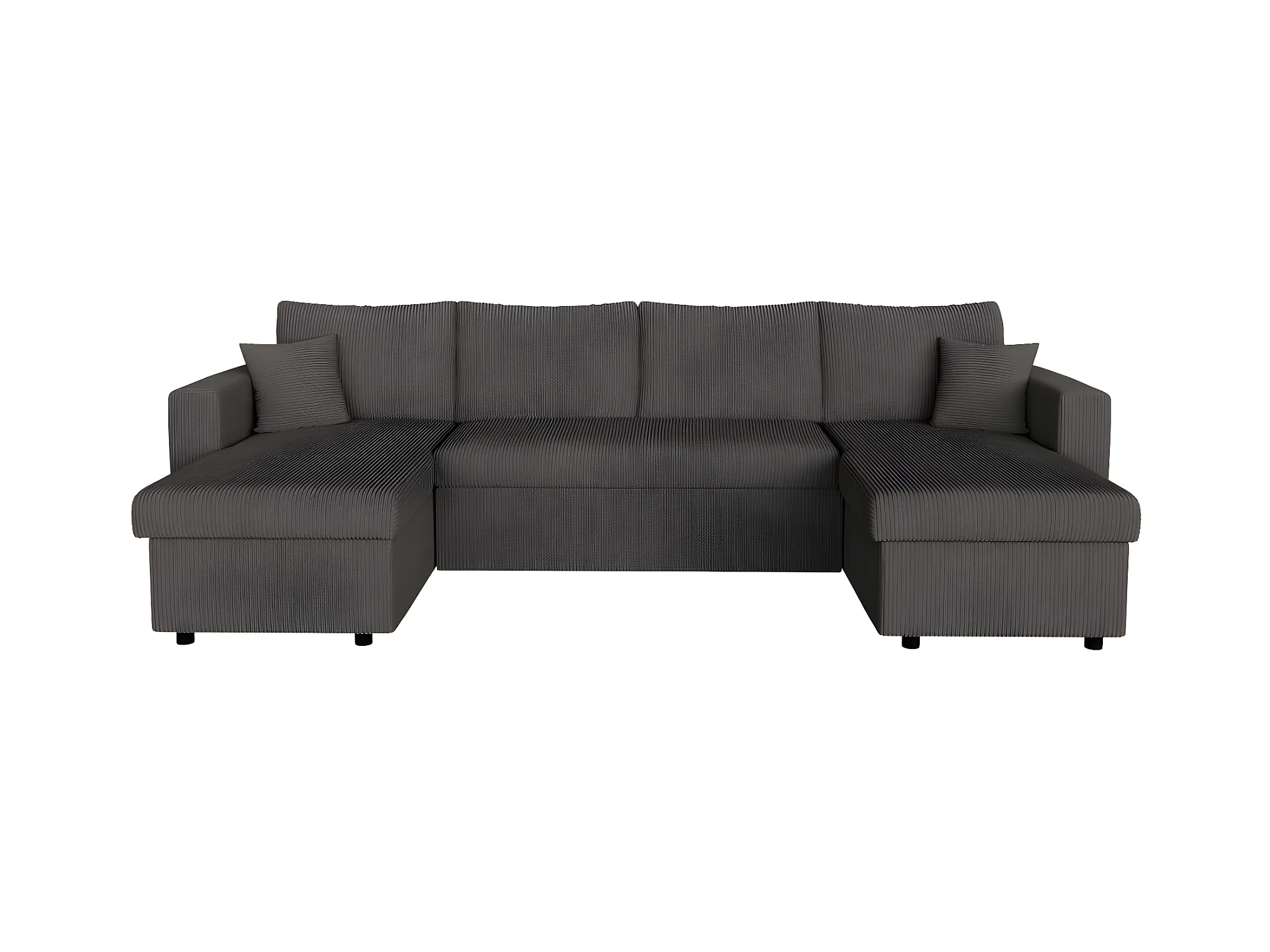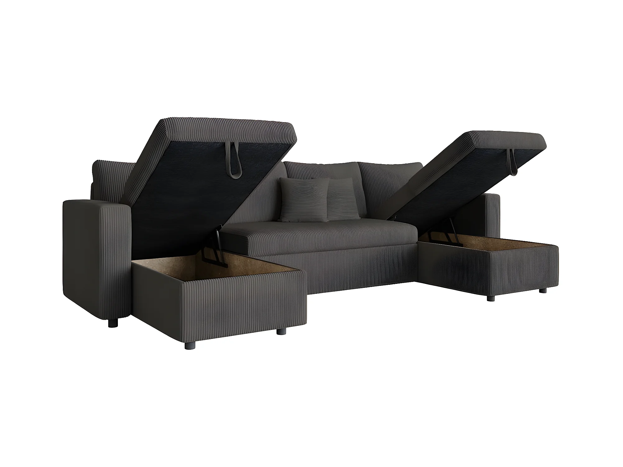 Canapé panoramique 6 places Maria convertible avec 2 coffres en velours côtelé - Gris anthracite - L295 x P146 x H81cm - Loungitude